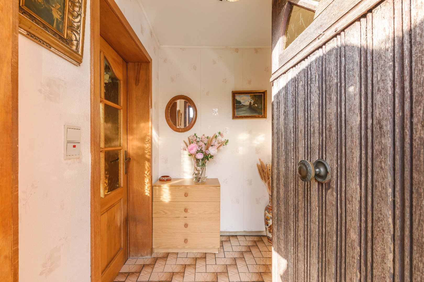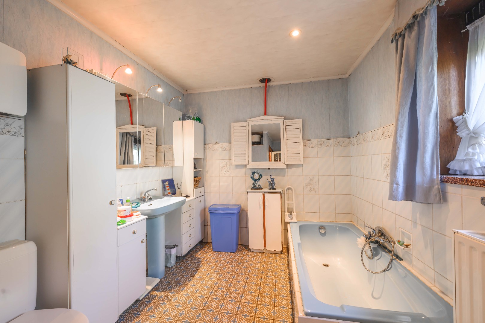 U komt binnen via de inkomhal met apart gastentoilet. Aansluitend is er toegang tot de leefruimte met gezellige gaskachel en die toegang verleend tot de gelijkvloerse slaapkamer en badkamer (ligbad | douche | lavabo met meubel | toilet). Verder is er veranda (12,50 m²) met aansluitend de ingerichte keuken 10 m² (kookplaat | dampkap | spoelbak | oven). Vanuit de keuken is directe toegang tot de tuin alsook tot de inpandige garage (17 m²) alsook de ruime wasplaats (18 m²).