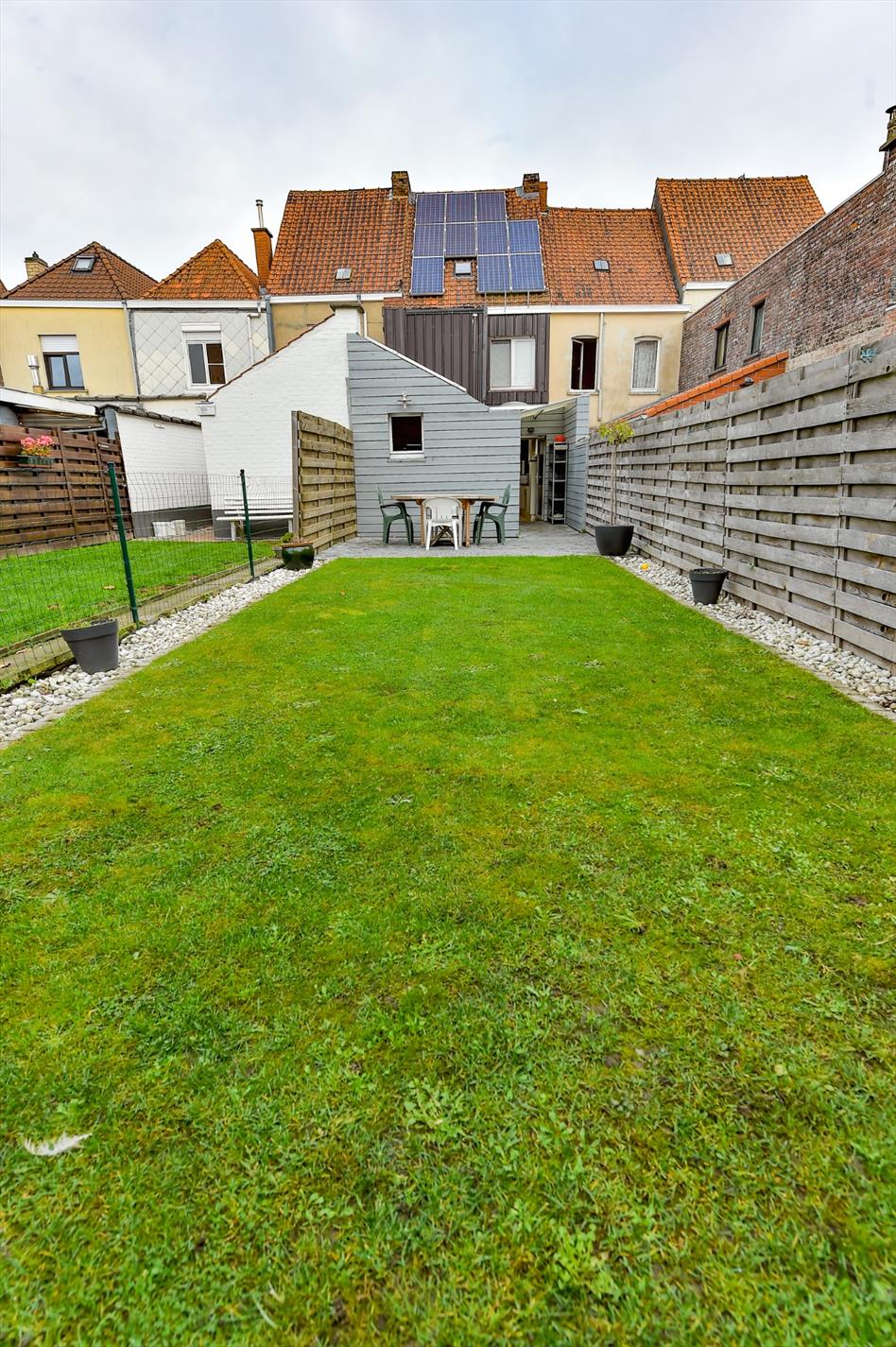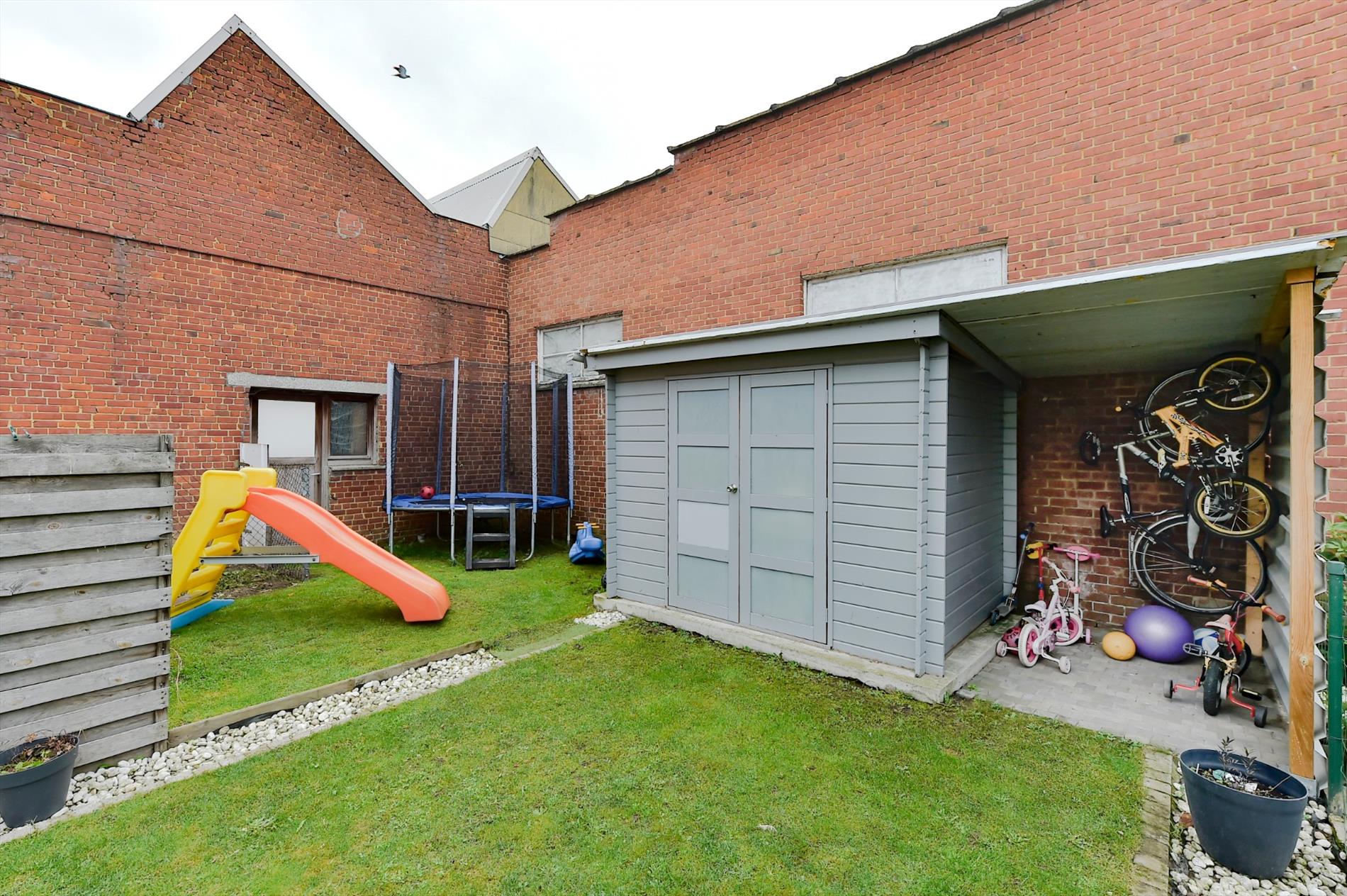 De tuin is zuidgericht en voorzien van een volledig vernieuwd terras met tuinberging.