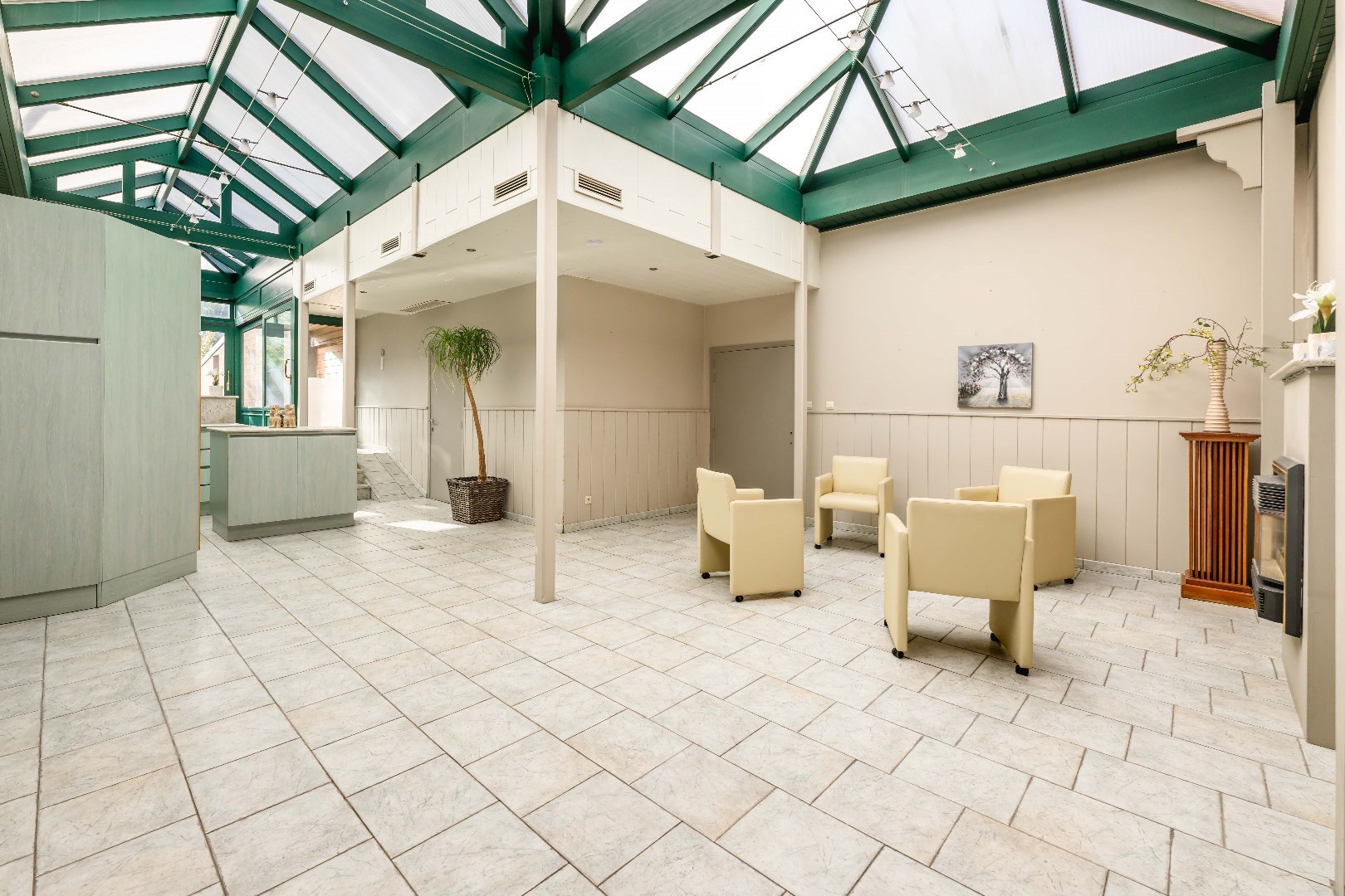 U komt binnen via de handelsruimte met atelier, verder is er het woongedeelte, bereikbaar via een aparte inkom. DUS PERFECT MOGELIJK OM DEZE AFZONDERLIJK TE VERHUREN.