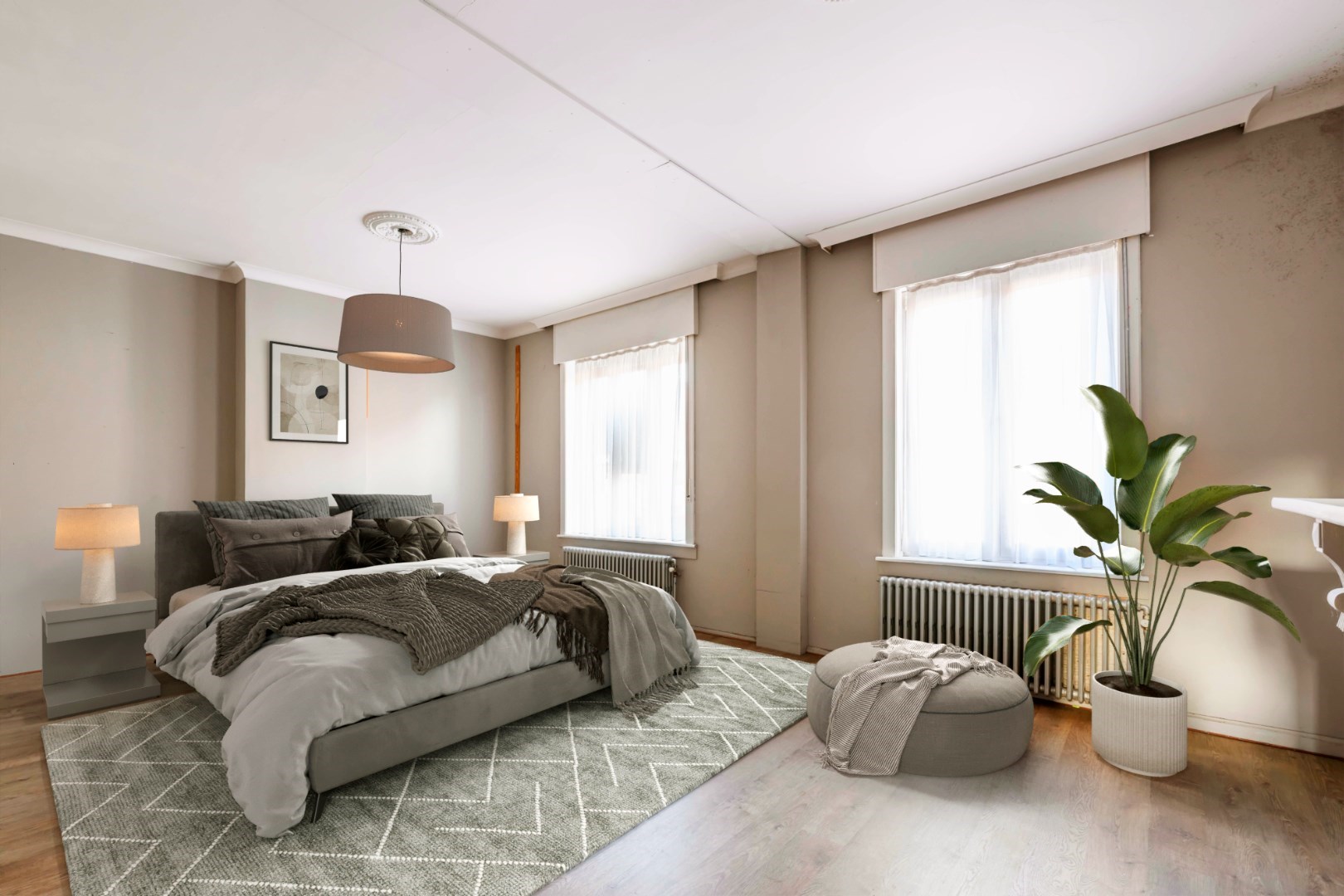 Het verdiep omvat 3 ruime slaapkamers en de badkamer (dubbele lavabo met meubel | toilet | ligbad).