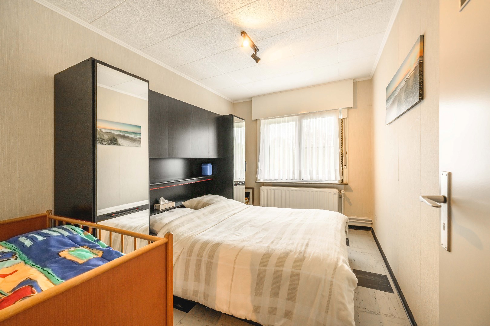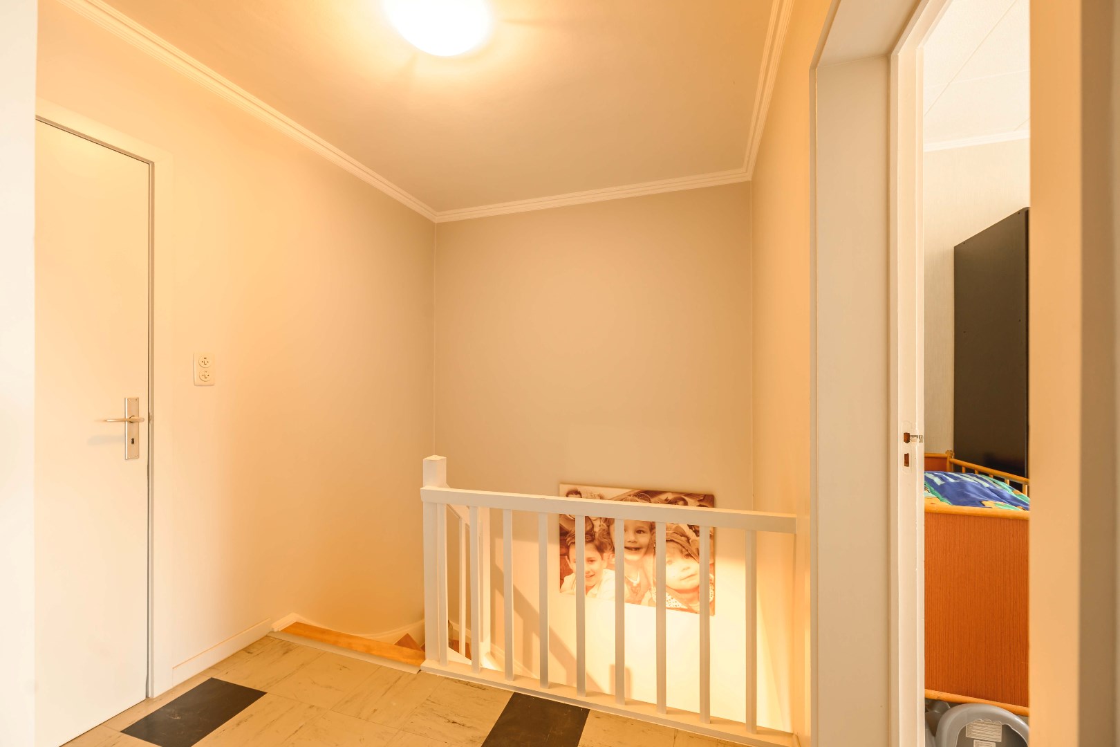 Het verdiep (betonconstructie) omvat 3 ruime 2 persoons slaapkamers en de badkamer (lavabo | ligbad met douche aansluiting | toilet). Tot slot is er nog de geïsoleerde zolder te betreden via een vouwtrap.
