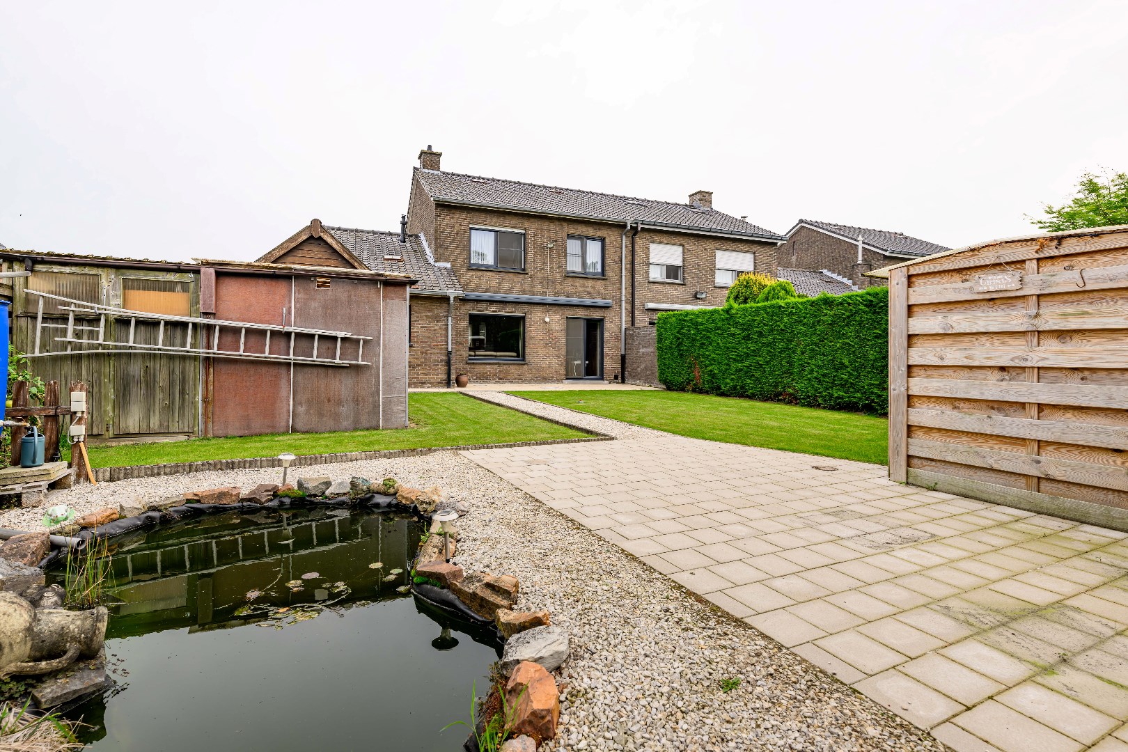 De woning is voorzien van een zongerichte verzorgde tuin met verschillende tuinberging, diverse terrassen en een visvijver. Deze is tevens volledig afgesloten en ingevolge kindvriendelijk. Er is voldoende private parkeergelegenheid voor 3 wagens.