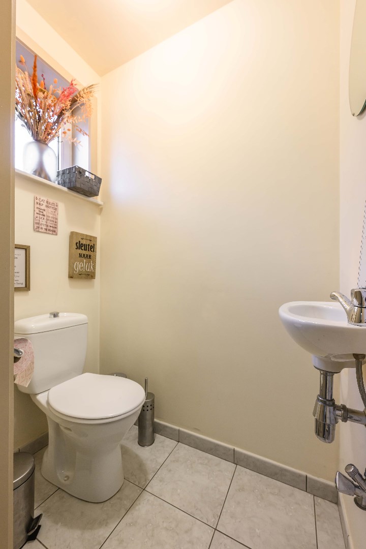 U komt binnen via de inkomhal met apart gastentoilet. Aansluitend is er toegang tot de lichtrijke leefruimte (34 m²) met zit- en eethoek en directe toegang tot de tuin. Verder is er de ingerichte keuken (kookplaat | dampkap | spoelbak | oven | microgolf | vaatwasser) met praktische berging/wasplaats (4 m²).