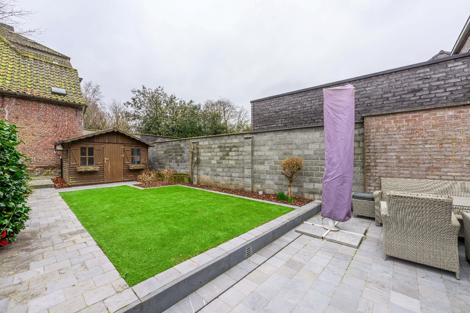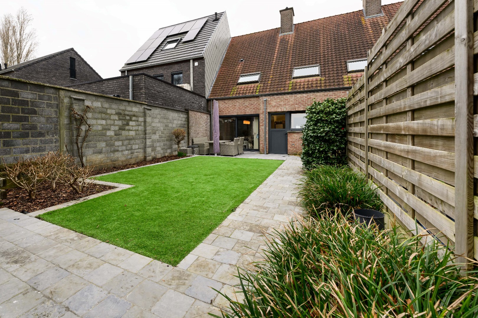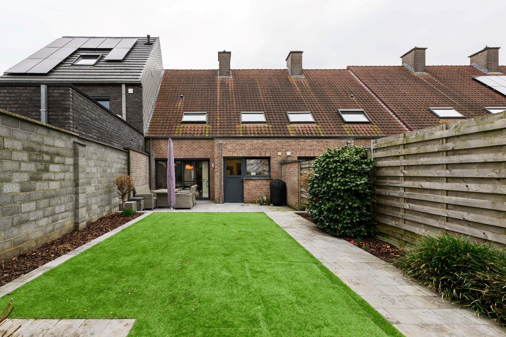 De woning is voorzien van een zongerichte achtertuin (70 m²) met terras en kunstgras. De tuin beschik over een tuinberging en is volledig afgesloten en ingevolge kindvriendelijk. U beschikt tevens over een garage met geautomatiseerde poort die te betreden is via de handige toegang achterom. In de straat is er voldoende parkeergelegenheid.