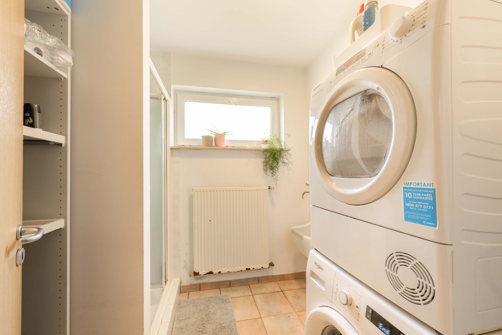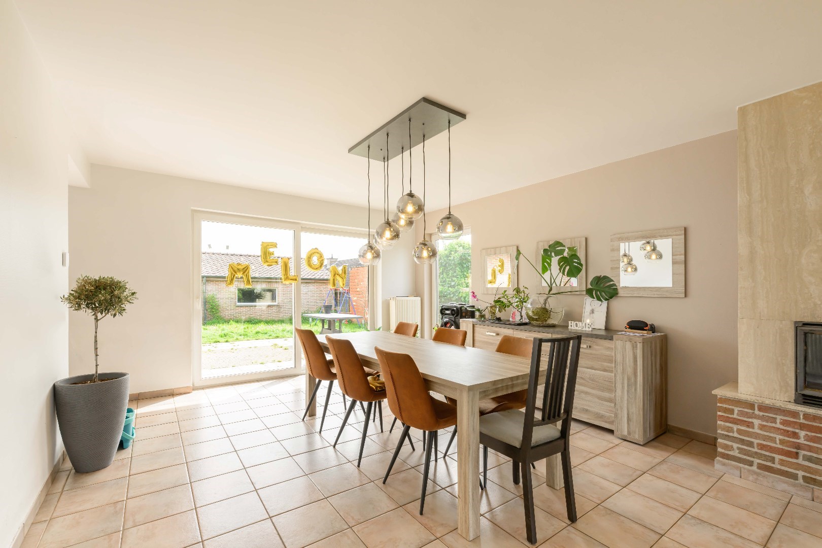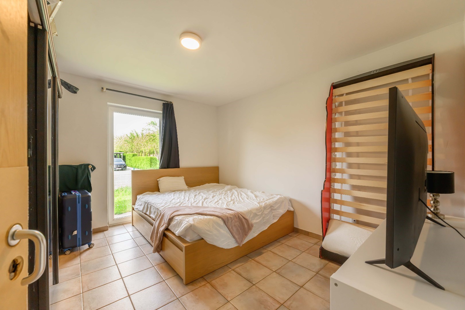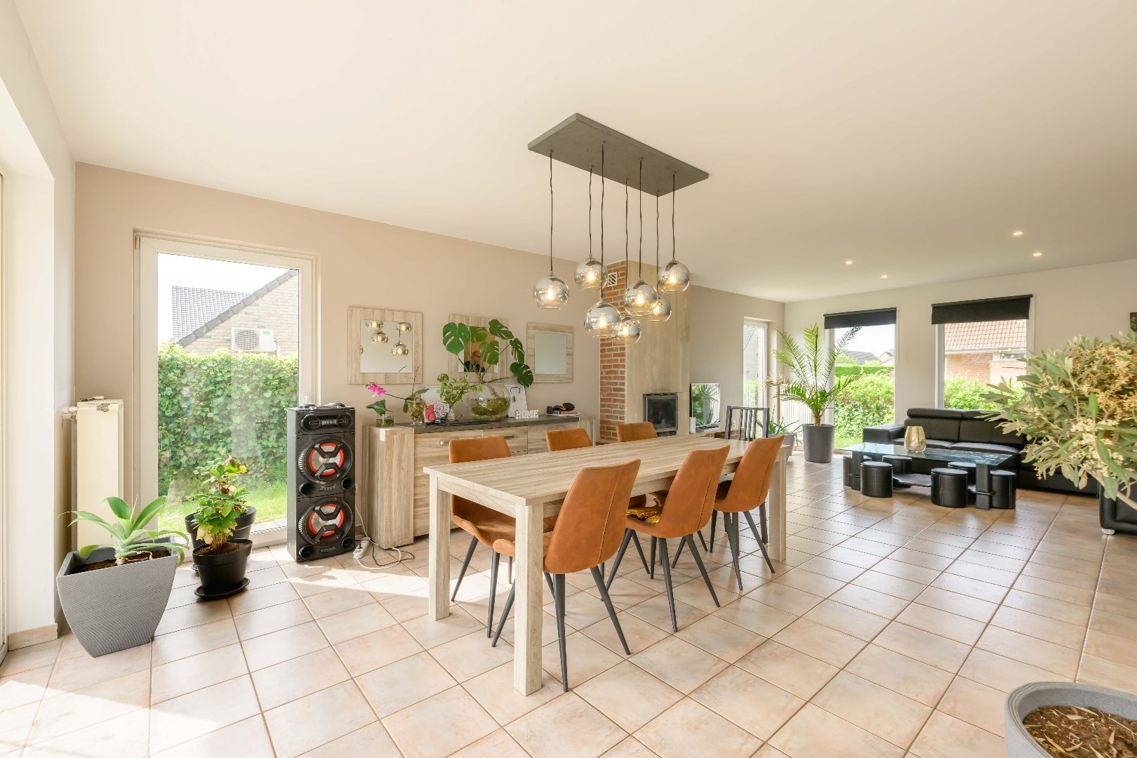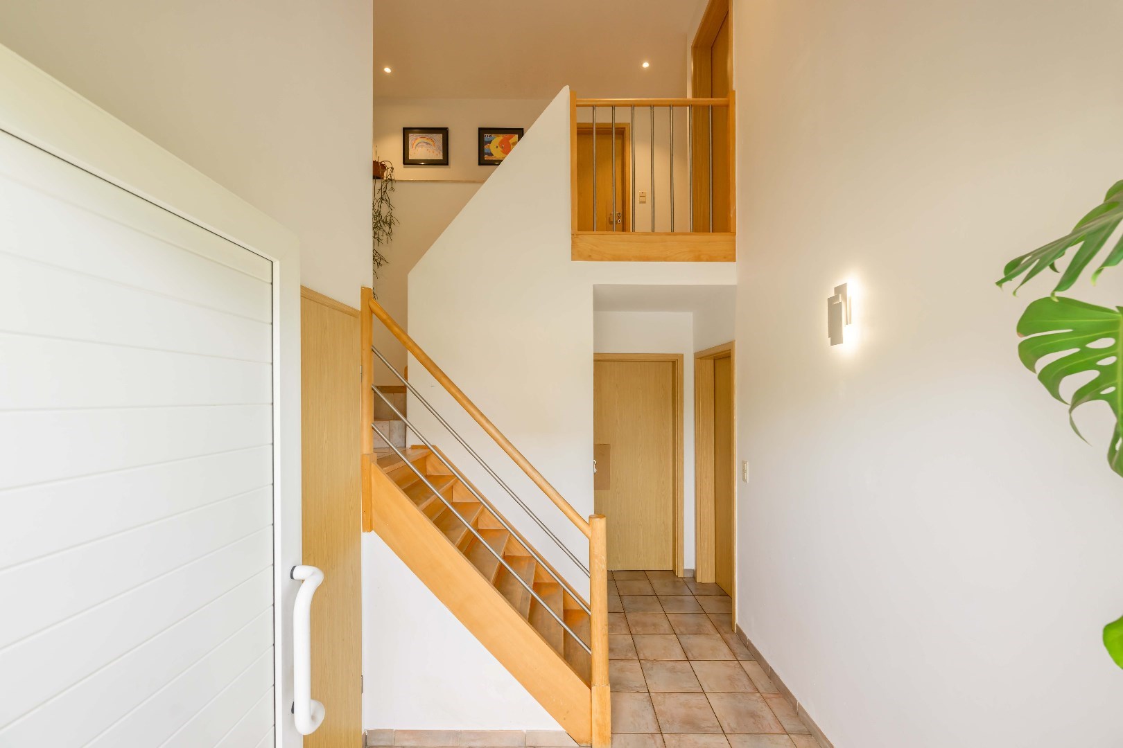 U komt binnen via de inkomhal met apart gastentoilet. Vervolgens is er de ruime en lichtrijke leefruimte (41 m²) met zit- en eethoek uitgerust met een gezellige houtcassette. Aansluitend is er de ingerichte keuken 17 m² (kookplaat | dampkap | spoelbak | oven | frigo | ***) met praktische berging. Het gelijkvloers omvat verder ook nog een slaapkamer (14 m²), badkamer (lavabo | douche) met aansluiting voor wasmachine en droogkast en de inpandige garage (20 m²) met geautomatiseerde poort.