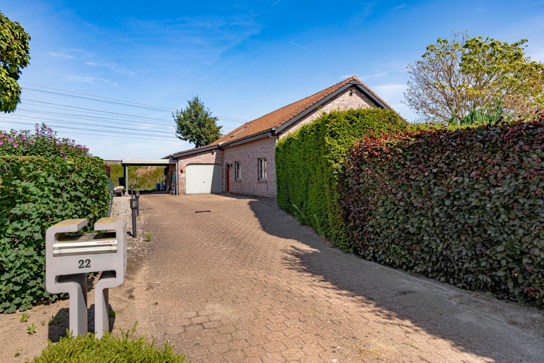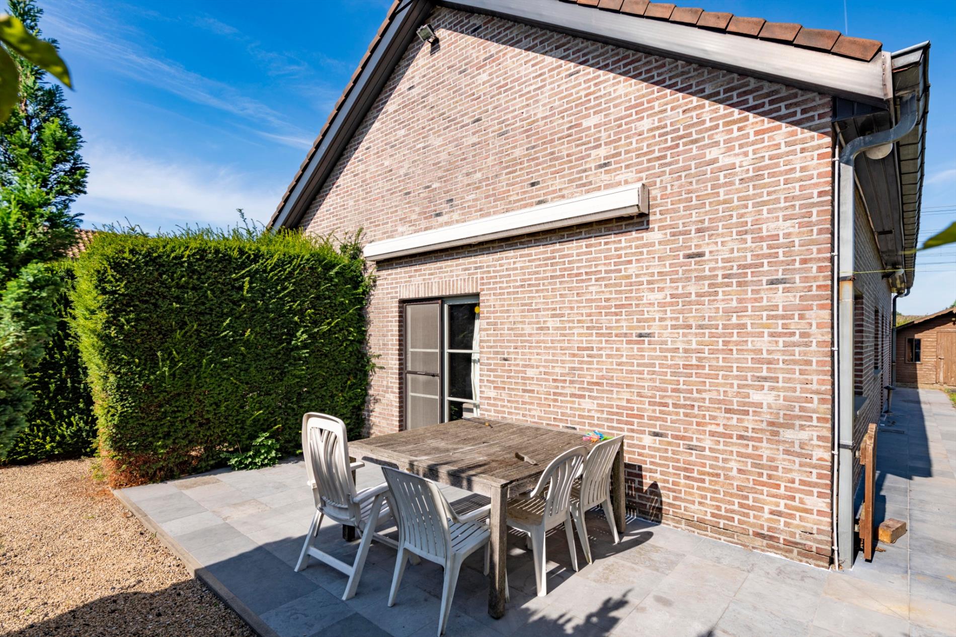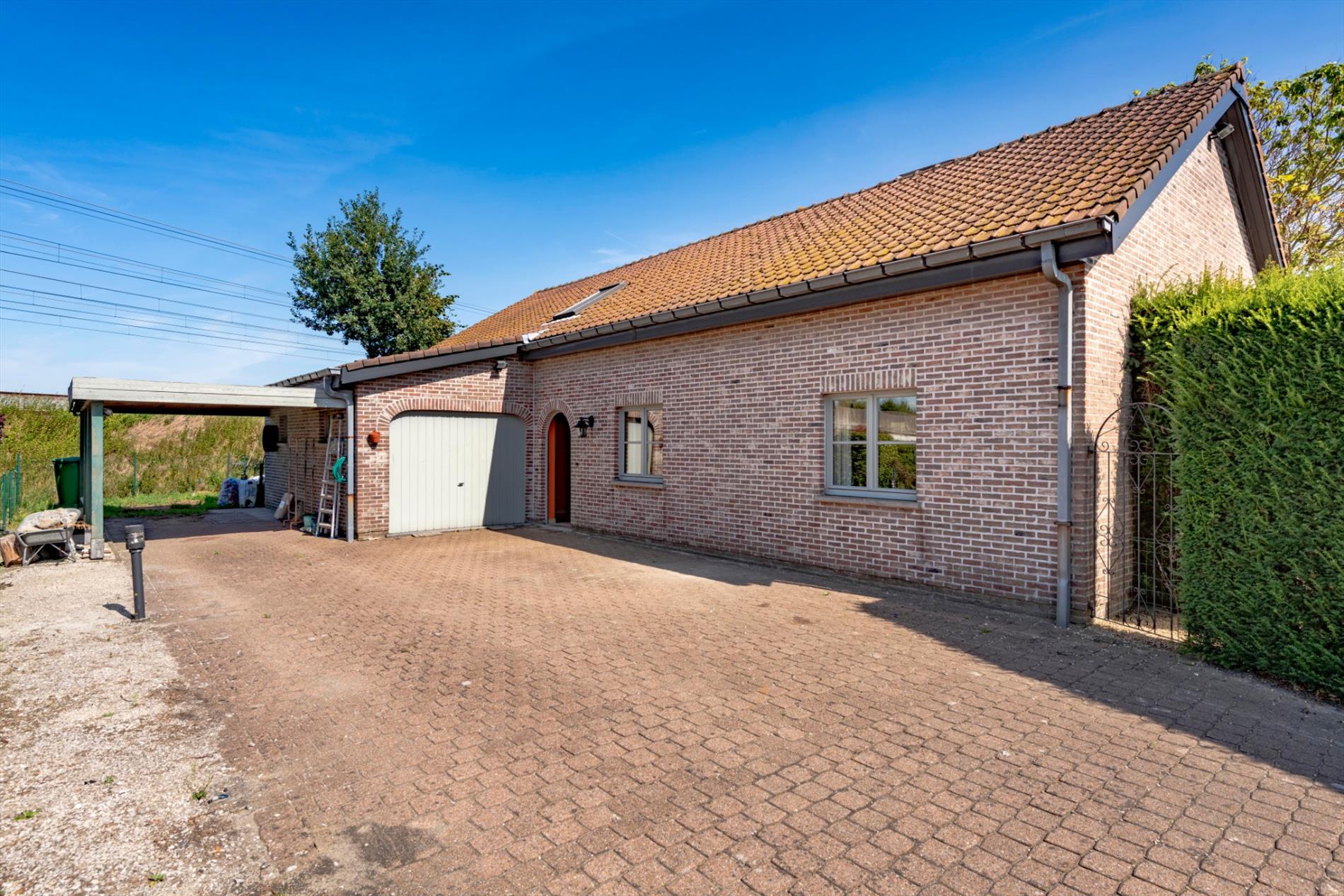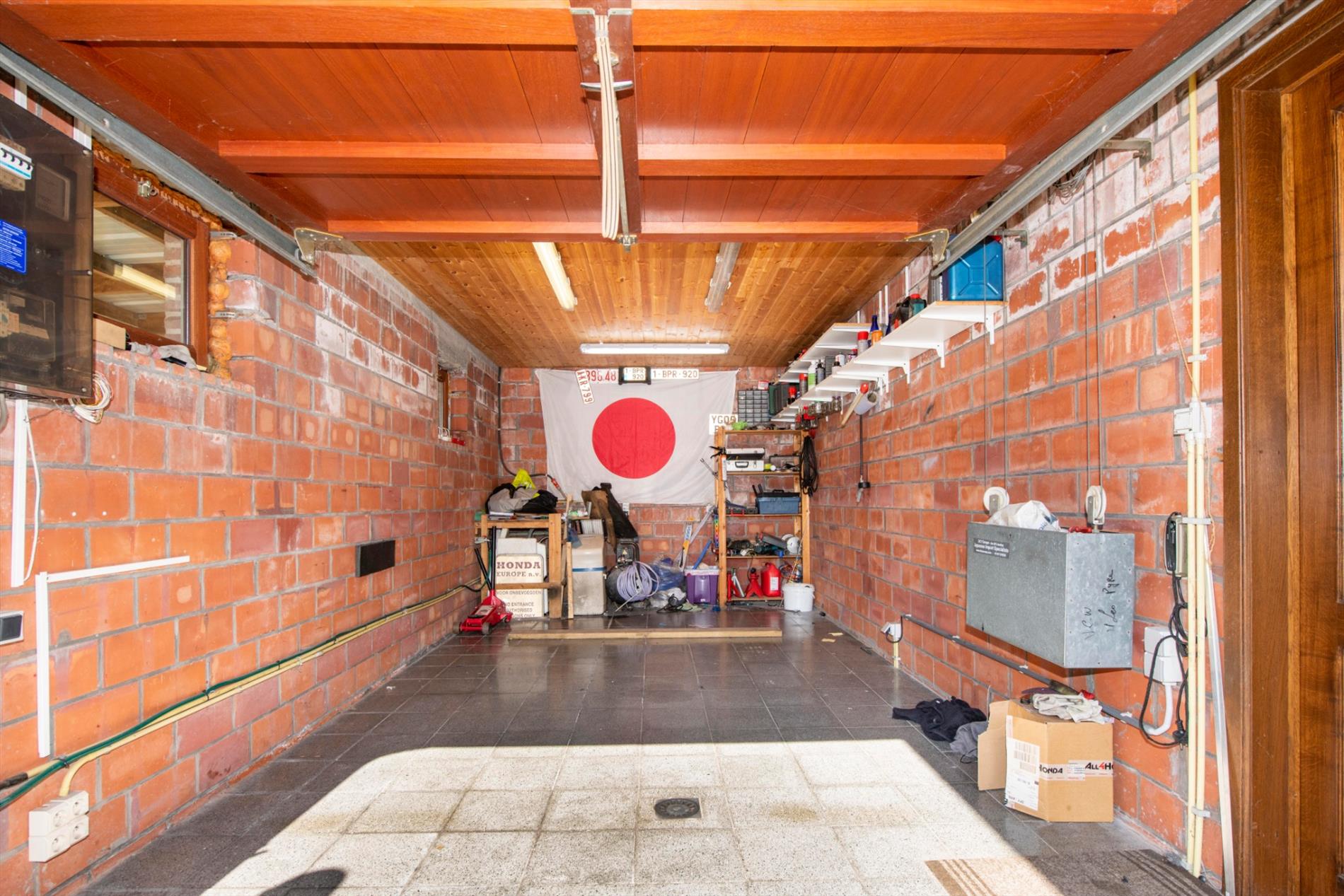 De tuin geniet een zuid-oost ligging en omvat een grote oprit met een carport én garage met handmatige kantelpoort. Verder beschikt deze eigendom over een onderhoudsvriendelijke tuin met venieuwd terras. Dit terras is voorzien van een elektrische zonnewering. Verder is er ook nog een tuinberging aanwezig alsook moestuin.