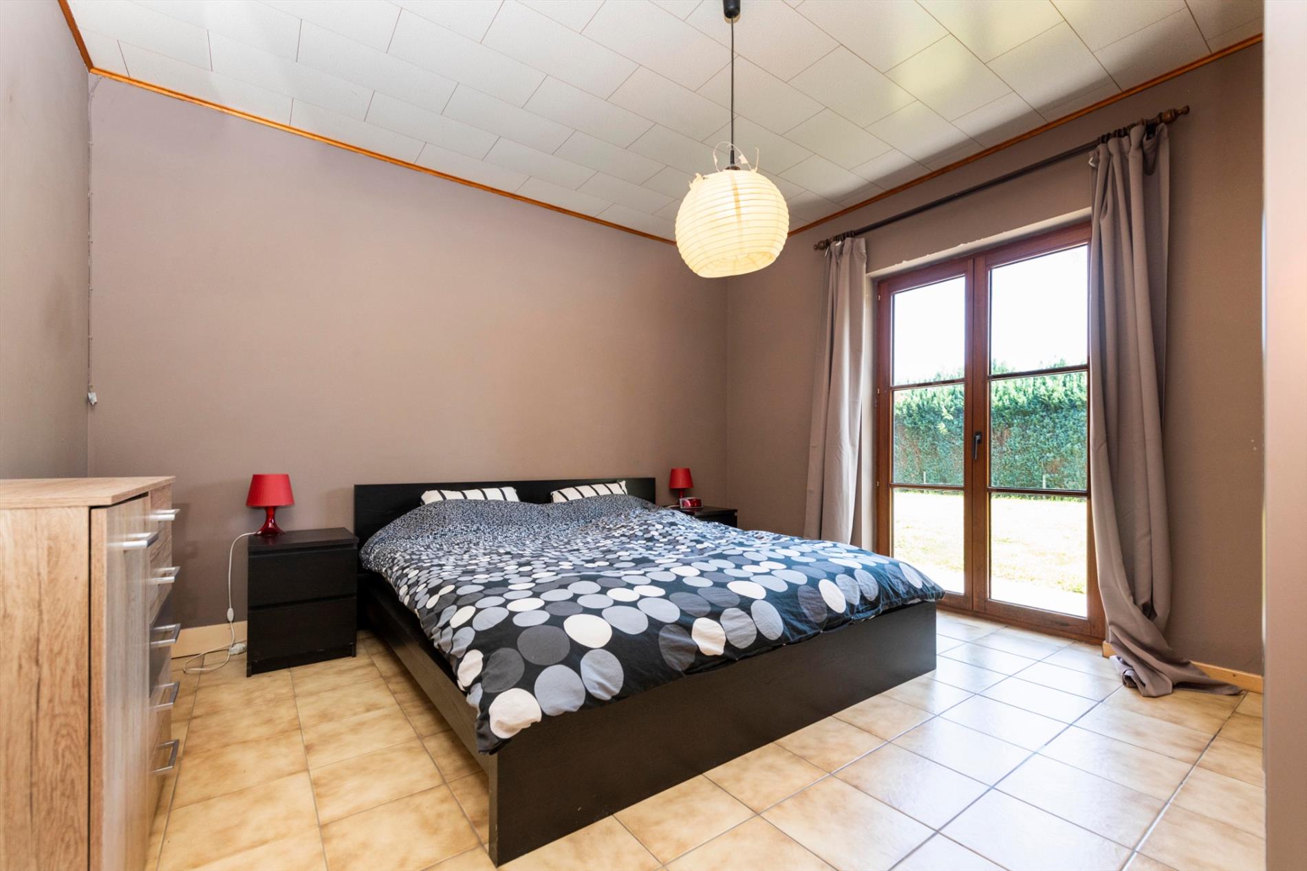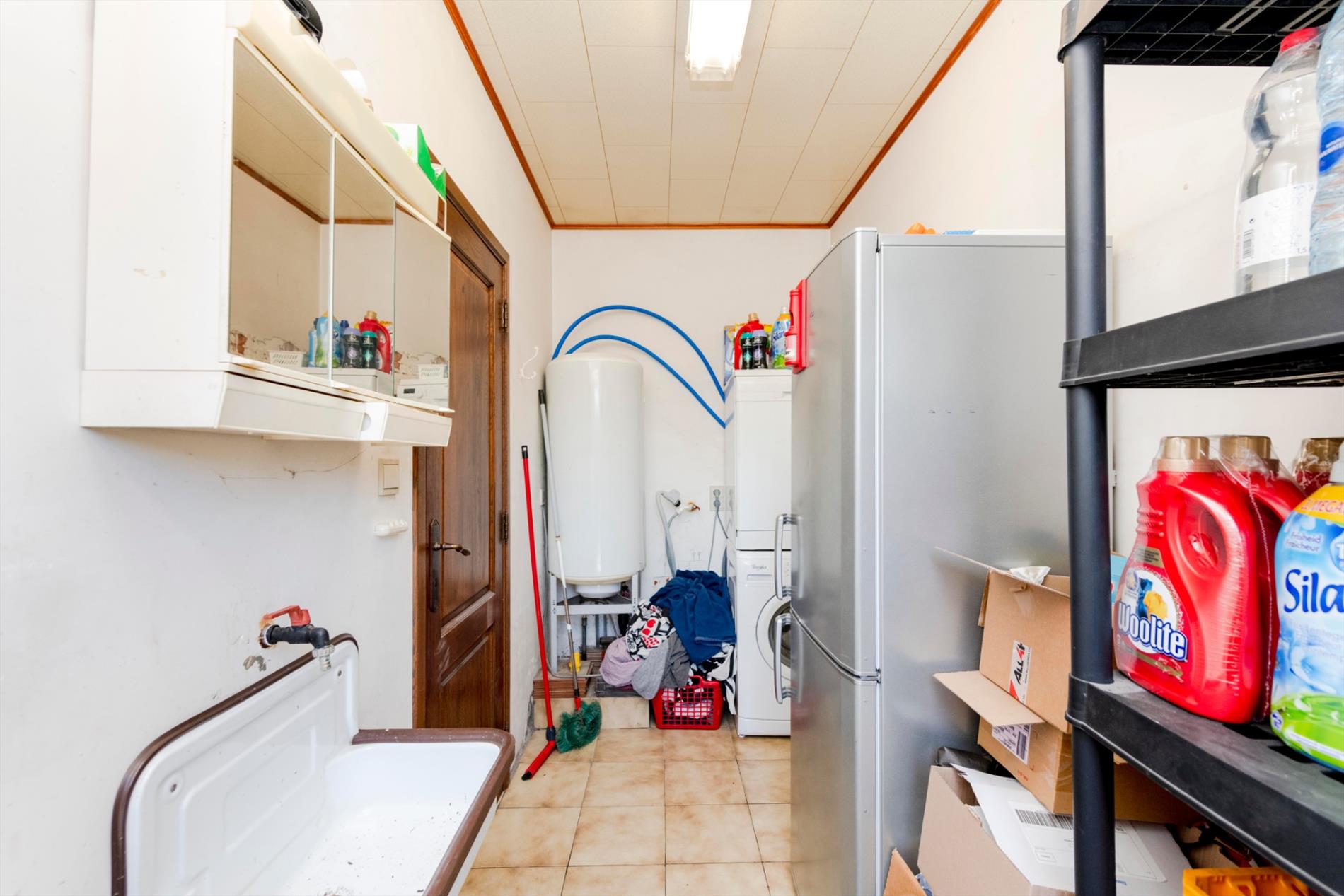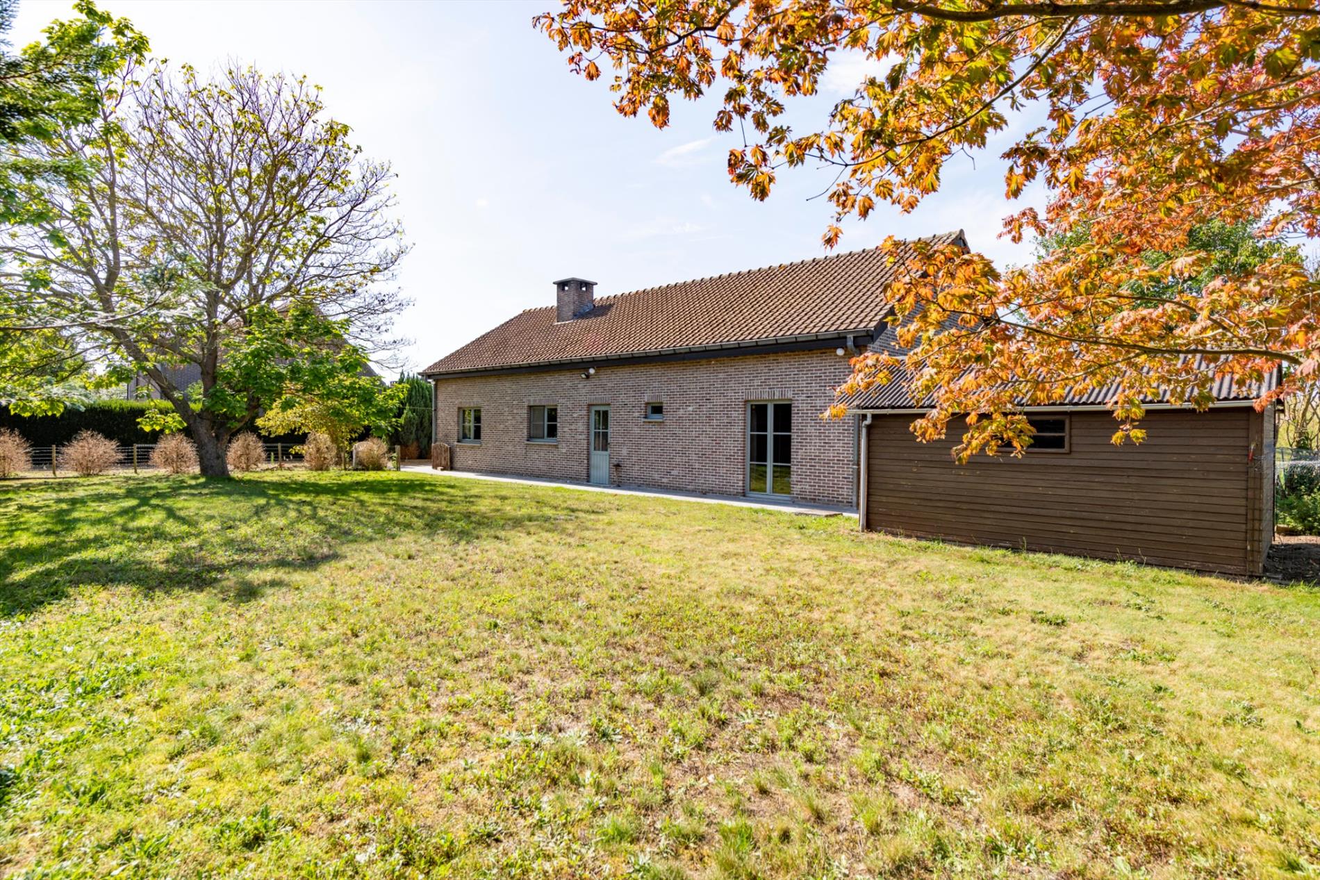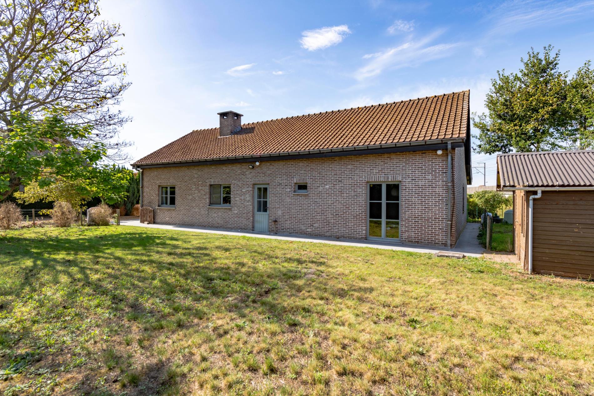 De tuin geniet een zuid-oost ligging en omvat een grote oprit met een carport én garage met handmatige kantelpoort. Verder beschikt deze eigendom over een onderhoudsvriendelijke tuin met venieuwd terras. Dit terras is voorzien van een elektrische zonnewering. Verder is er ook nog een tuinberging aanwezig alsook moestuin.