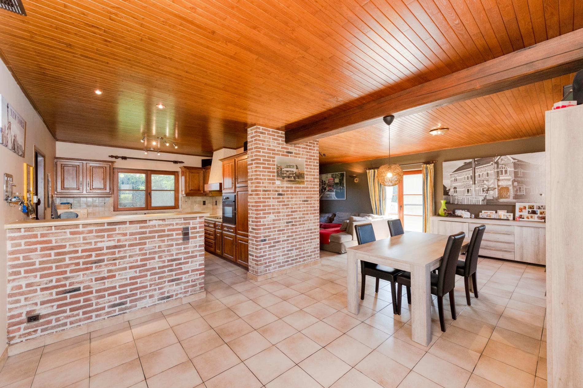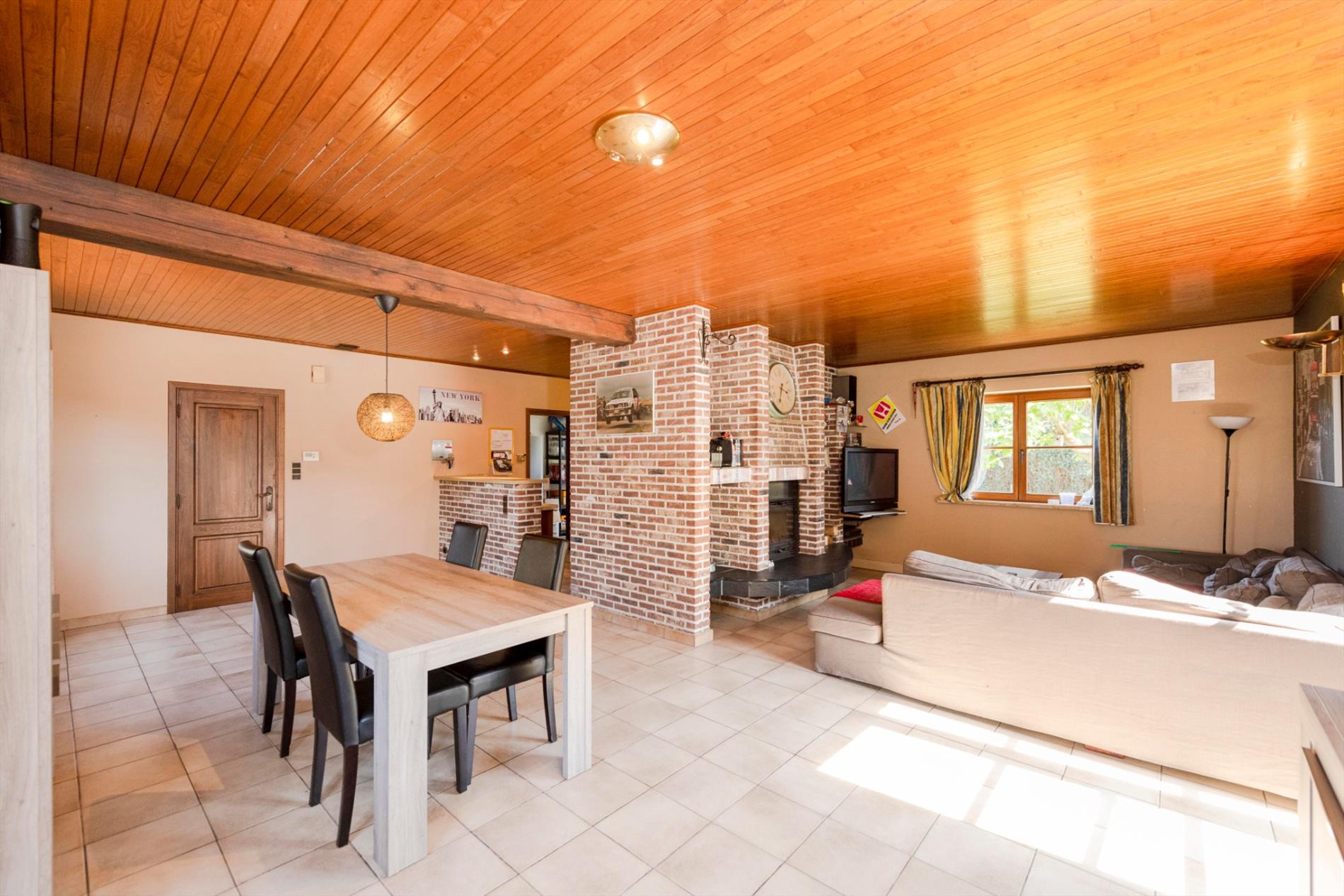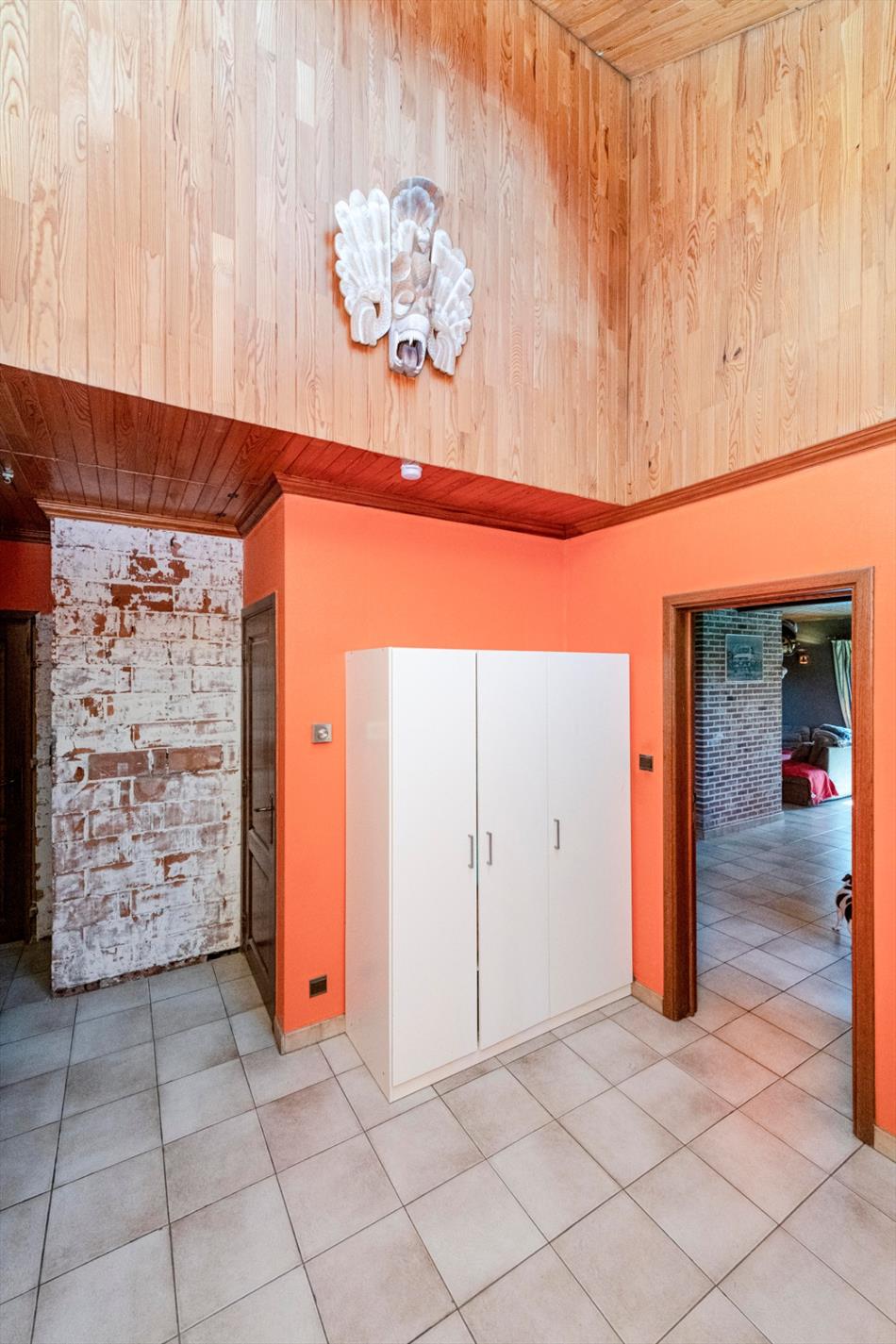 We komen binnen via de zeer ruime inkomhal met gastentoilet die zowel toegang biedt tot de twee slaapkamers, badkamer alsook tot de imposante leefruimte (45 m²!). De leefruimte beschikt over vloerverwarming en een gezellige houthaard. Naast de leefruimte bevindt zich de landelijke, rustieke eiken keuken en omvat een elektrische kookplaat | dampkap | koelkast | oven | dubbele spoelbak. Aansluitend is er een achterinkom/berging, voorzien van aansluitingen voor de wasmachine, droogkast en uitgietbak.
