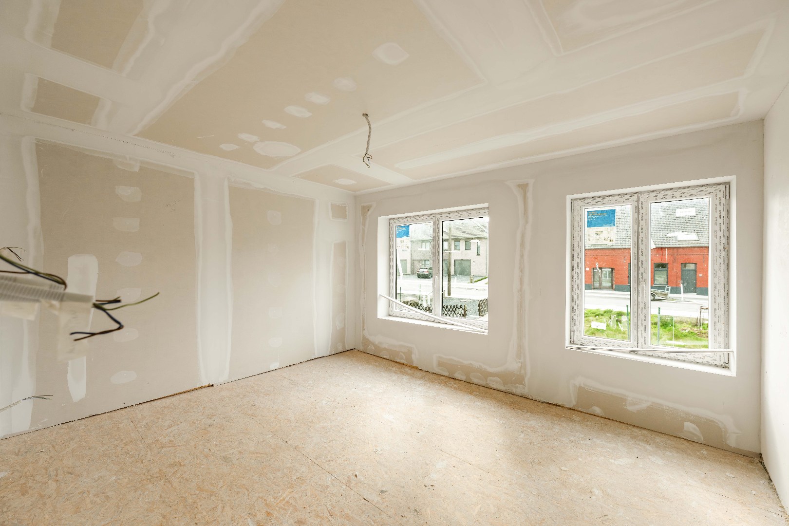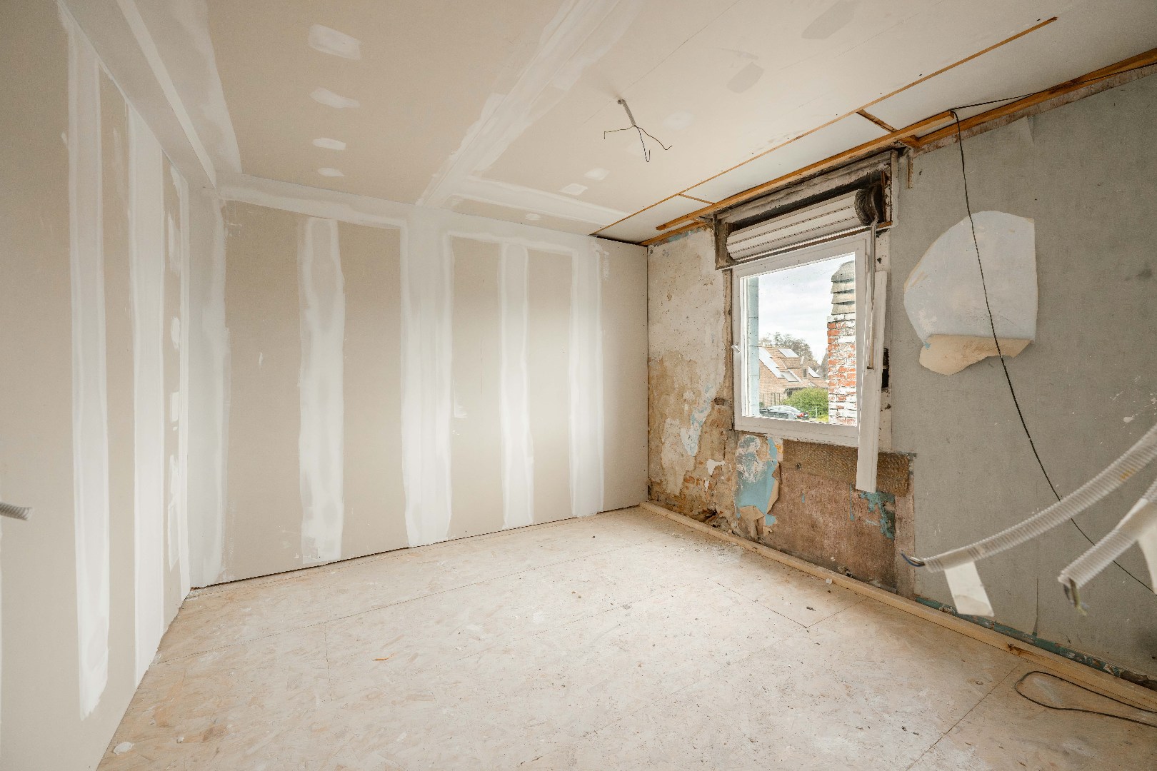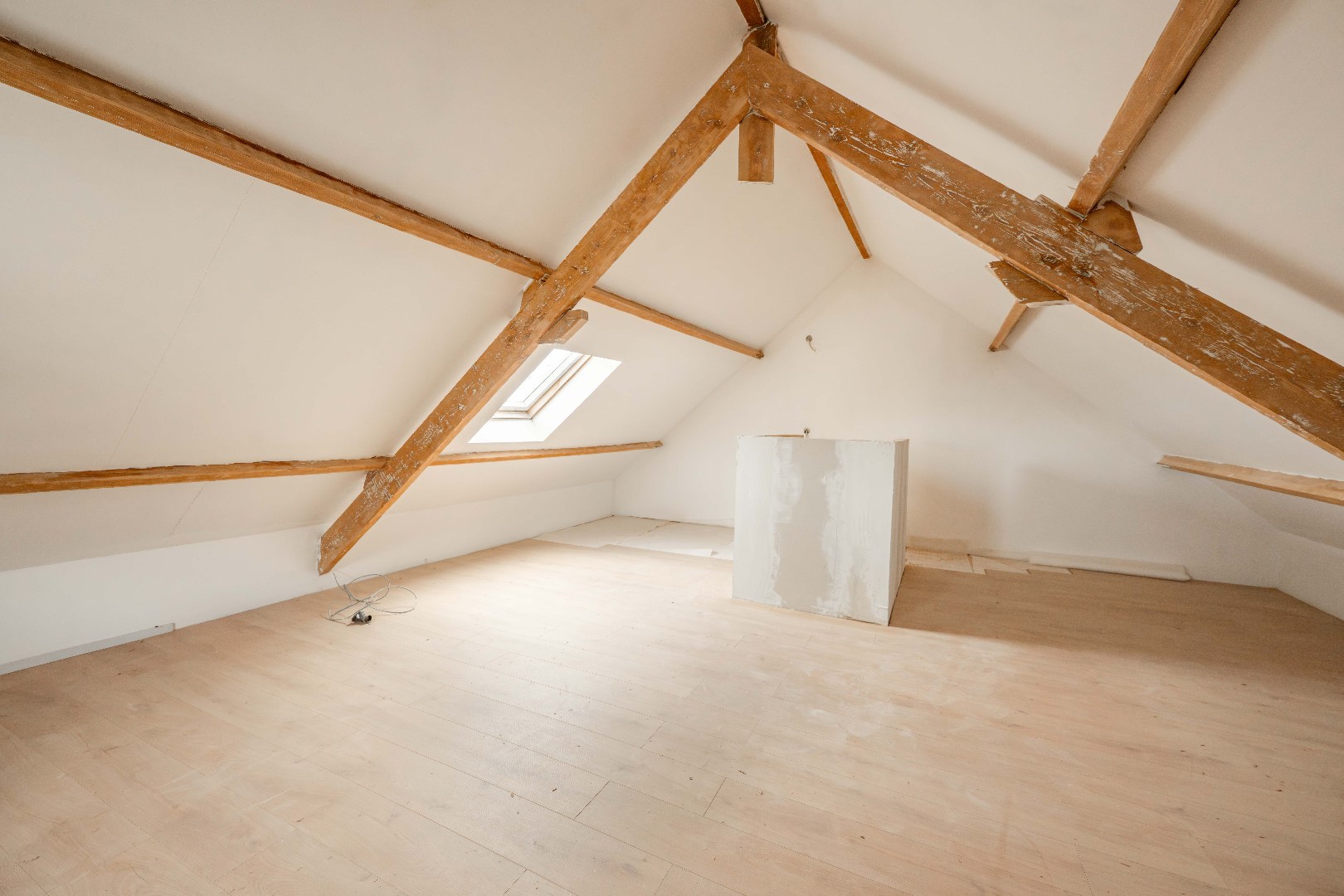 Op de eerste verdieping bevinden zich 4 ruimtes waarvan één voorzien is voor het installeren van een badkamer. De zolderverdieping is grotendeels afgewerkt als extra zeer ruime slaapkamer.