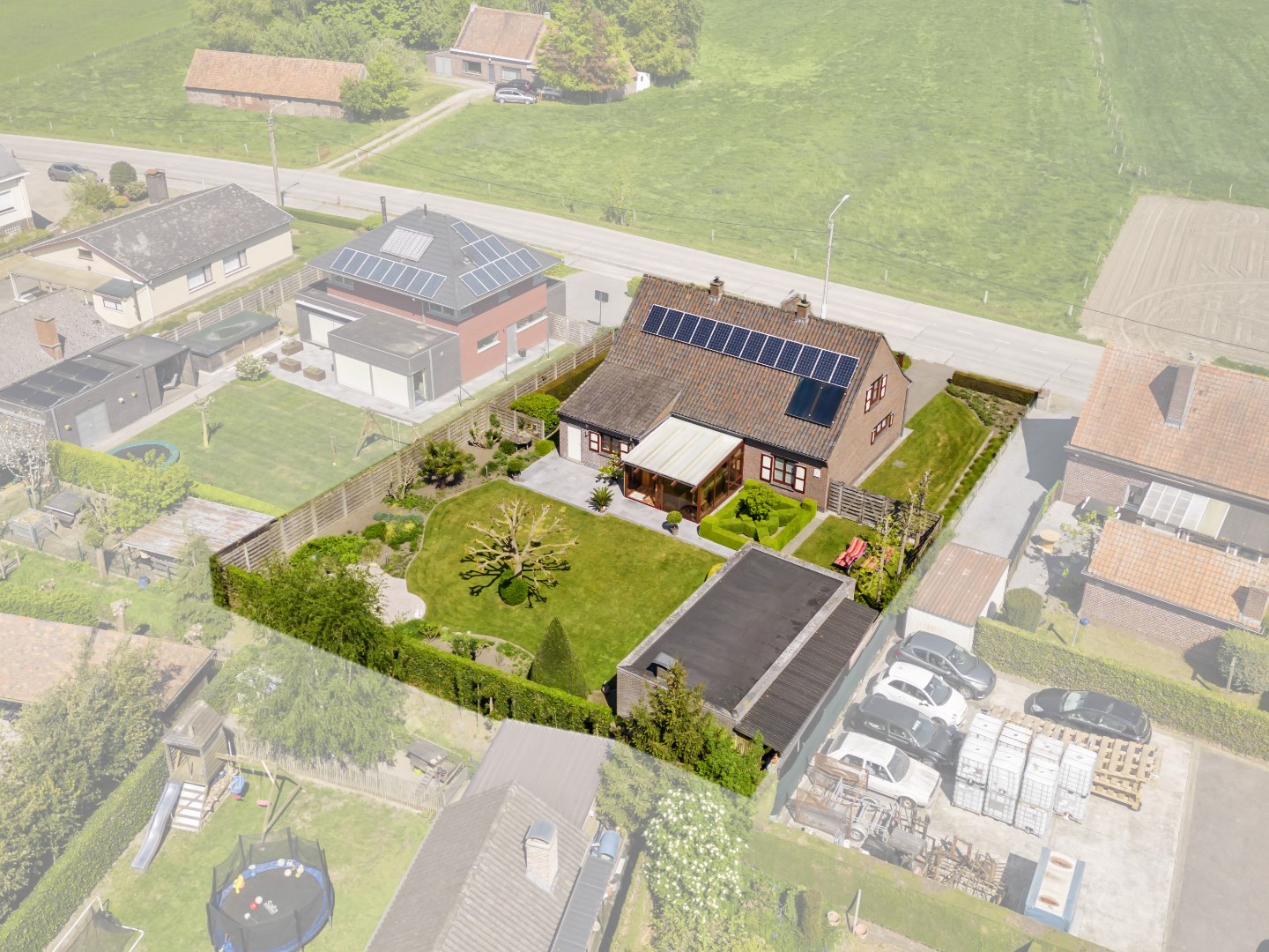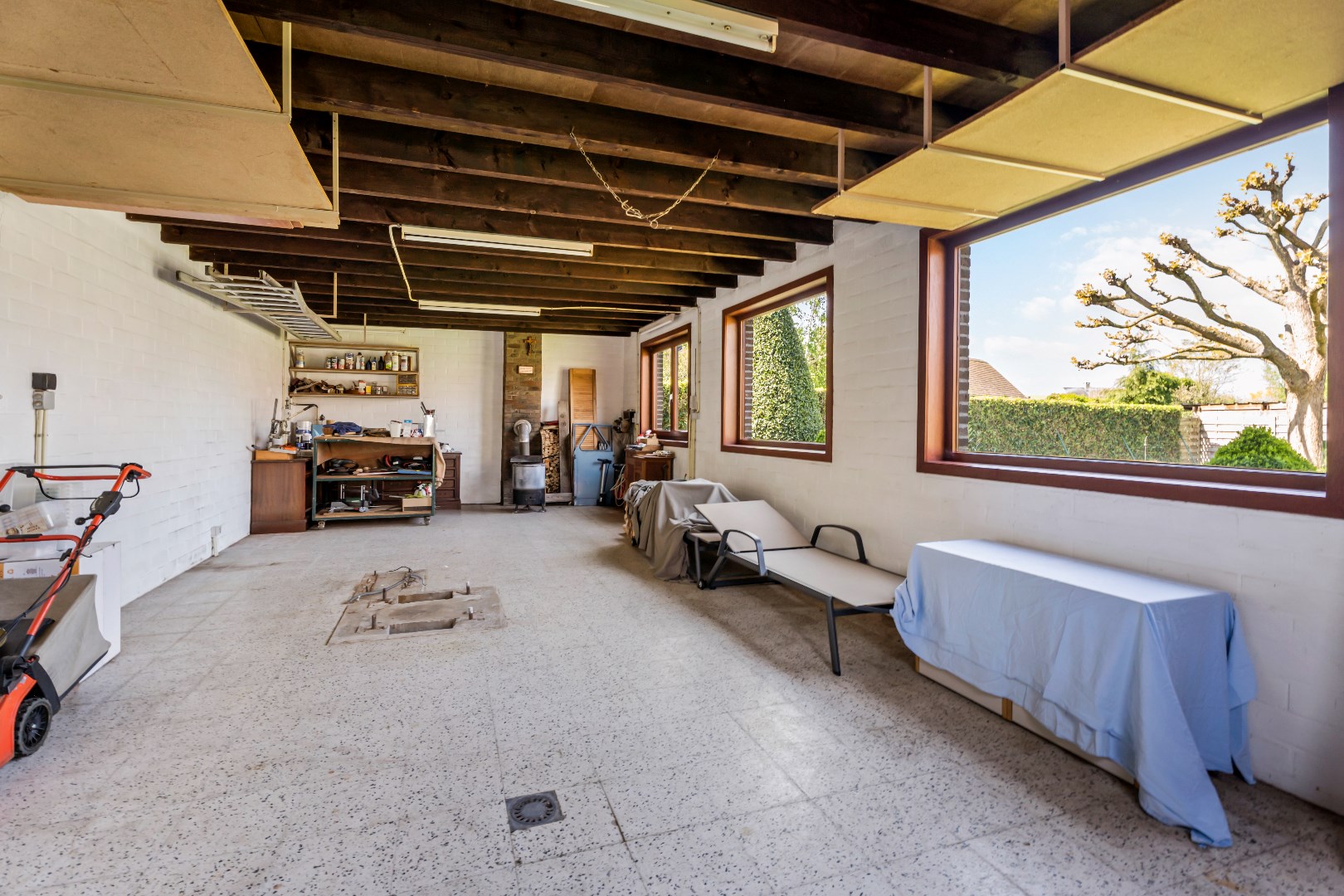 De verschillende terrasjes zijn perfect om op elk moment van de dag te genieten. Bovendien is er een ruime tuinberging (51m²) perfect om meerdere wagens te plaatsen of hobbyruimte.