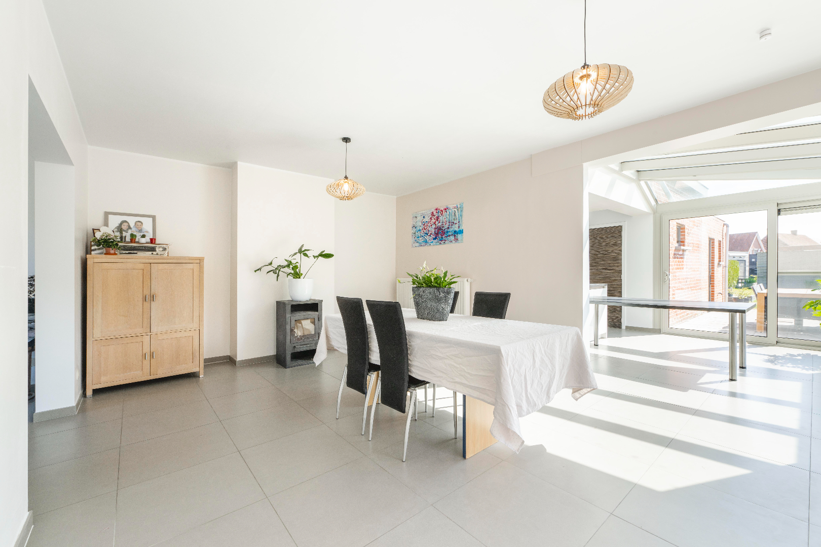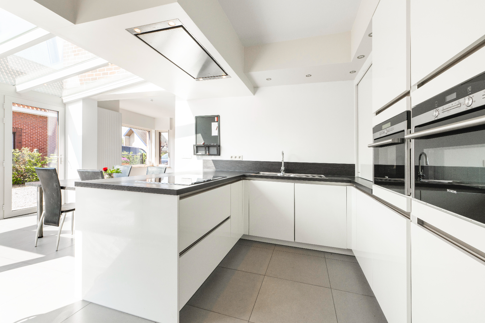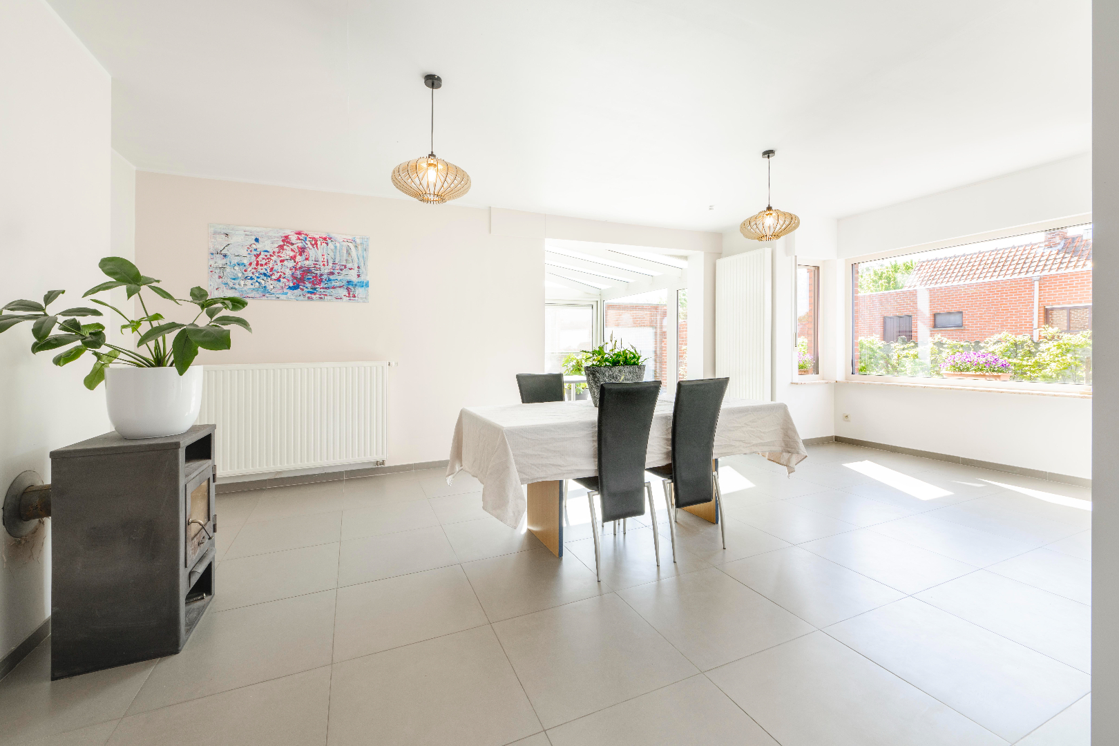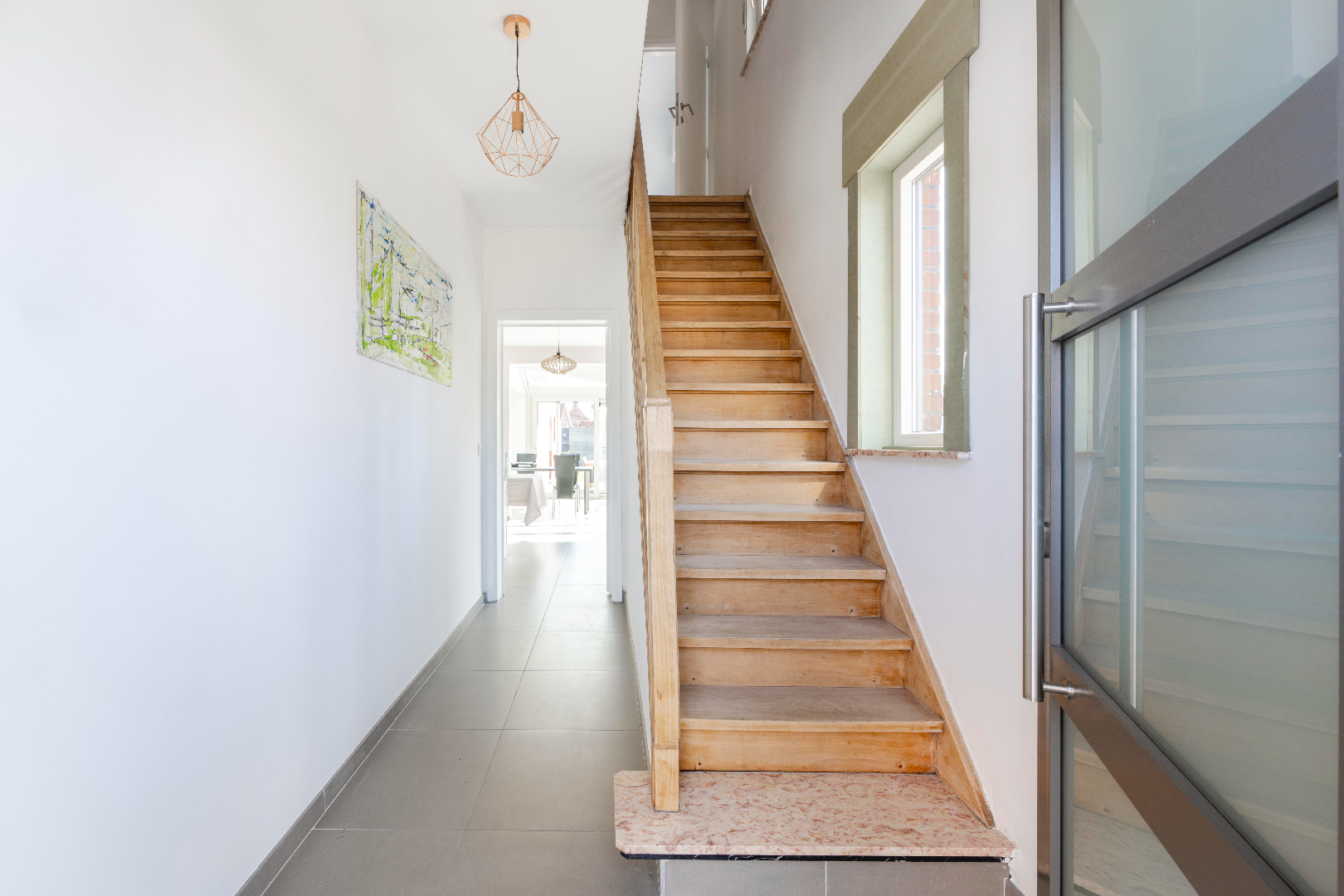 U komt de woning binnen via de inkomhal met authentieke trap. Verder komt U terecht in de ruime en zeer lichtrijke leefruimte (44,50 m²) met zit- en eethoek. Vervolgens is er de ingerichte keuken 20 m² (kookplaat | dampkap | dubbele spoelbak | oven | vaatwasser | extra large frigo) met aansluitende veranda (2011). Handig is ook de kelder als stapelplaats. Vanuit de veranda is er toegang tot het vernieuwde terras en aansluitende zongerichte tuin.