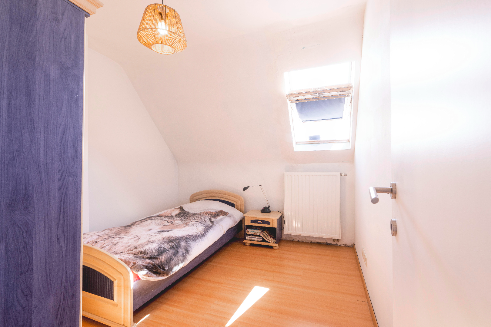 Het verdiep omvat 3 slaapkamers (22,50 m² | 12 m² | 9,5 m²) en een nog verder af te werken sanitaire ruimte waar reeds een toilet is voorzien.