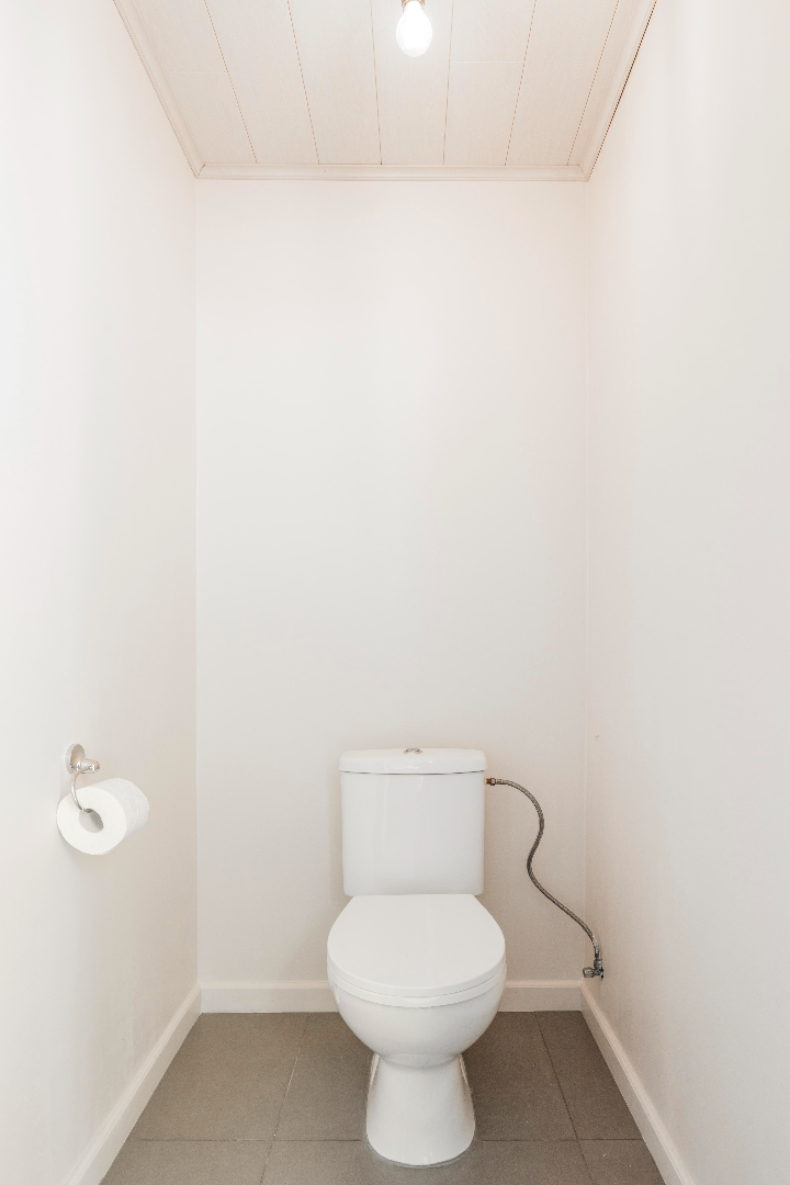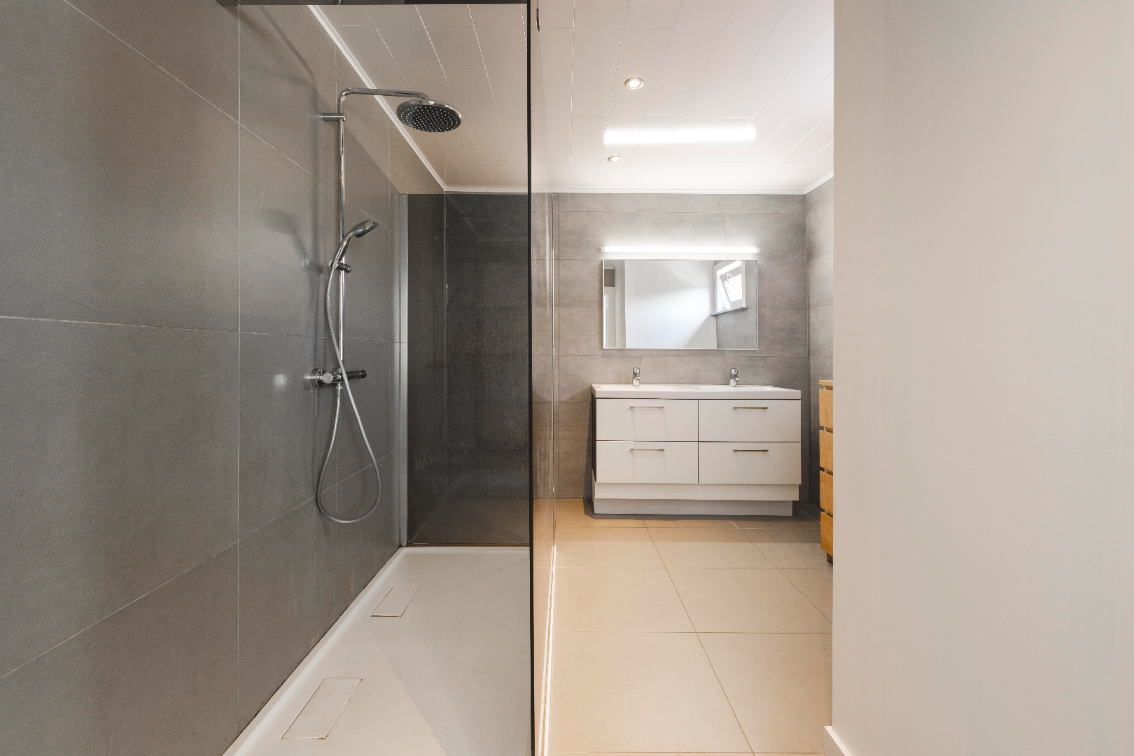 Als laatste op het gelijkvloers is er de vernieuwde badkamer (2022 | dubbele lavabo | inloopdouche) en het apart gastentoilet.