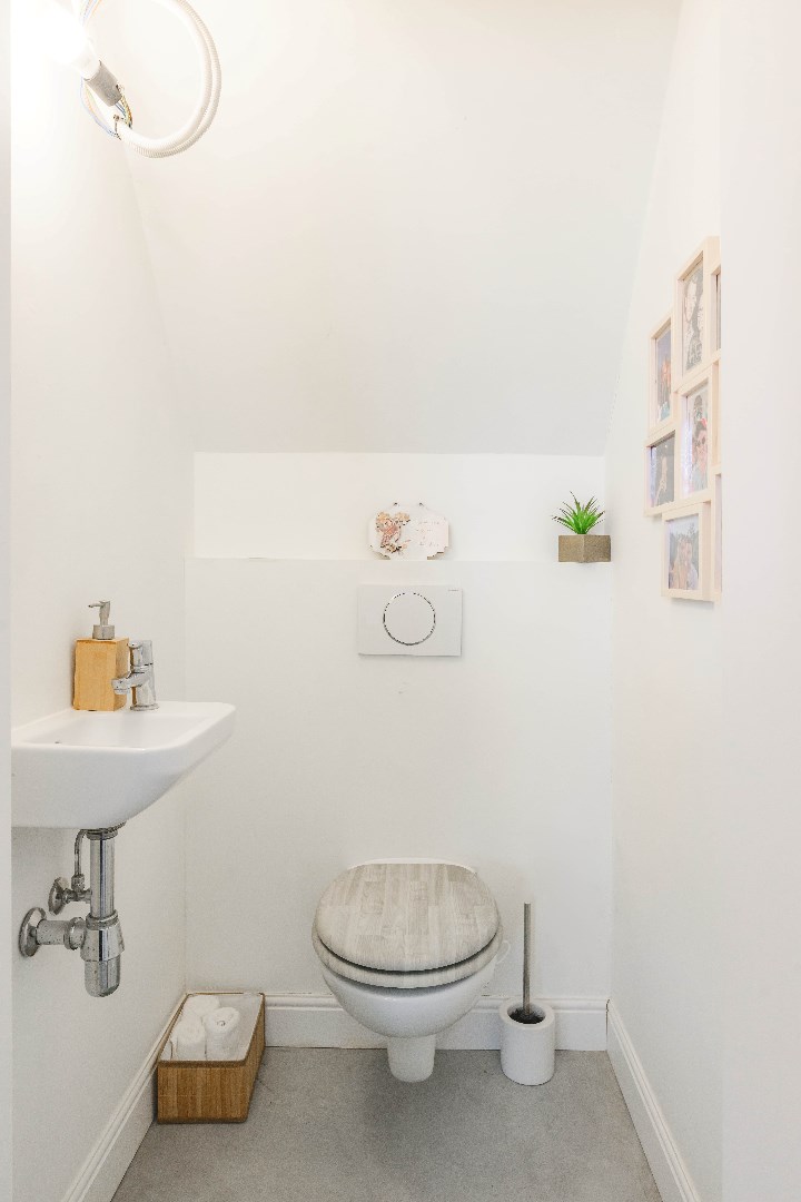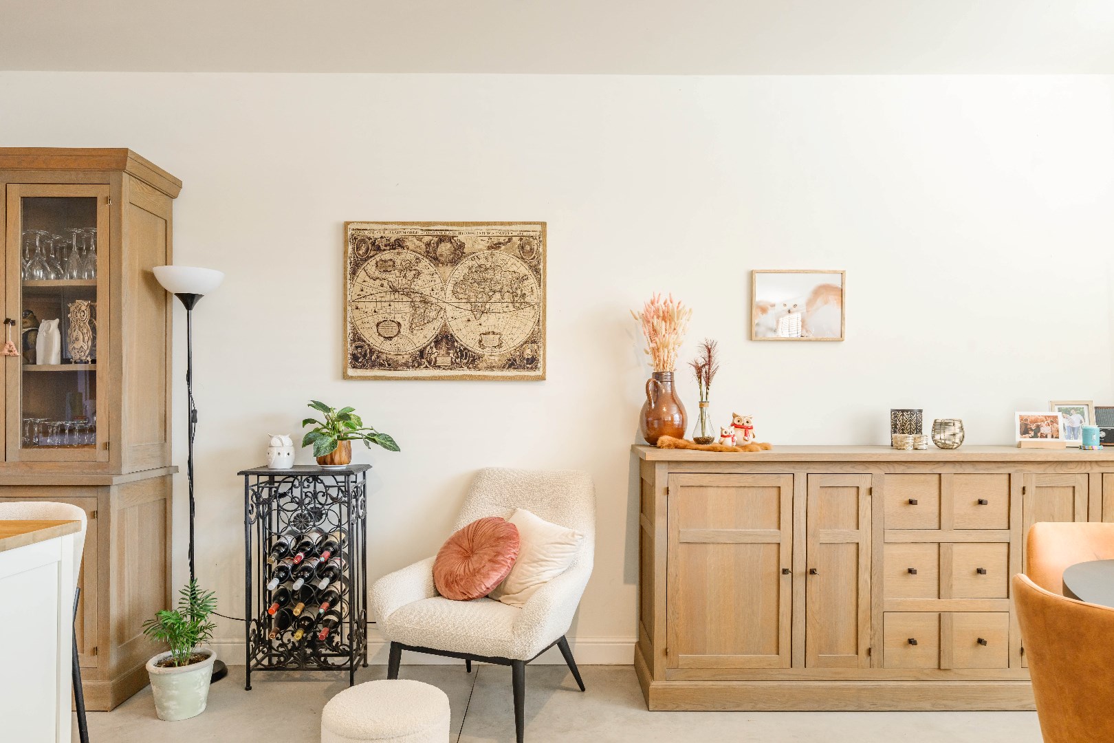 Bij binnenkomst komt u in de lichtrijke woonkamer met een gezellige zit- en eethoek, voorzien van een apart gastentoilet.