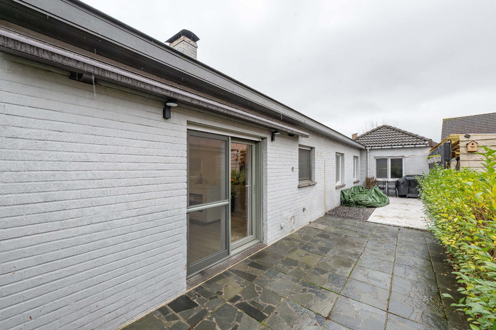 De eigendom beschikt over een lichtrijke leefruimte met directe toegang tot het terras/de tuin. De gezellige houtcassette maakt deze ruimte compleet!