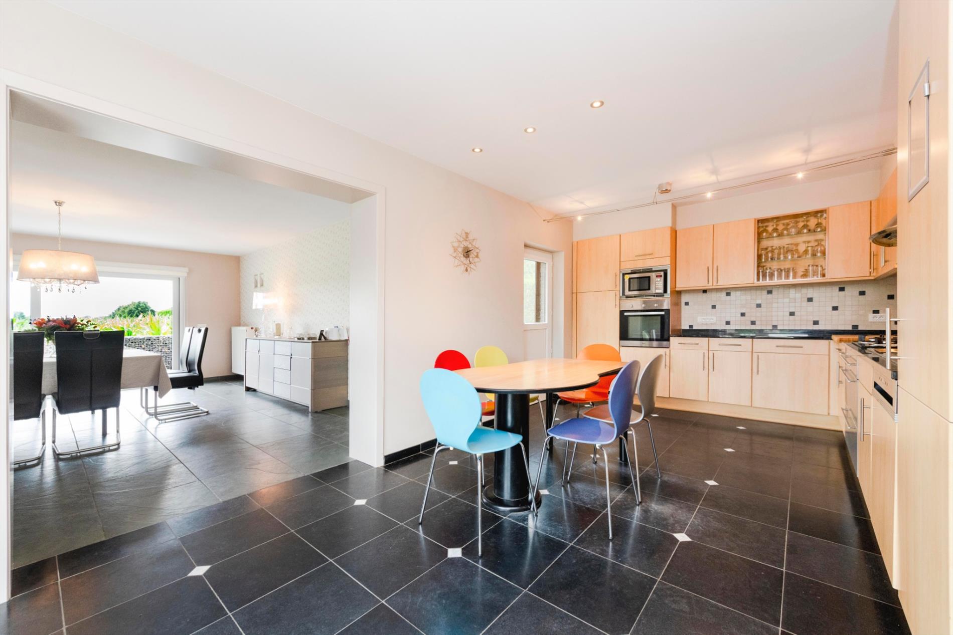 Zowel de leefruimte als de keuken heeft toegang tot de verschillende terrassen.