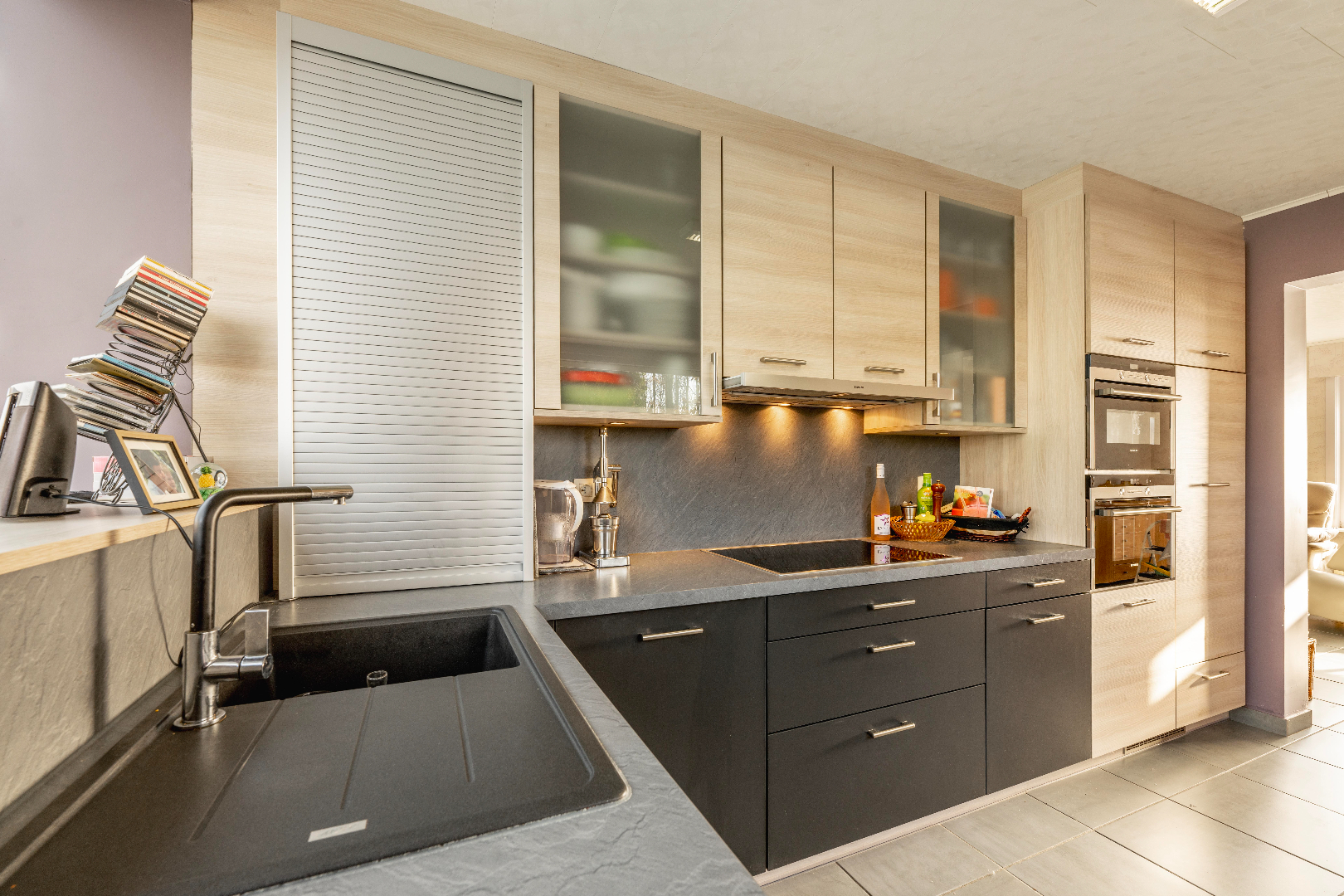 Aansluitend is er de volledig ingerichte keuken met aansluitend de veranda (voorzien van automatische zonnewering). Via de veranda is er directe toegang tot het terras/de tuin.