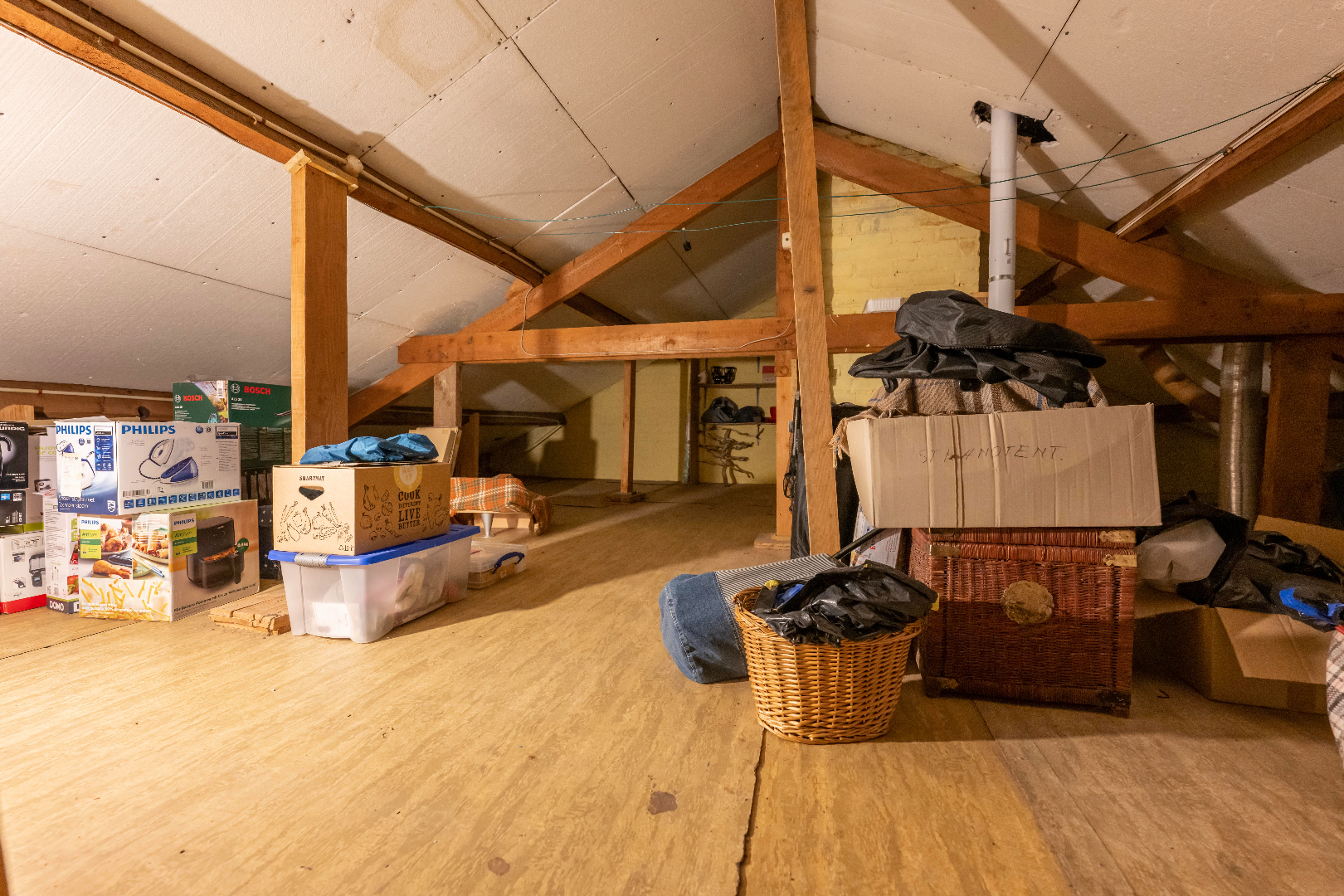 Via de nachthall is er toegang tot de technische berging, de volledig vernieuwde badkamer alsook de twee slaapkamers. De zolder is toegankelijk via de vouwtrap.