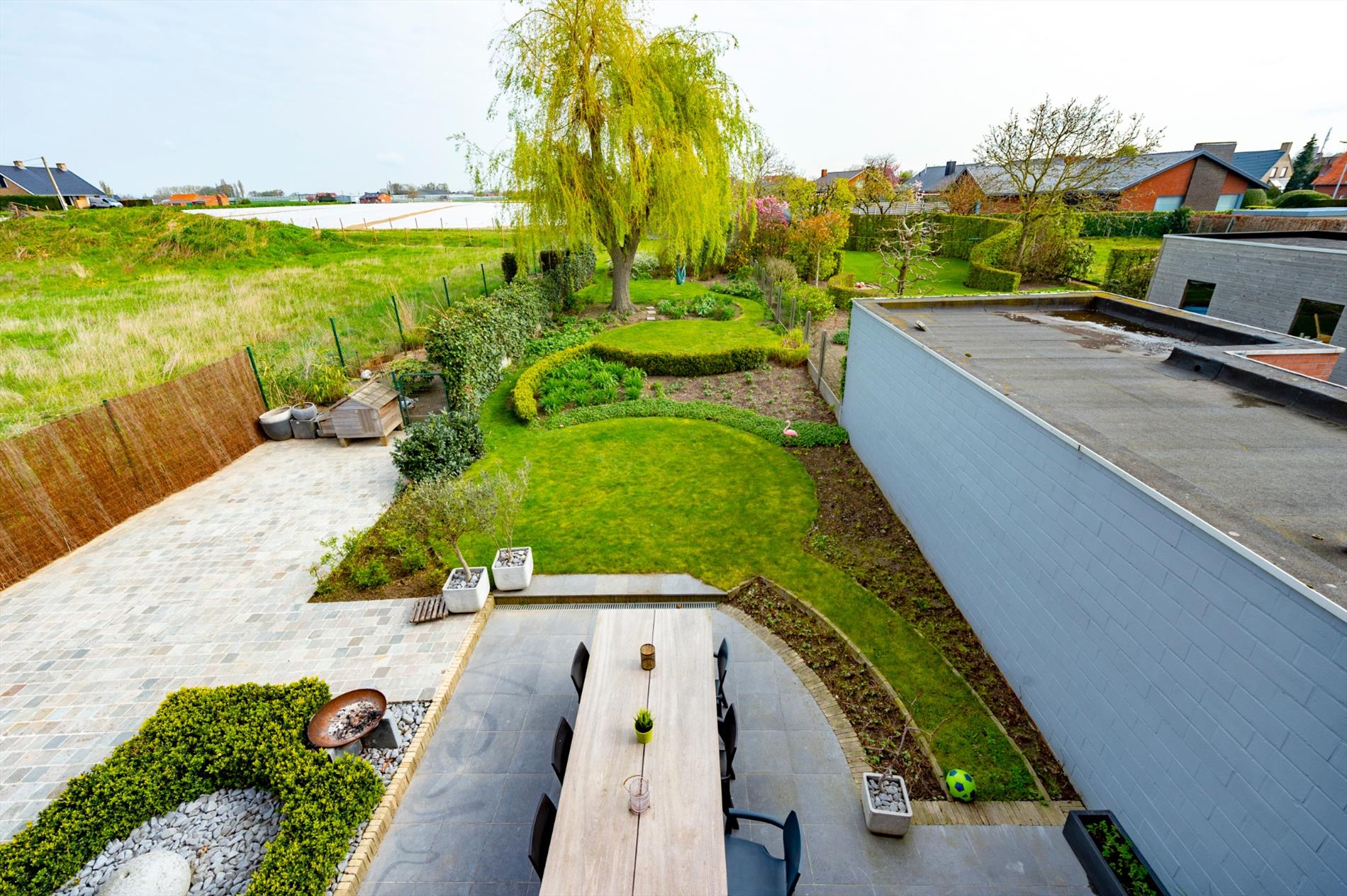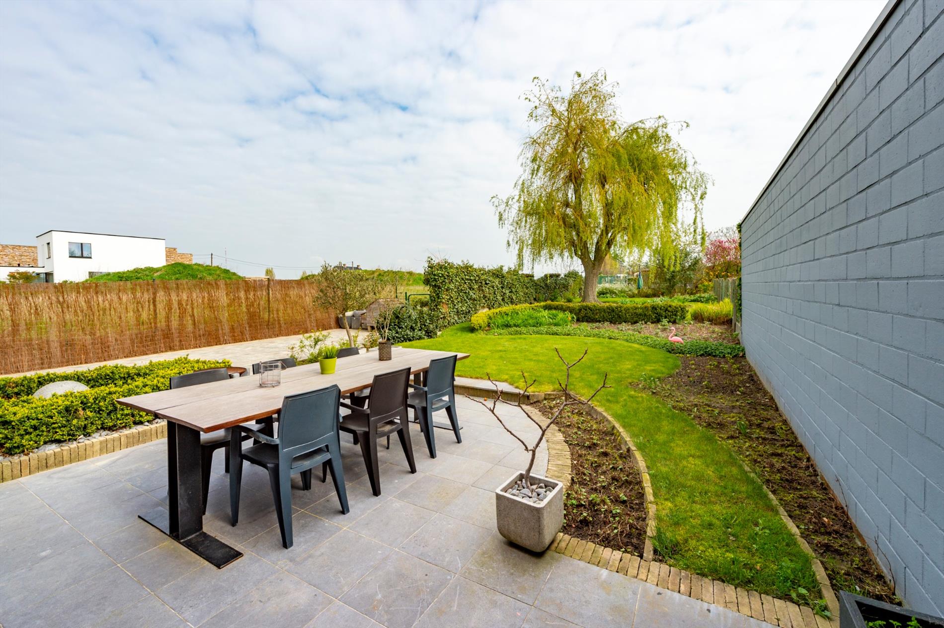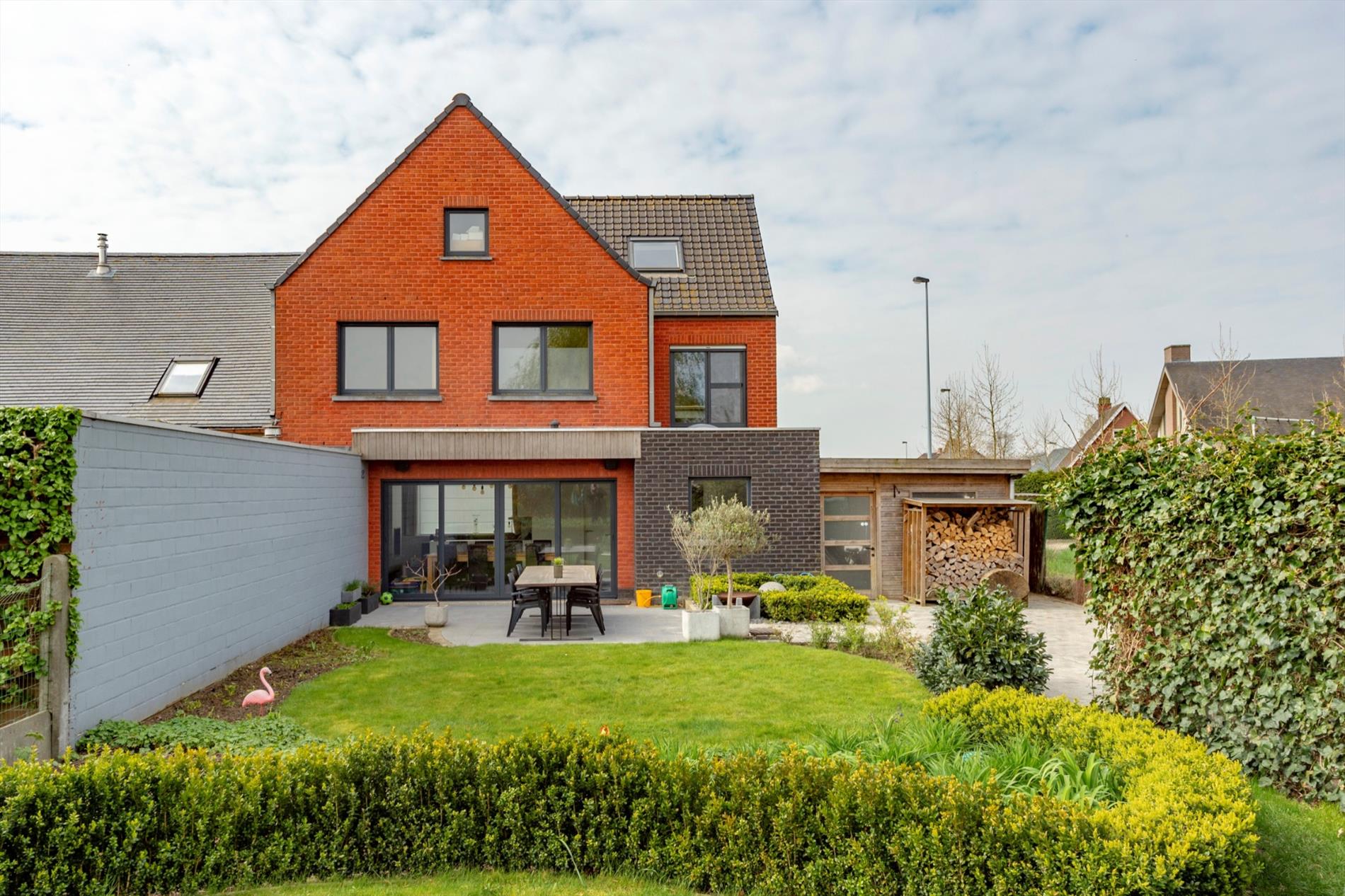 Exterieur: De eigendom omvat aan de linkerkant een ruime carport met aansluitende berging. U geniet van een directe toegang tot de tuin. Tevens is er achteraan het perceel een recent ruime tuinhuis waar allerhande tuinmateriaal kan geplaatst worden. De tuin zelf heeft verschillende compartimenten waardoor U over een ruim terras beschikt, kippenpark, en ruimte om trampoline of zwembad te plaatsen.