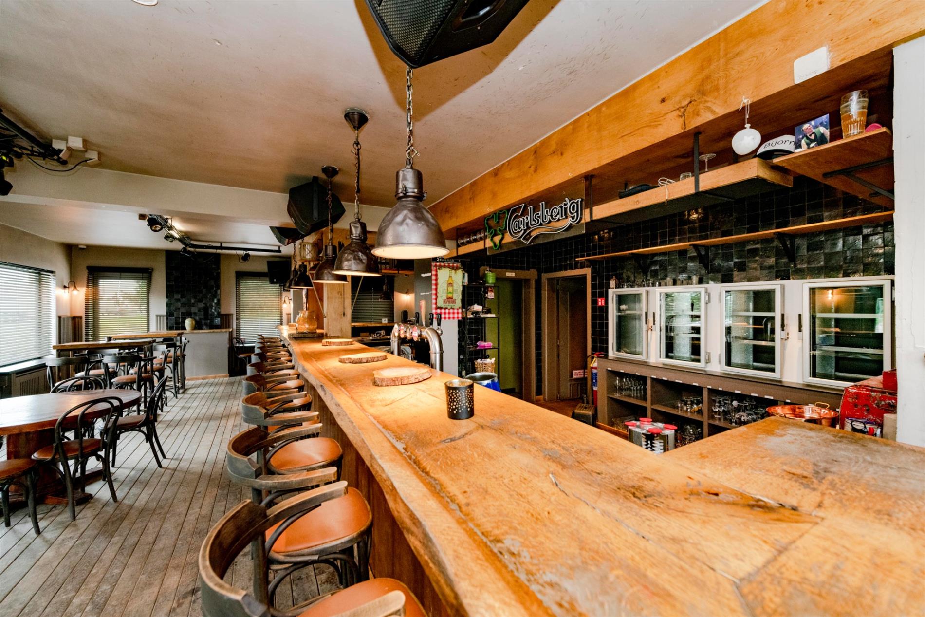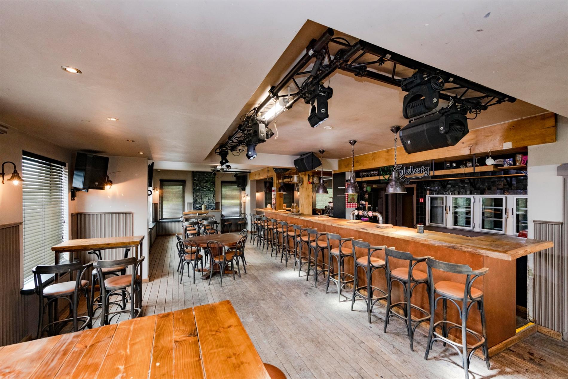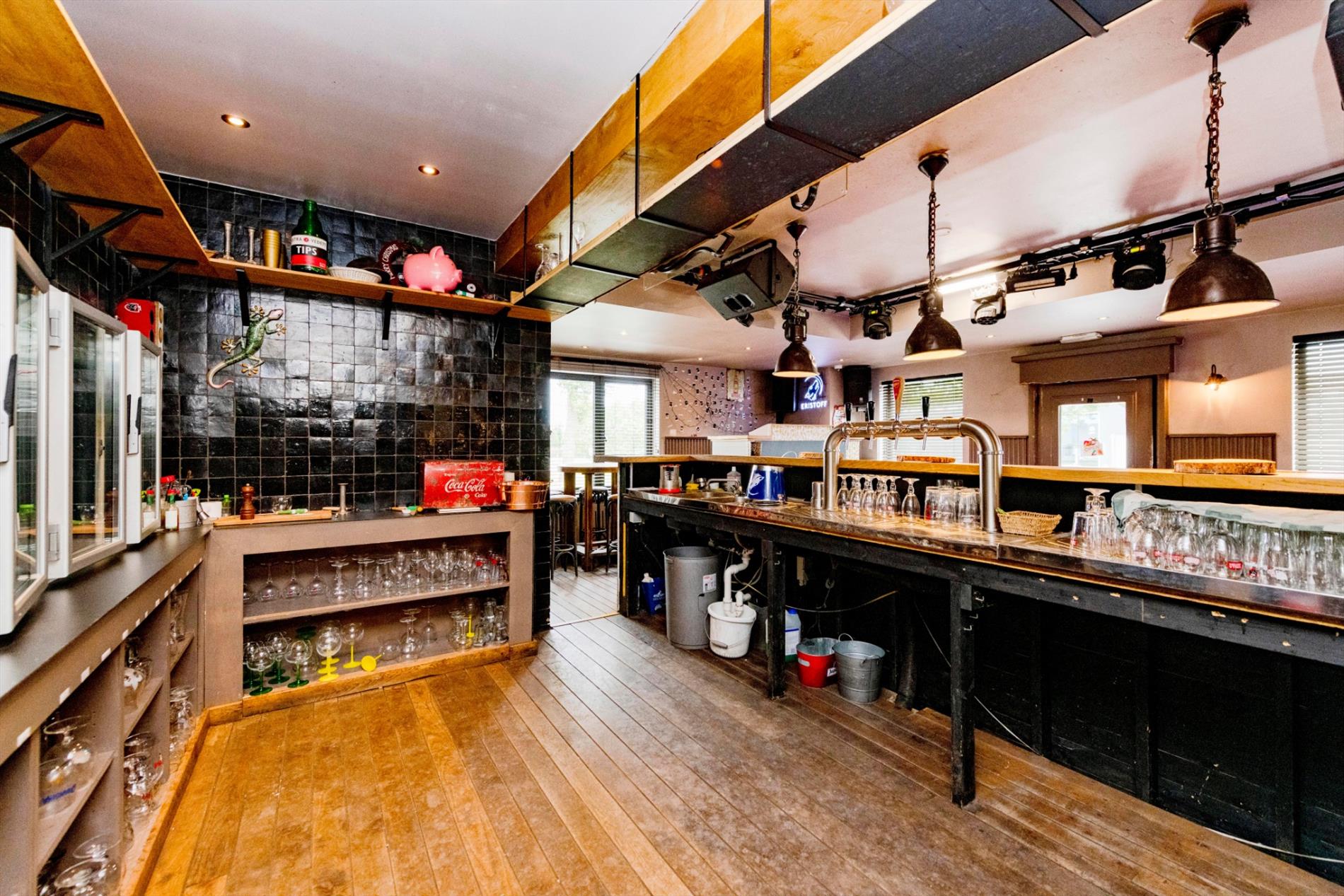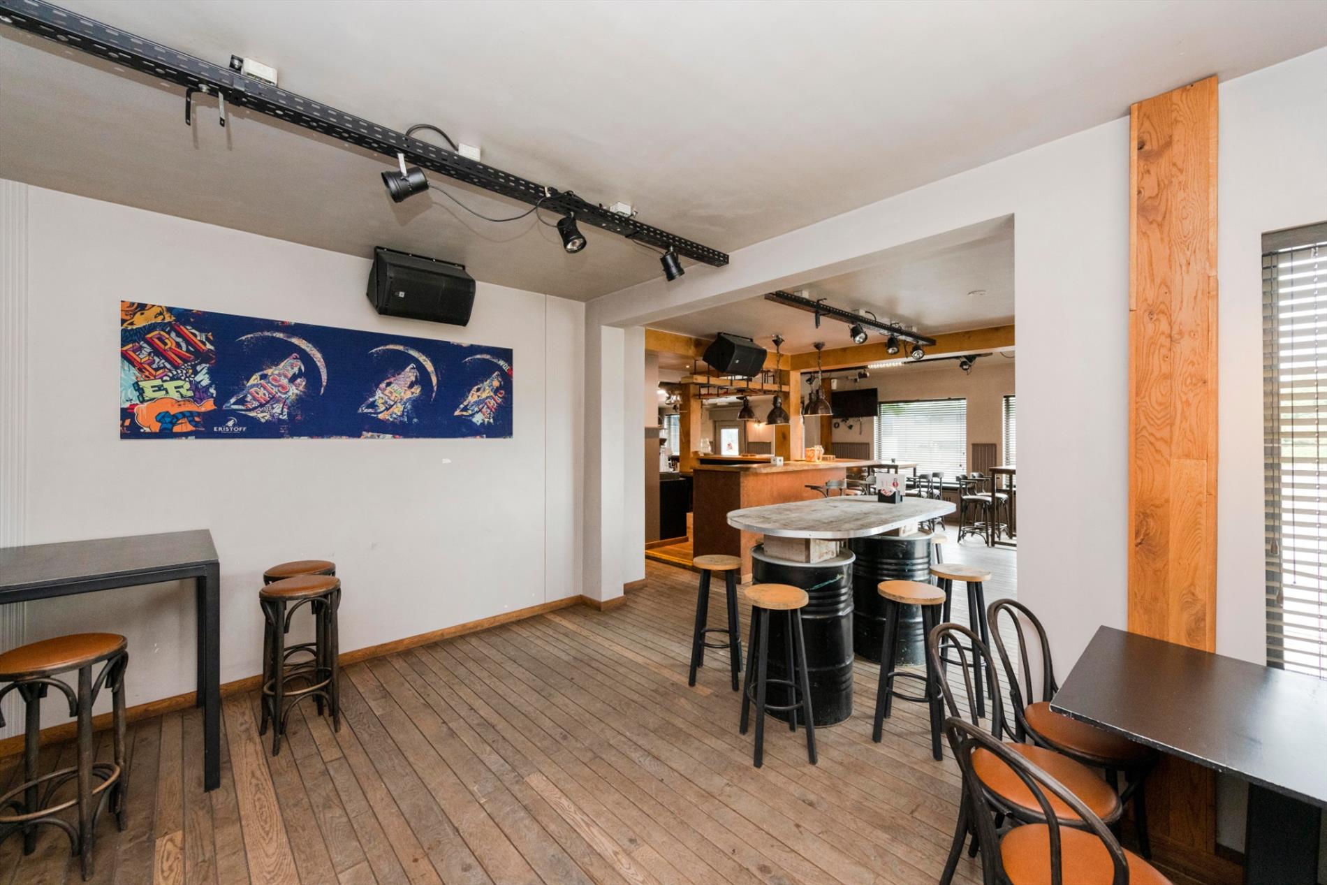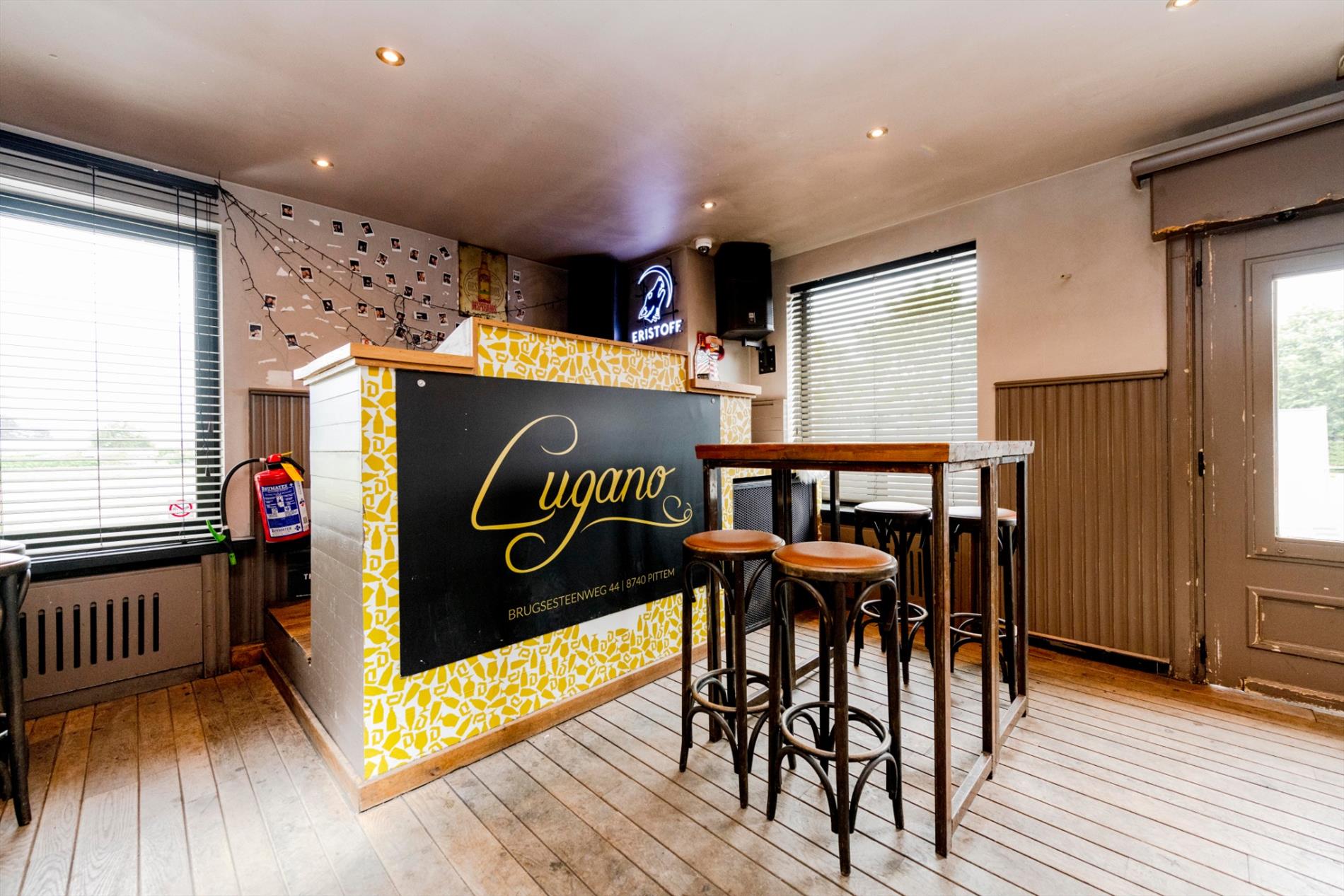 De eigendom is een voormalige horecazaak vernieuwd in 2016 en omvat een verbruikerszaal van +/- 180 m² dit in een gezellige sfeer met een ruime authentieke bar met ingebouwde frigo's (de frigo's zijn voorzien van glazen deuren alsook doorschuifsysteem vanuit frigocel). Verder is het sanitaire gedeelte nog te vernieuwen.