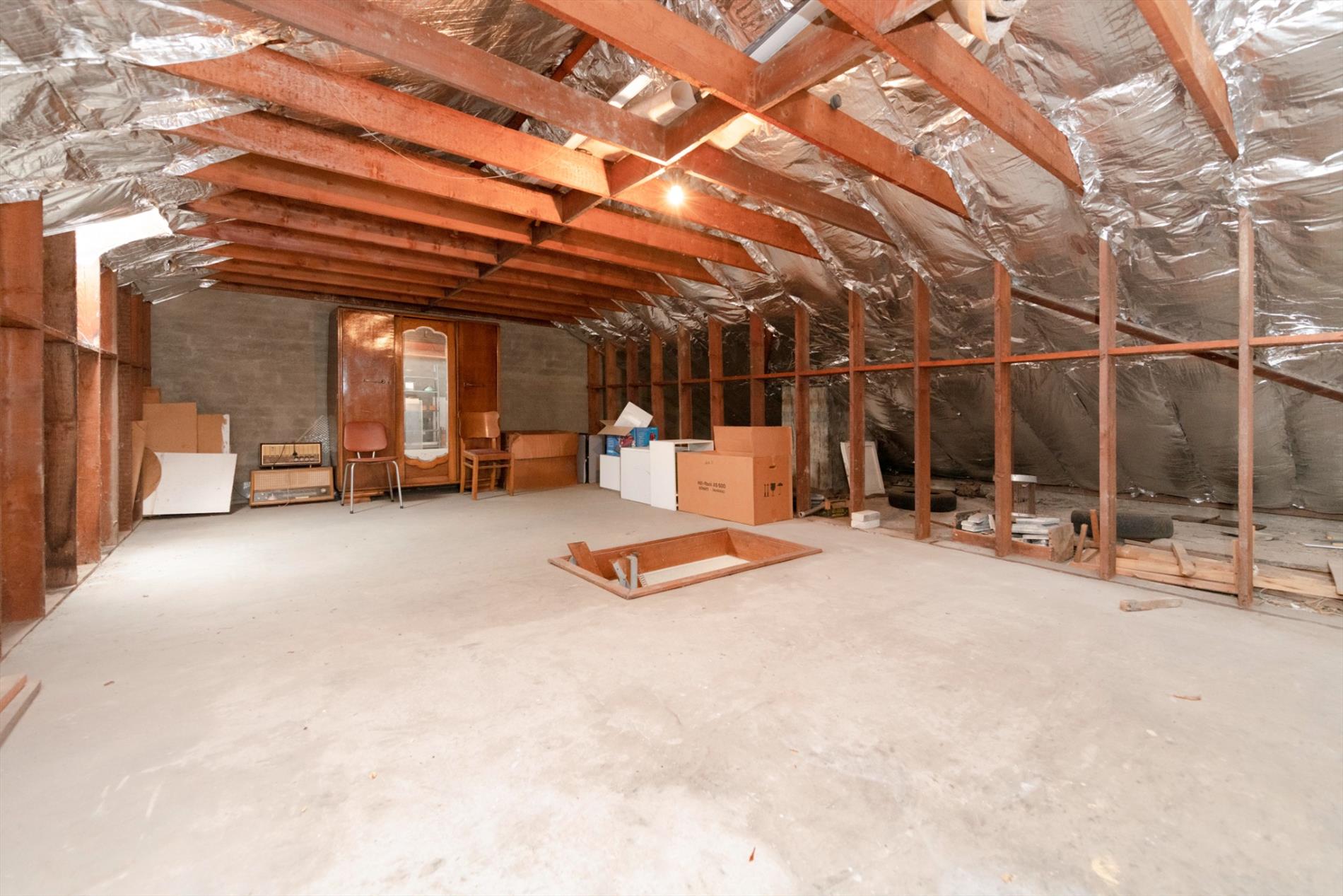 De zolder is toegankelijk met een vouwtrap. Gezien ook dit verdiep een betonconstructie betreft en tevens over een volle hoogte beschikt kan deze tevens ingericht worden tot extra kamers.