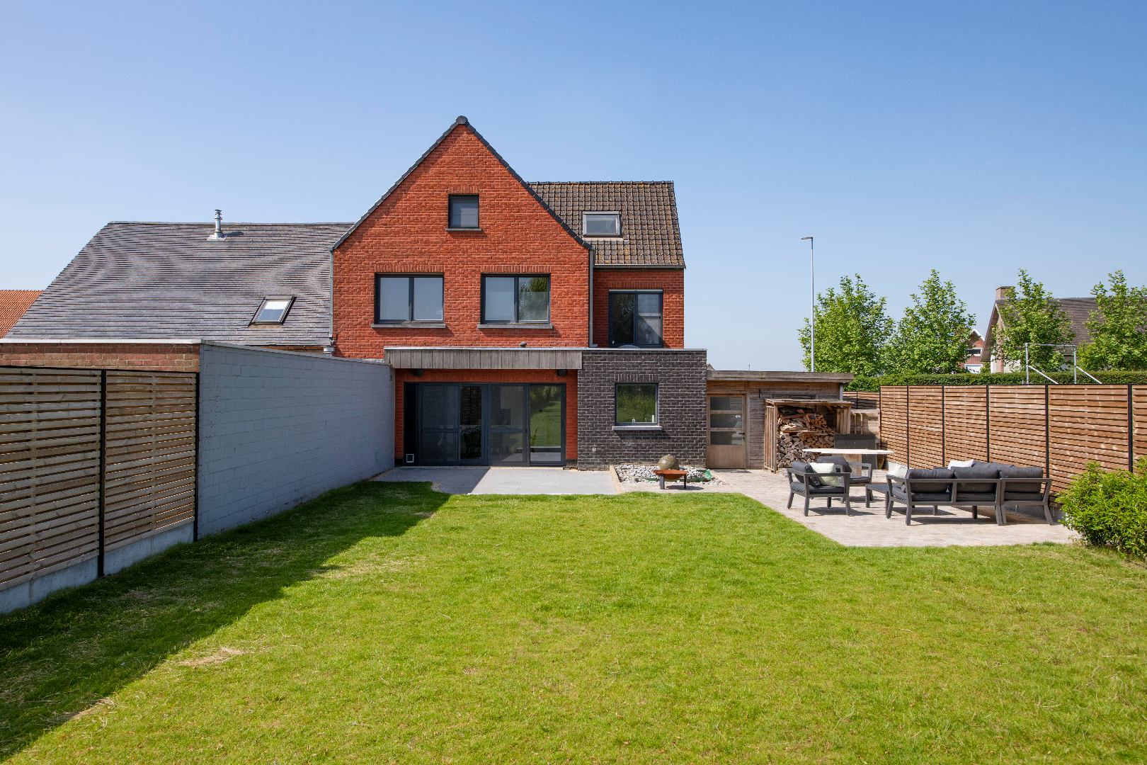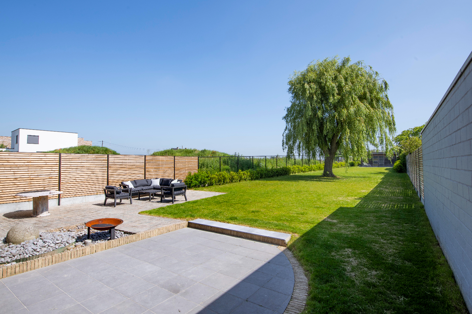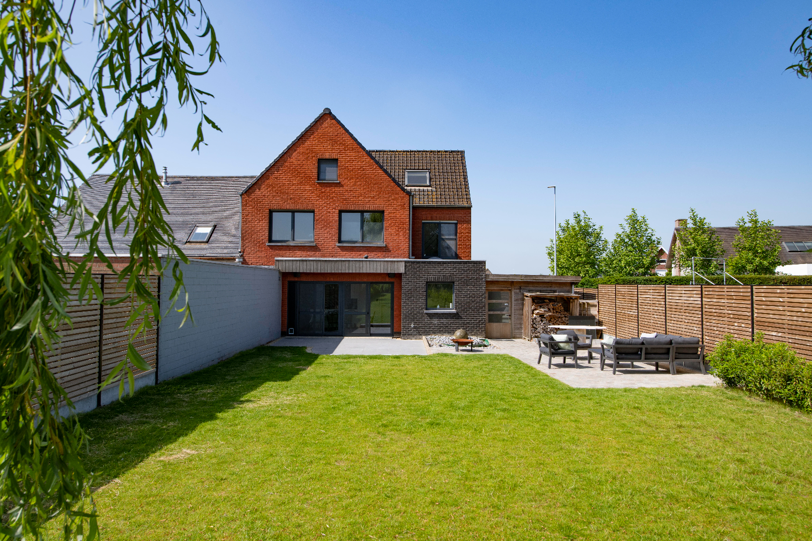 De eigendom omvat aan de linkerkant een ruime carport met aansluitende berging en er is directe toegang tot de tuin. De tuin is volledig opnieuw aangelegd in 2020. Deze is volledig afgesloten (volledig nieuwe afsluiting van 2020) en ingevolge kindvriendelijk.Verder is er achteraan het perceel een ruim tuinhuis met nieuw terras. Zodoende kan U op elk moment van de dag genieten! waar allerhande tuinmateriaal kan geplaatst worden.