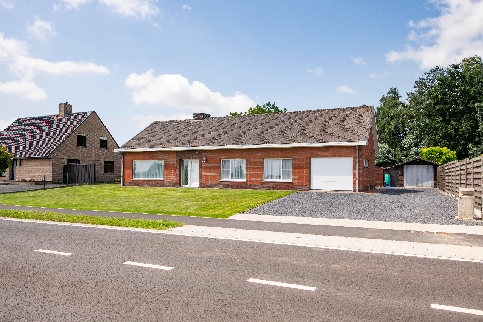 U kan de eigendom betreden via de Egemstraat alsook via de achterliggende straat. U beschikt over een ruime zongerichte tuin rondom de woonst. Tevens beschikt U over 2 garages alsook voldoende parkeergelegenheid voor en rechts naast de woning.