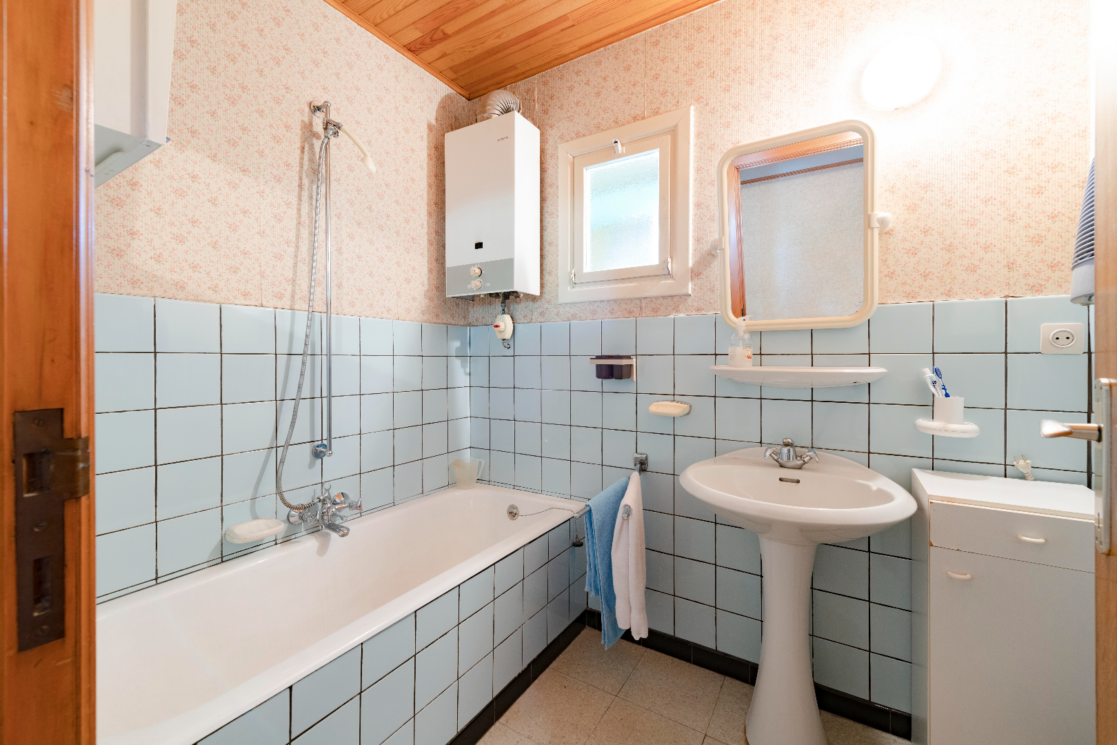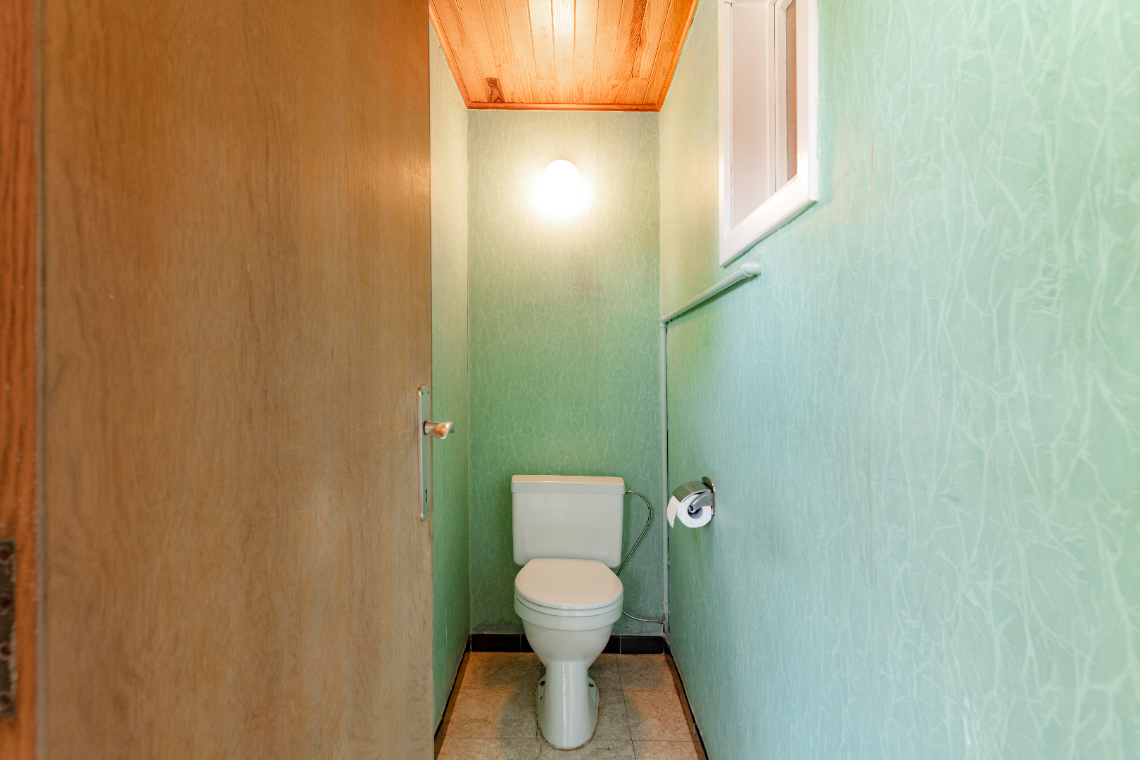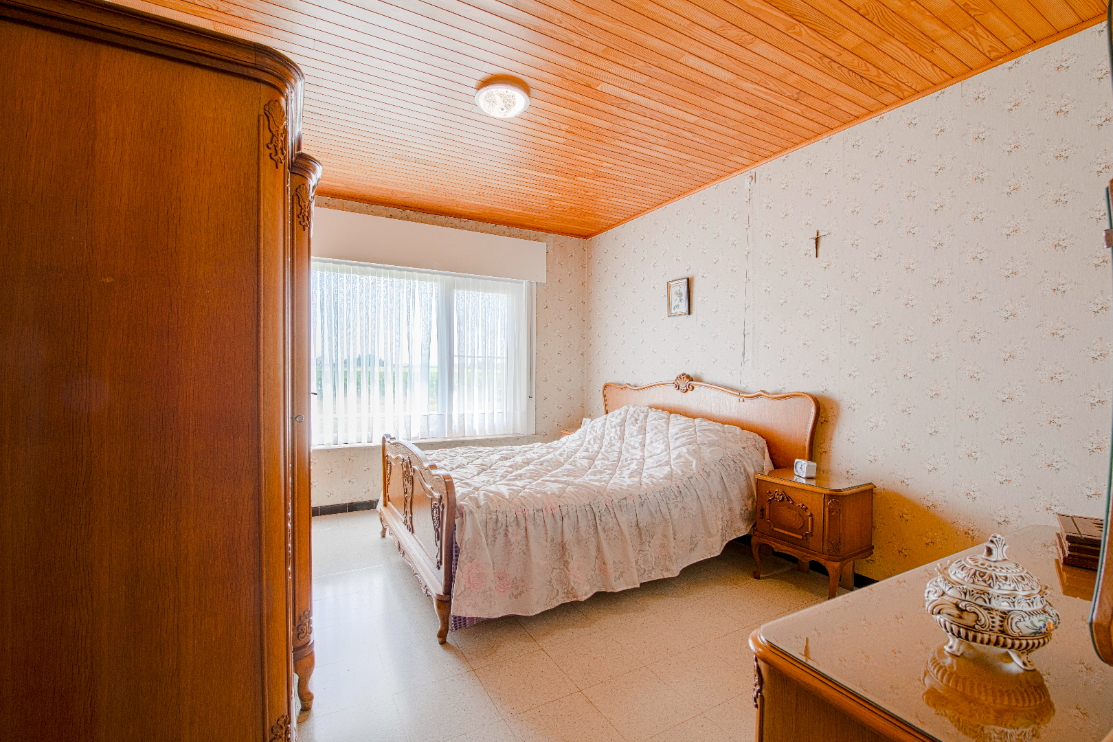 Deze is voorzien van 3 ruime slaapkamers (13,50 m² | 13,50 m² | 12,50 m²), een badkamer (bad en lavabo) en op het einde van de hal toegang tot de grote garage (24 m²) met automatische poort en wasruimte met aansluitingen voor wasmachine en droogkast alsook een uitgietbak.