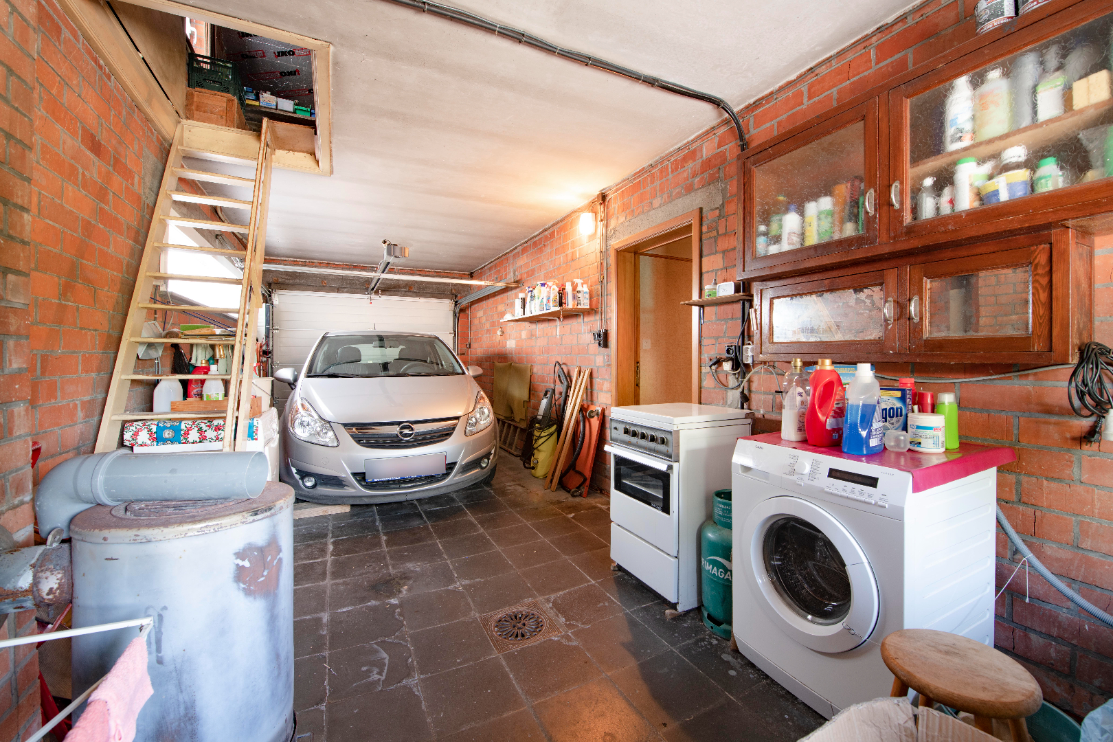 In de garage is er een vaste trap naar de zolderruimte. Dit betreft een grote open ruimte die nog nog believen kan ingericht worden.
