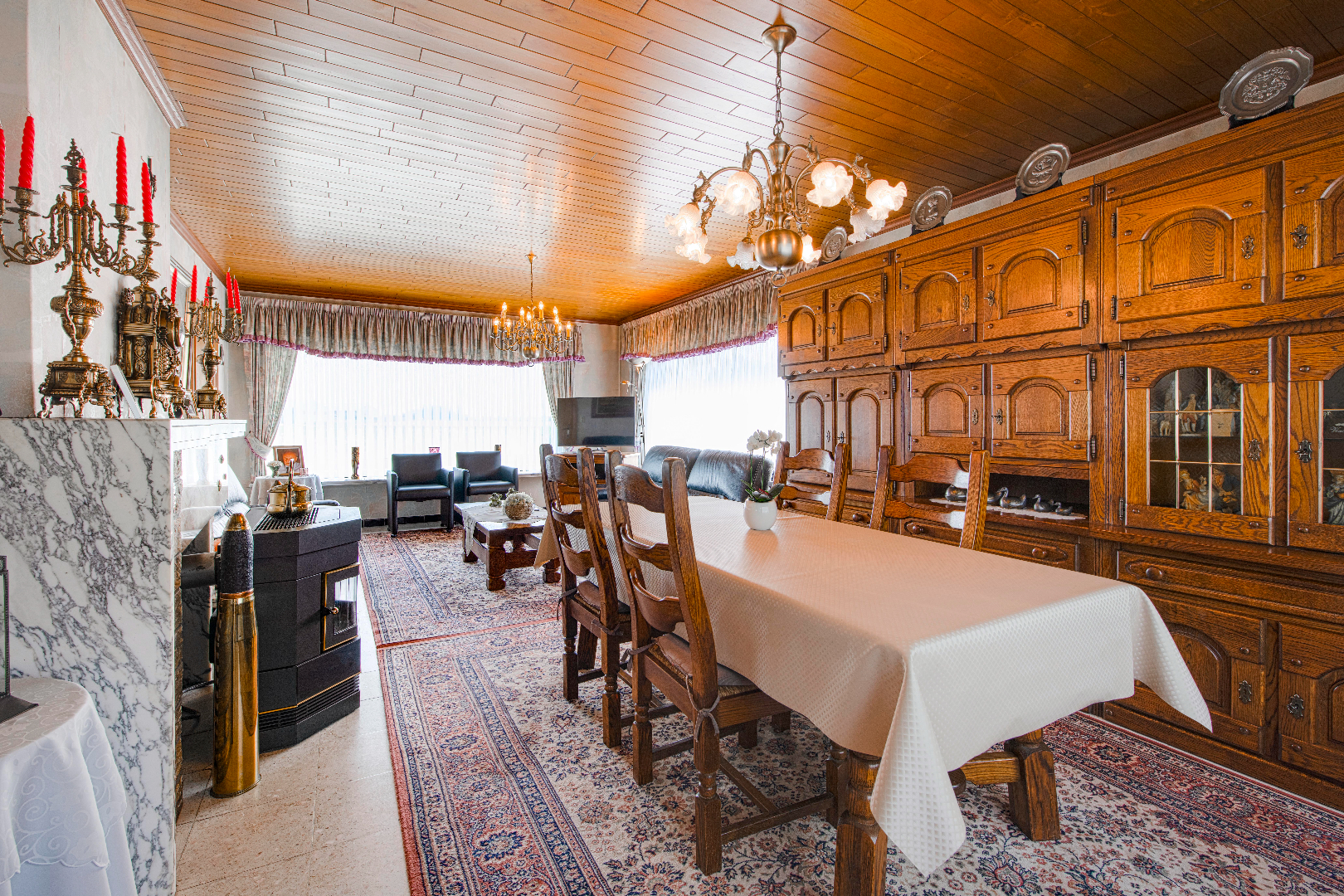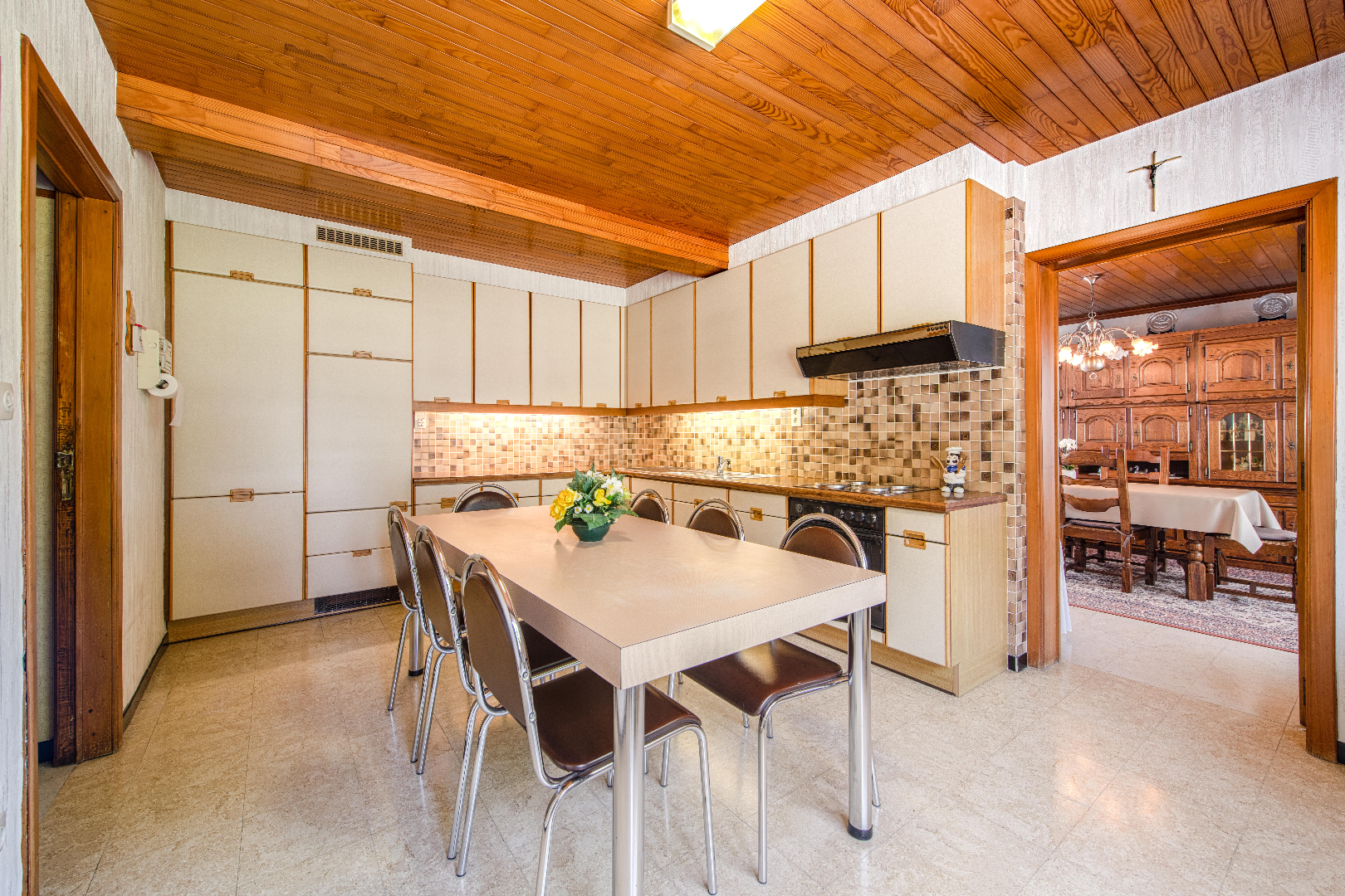U komt de woning binnen via de ruime inkomhal. Verder is er de lichtrijke leefruimte 33,50 m² met zit- en eethoek en voorzien van een gezellige kachel. Vervolgens is er de ruime gesloten keuken (19 m² | kookplaat | dampkap | spoelbak | oven) met aansluitend toegang tot de nachthal.