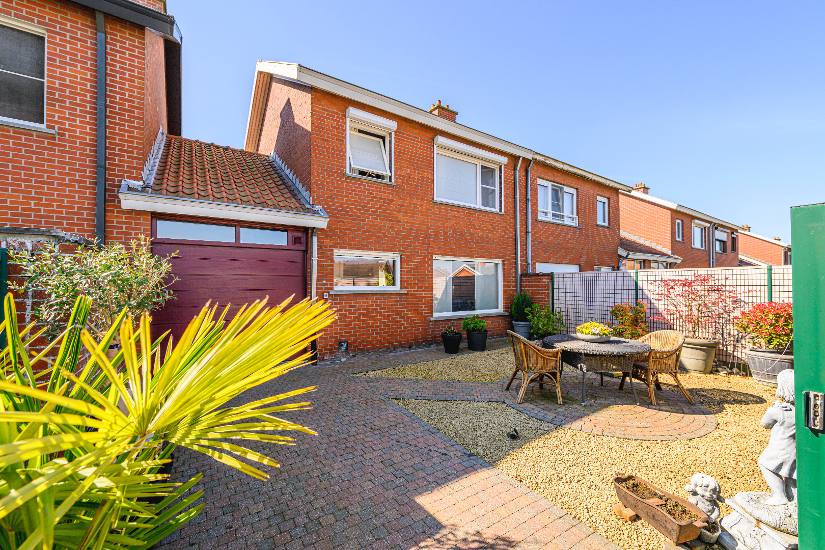 De woning is voorzien van een volledig afgesloten achtertuin (45 m²) en ingevolge kindvriendelijk met een praktische toegang achterom en voldoende parkeergelegenheid.
