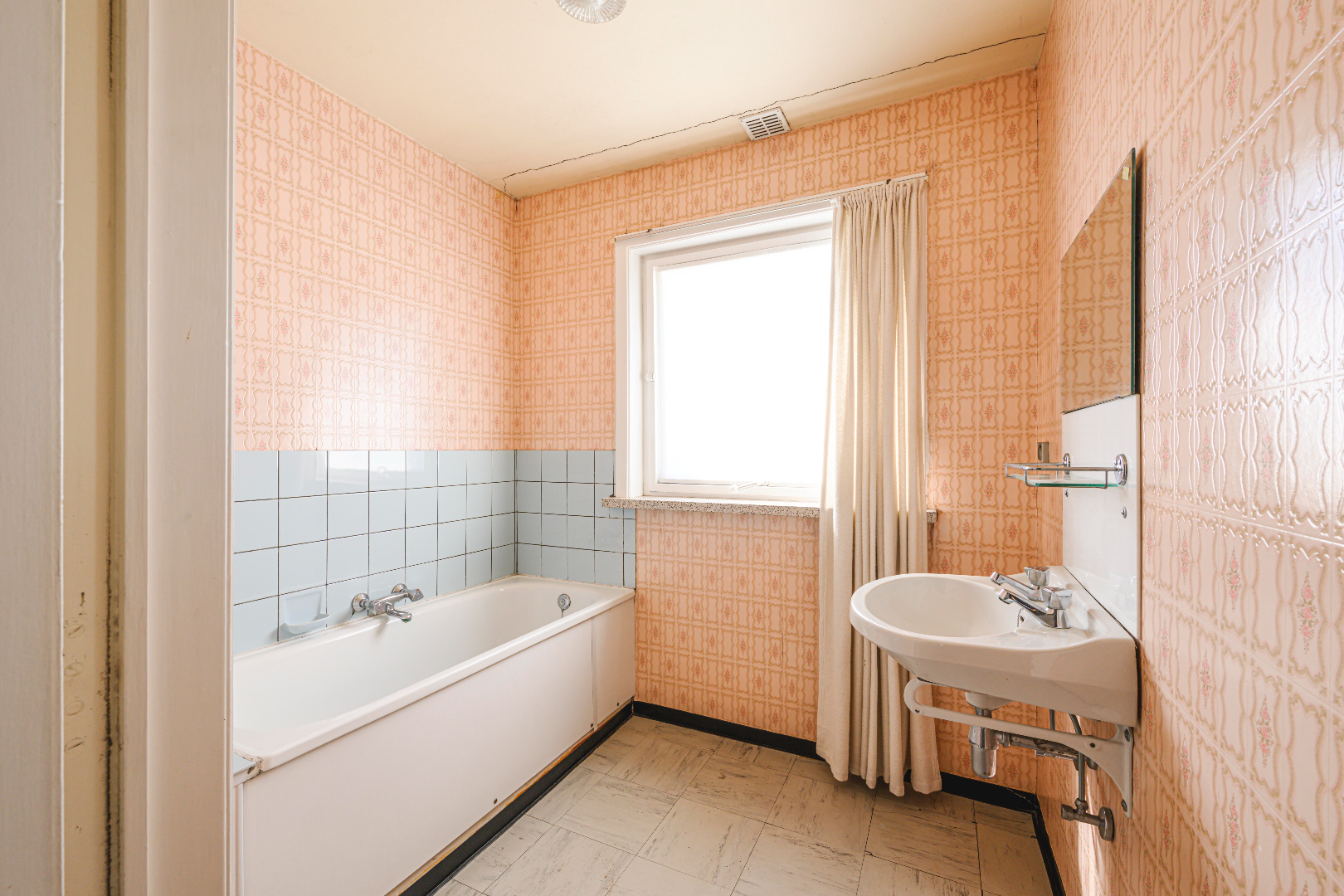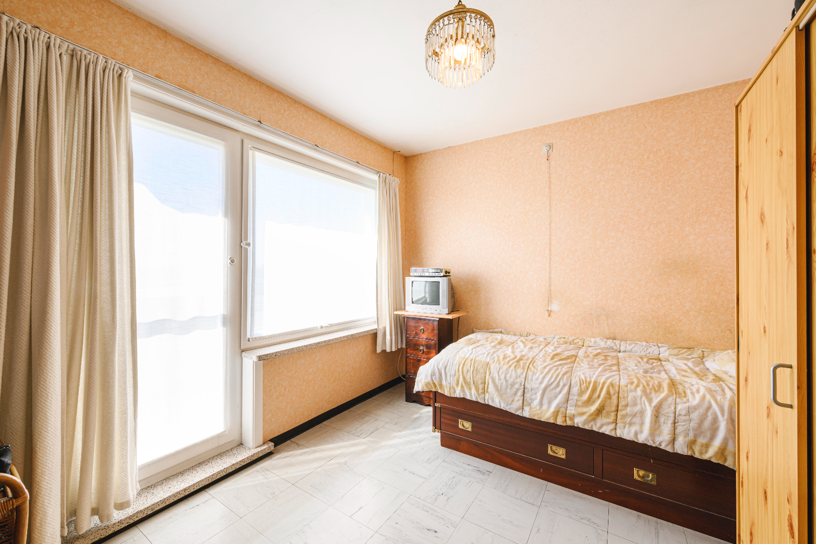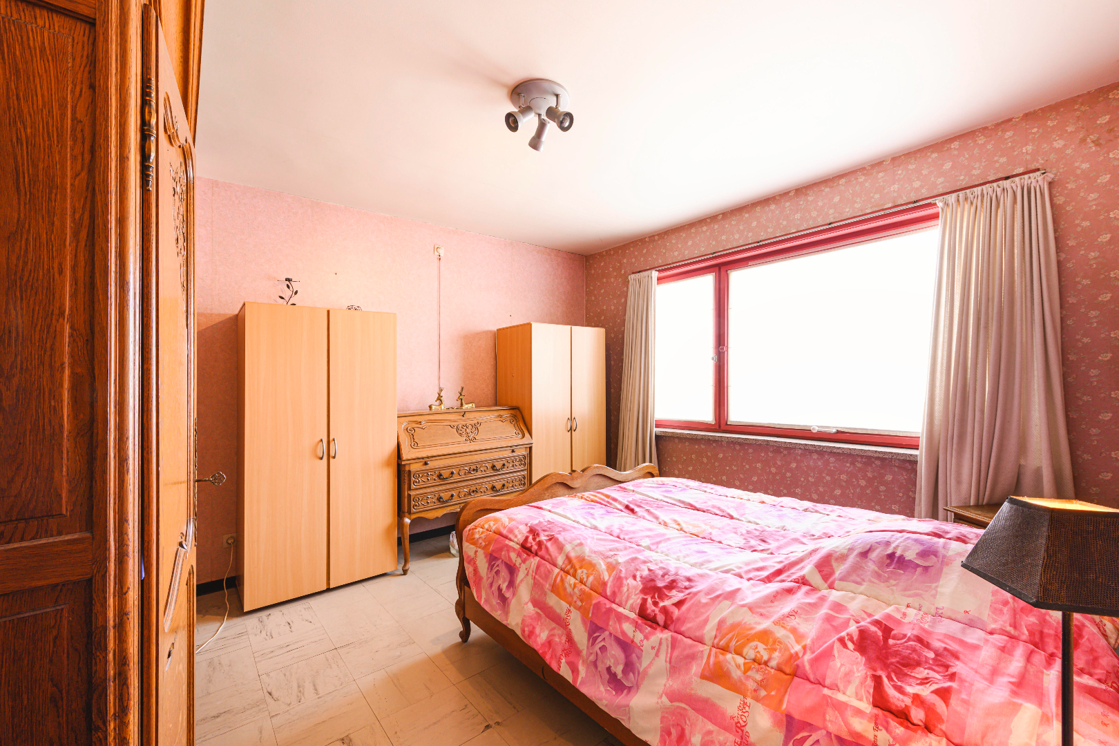 Het verdiep omvat 3 slaapkamers (9 m² | 5 m² | 14 m²) en als laatste is er de te renoveren badkamer (lavabo | ligbad). Tot slot is er de ruime zolder (56 m²), toegankelijk met een vouwtrap.