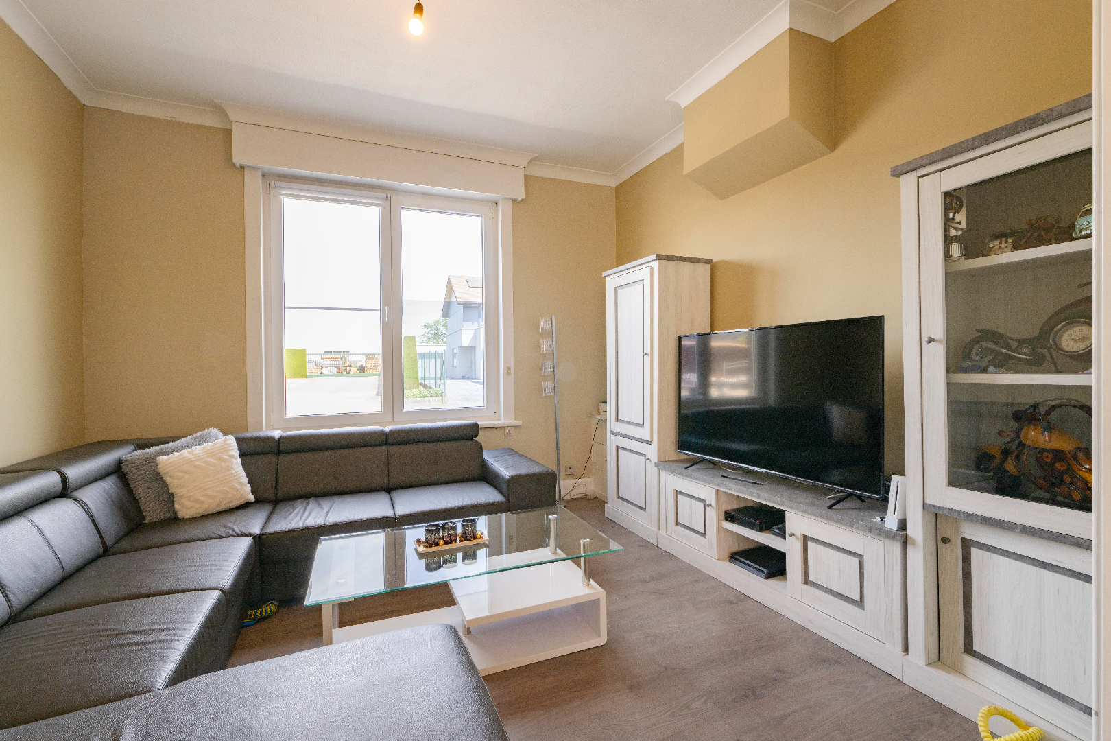 U komt de woning binnen via de inkomhal met aansluitend de leefruimte met zit- en eethoek en gezellige gaskachel. Verder is er de gesloten keuken (kookplaat | dampkap | spoelbak | frigo) aansluitend is er de ingerichte badkamer (toilet | lavabo met meubel | bad/douche) met aansluiting voor wasmachine, droogkast.