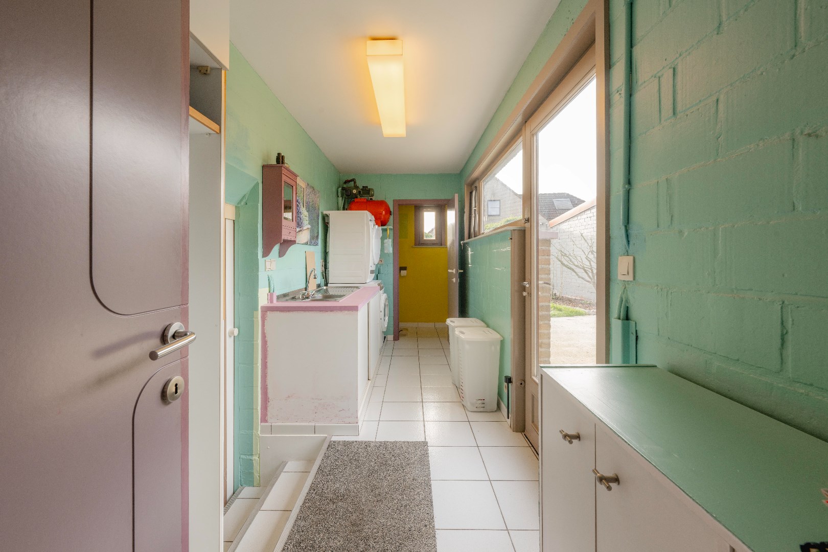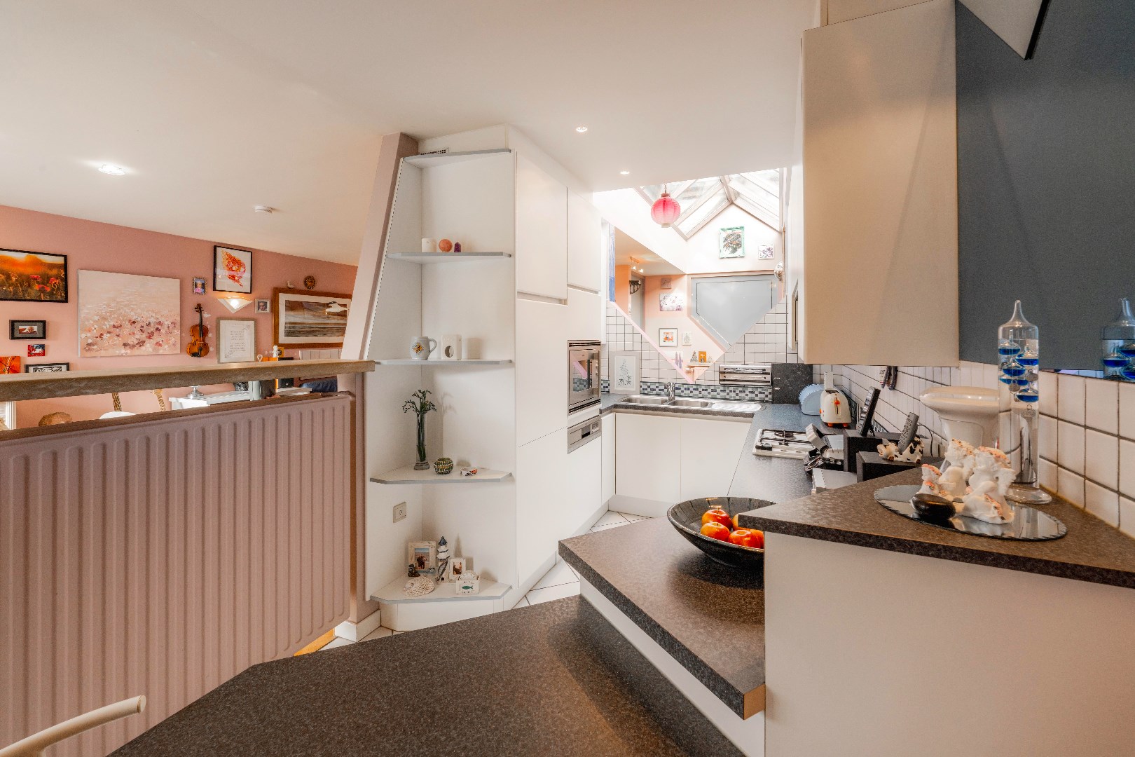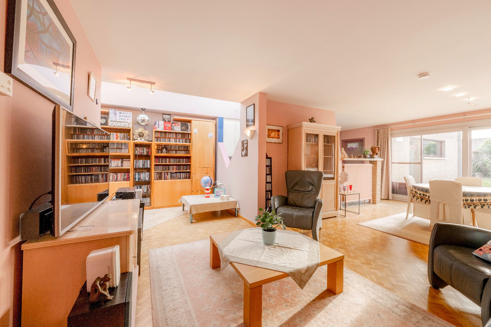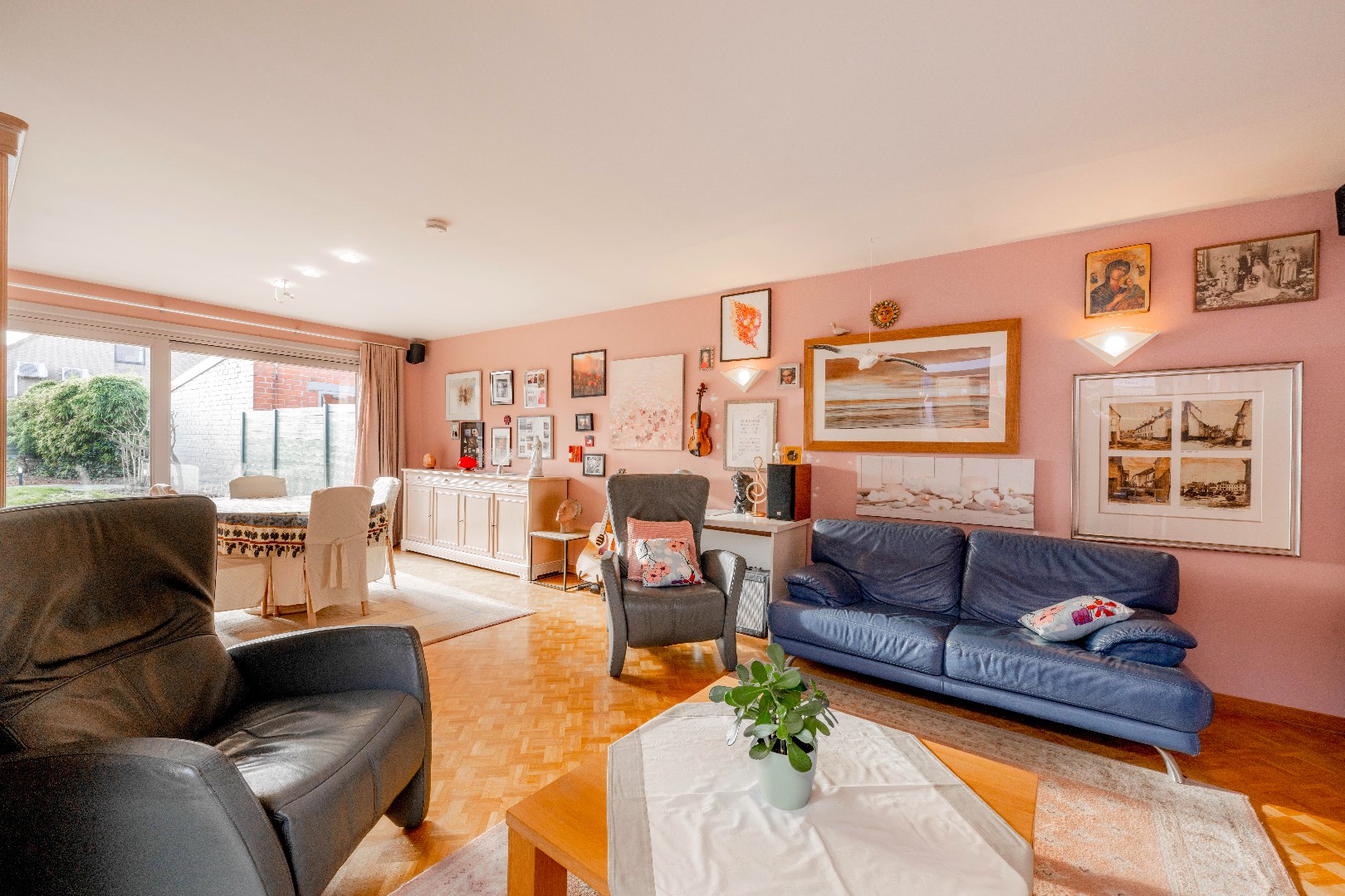 Terug in de hal is er toegang tot de lichtrijke leefruimte (35 m²) met zit- een eetplaats en aansluitend de ingerichte keuken 12 m² (gasvuur | dampkap | dubbele spoelbak | combi-microgolfoven | vaatwasser). Handig is de aansluitende wasplaats met extra toilet.
