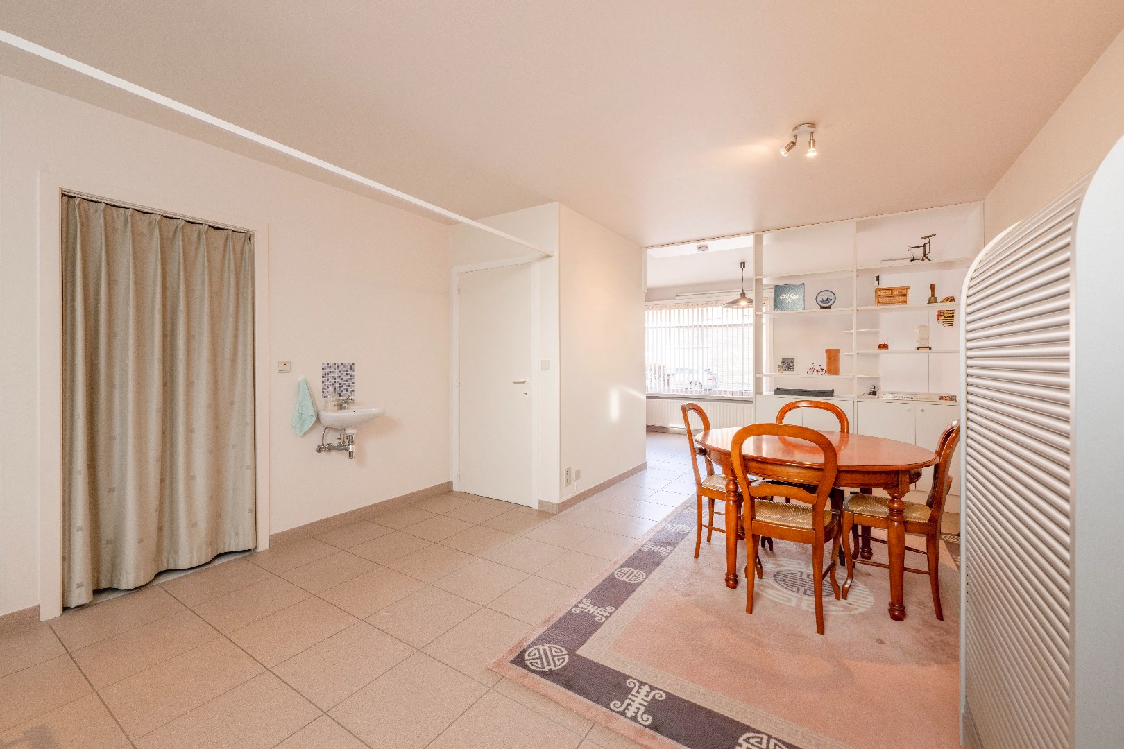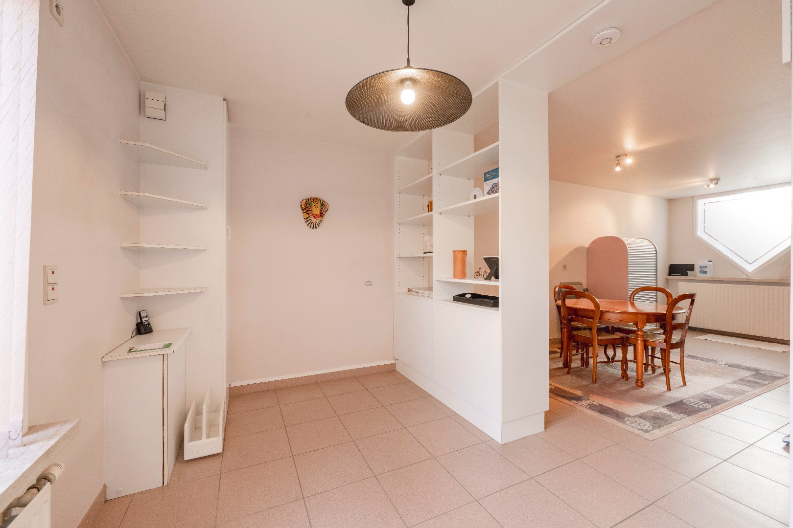 U komt binnen via de inkomhal met apart gastentoilet. U beschikt over een polyvalente ruimte van maar liefst 33 m². U kan deze inrichten naar eigen believen als praktijkruimte, burelen of gelijkvloerse slaapkamer.