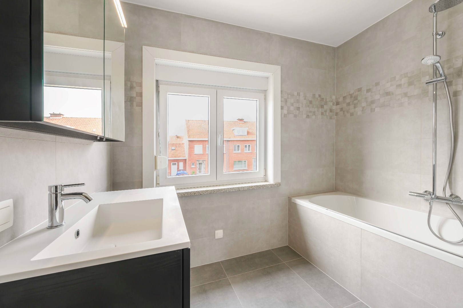 Het eerste verdiep omvat 3 slaapkamers (16,50 m² | 12,50 m² | 6,50 m²) alsook een ingerichte badkamer (lavabo met meubel | ligbad met douchecombinatie)