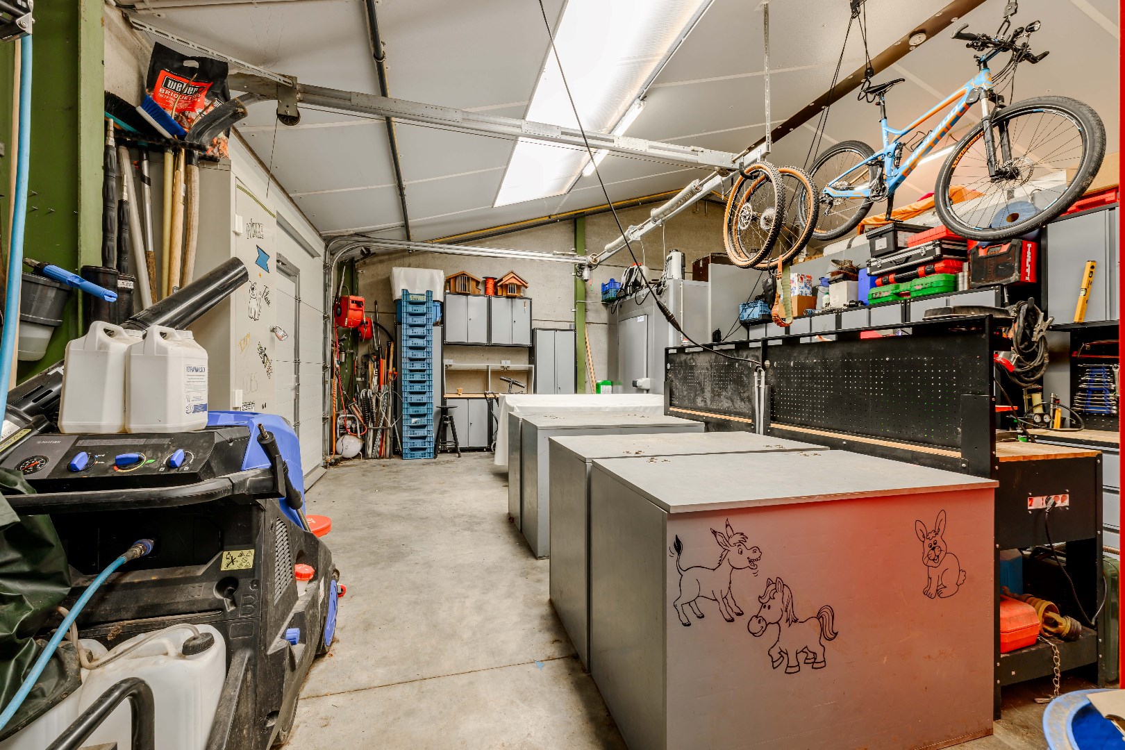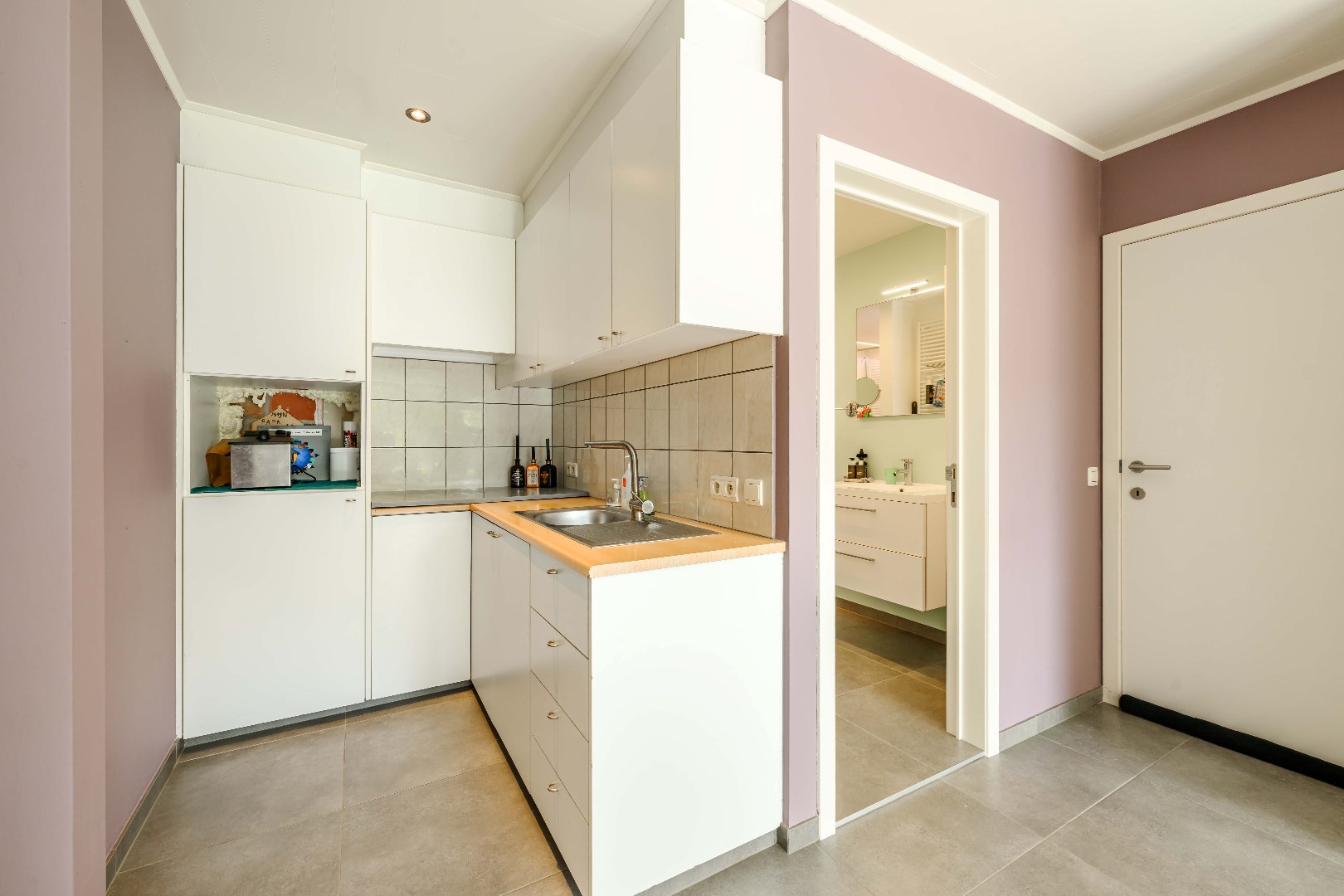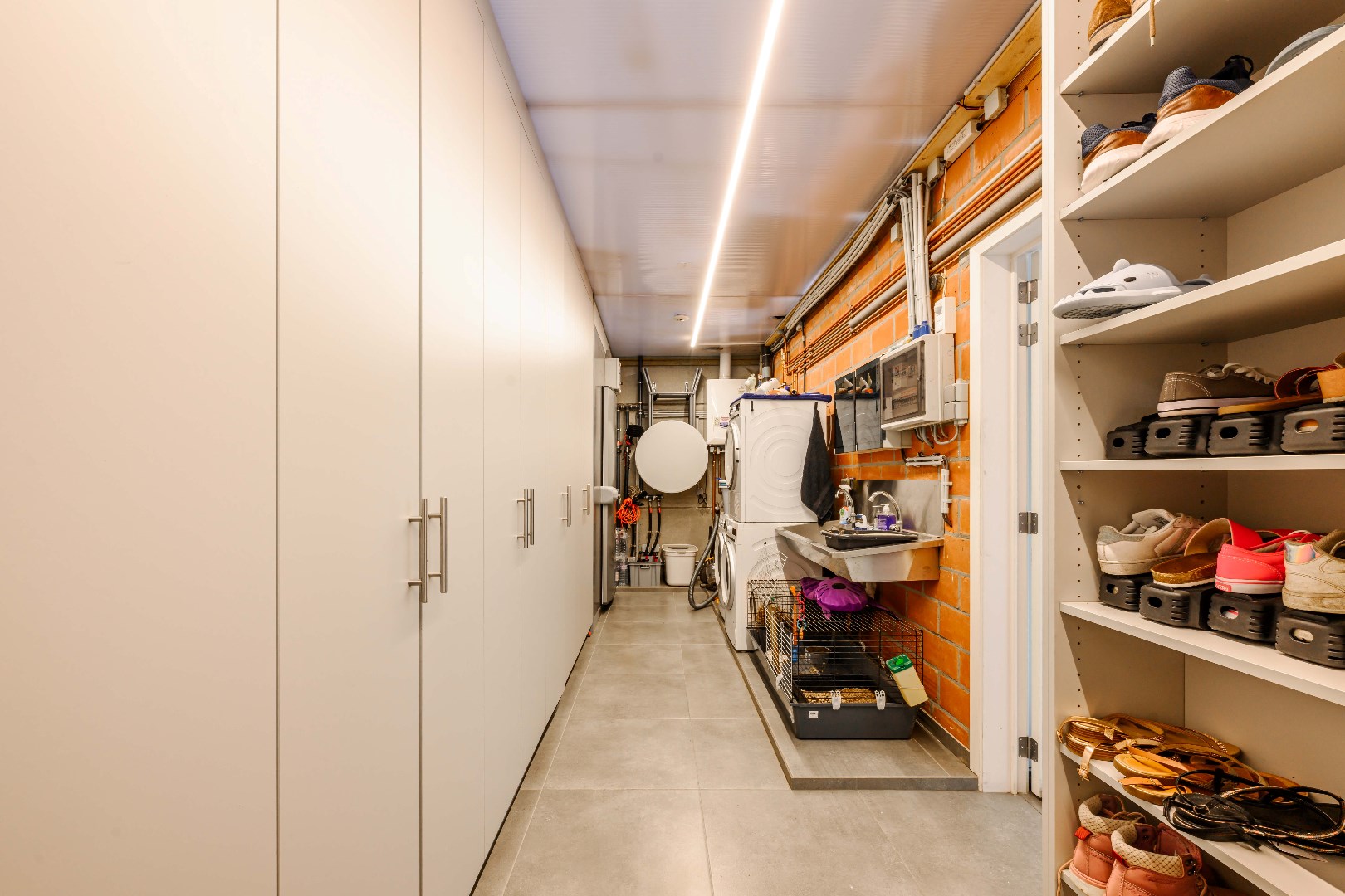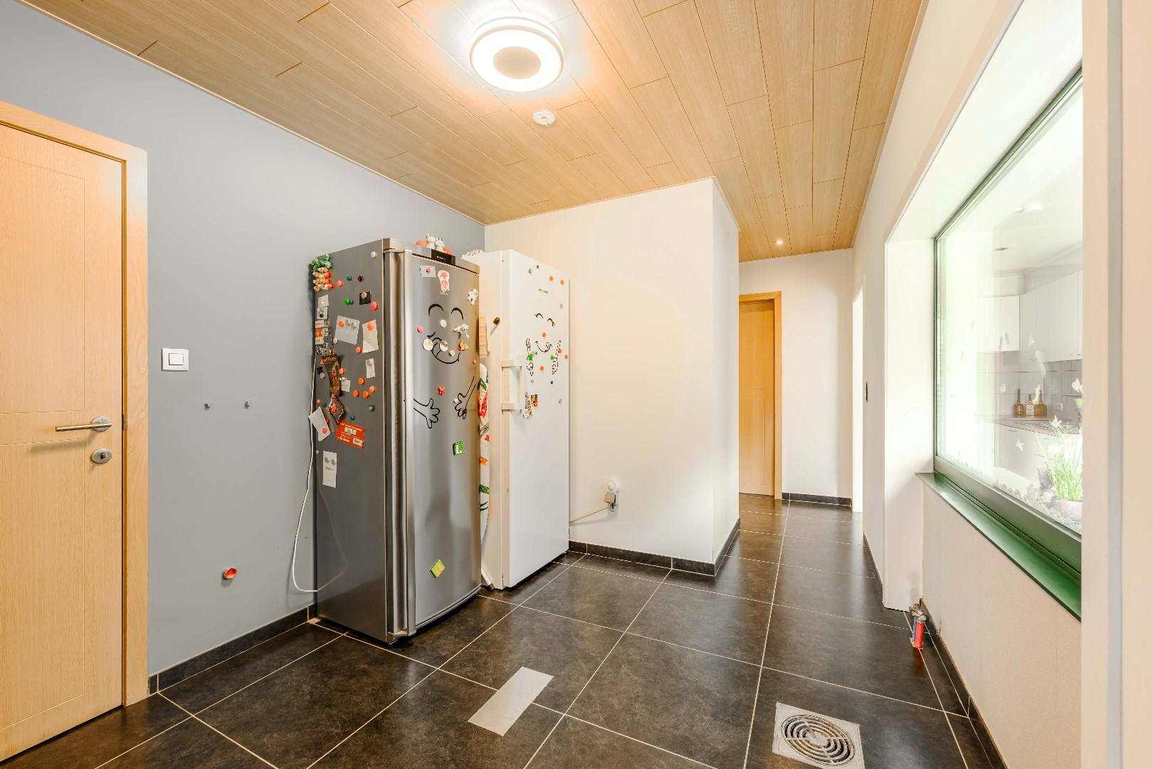 Direct naast de keuken is er toegang tot de droge kelder en de berging/wasplaats.