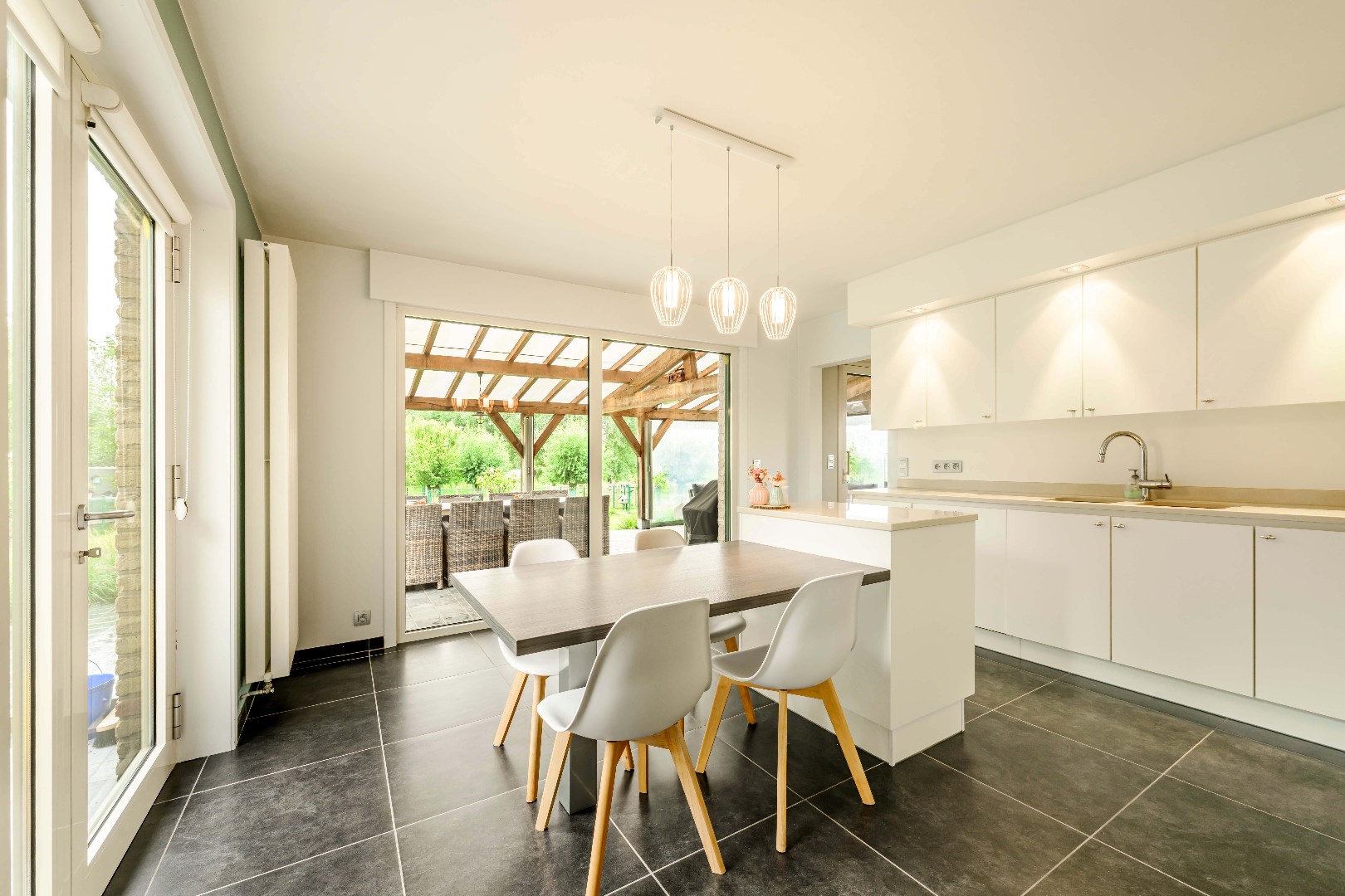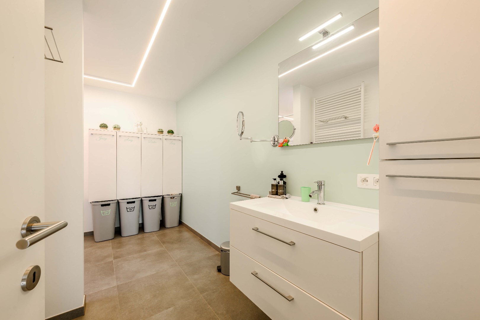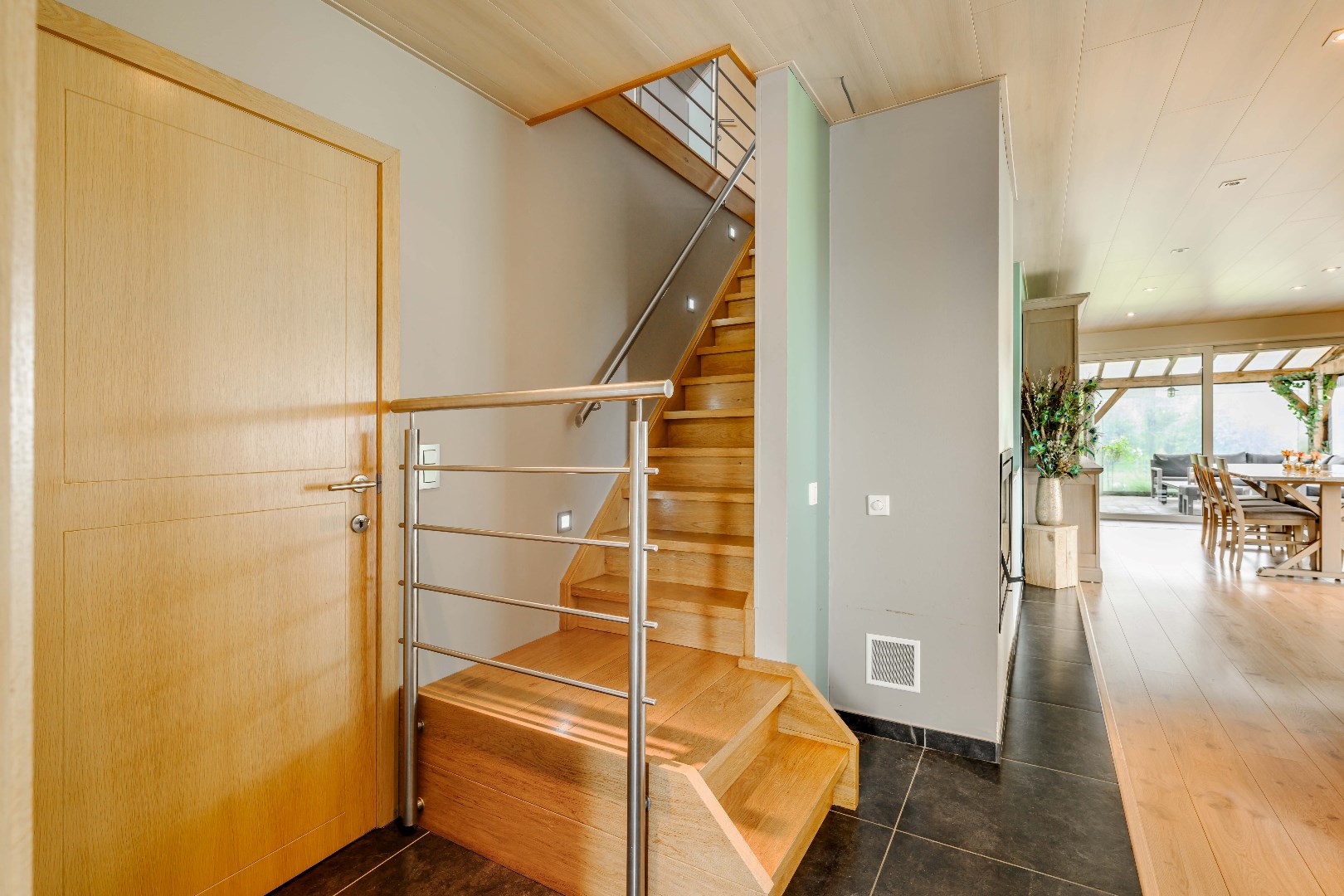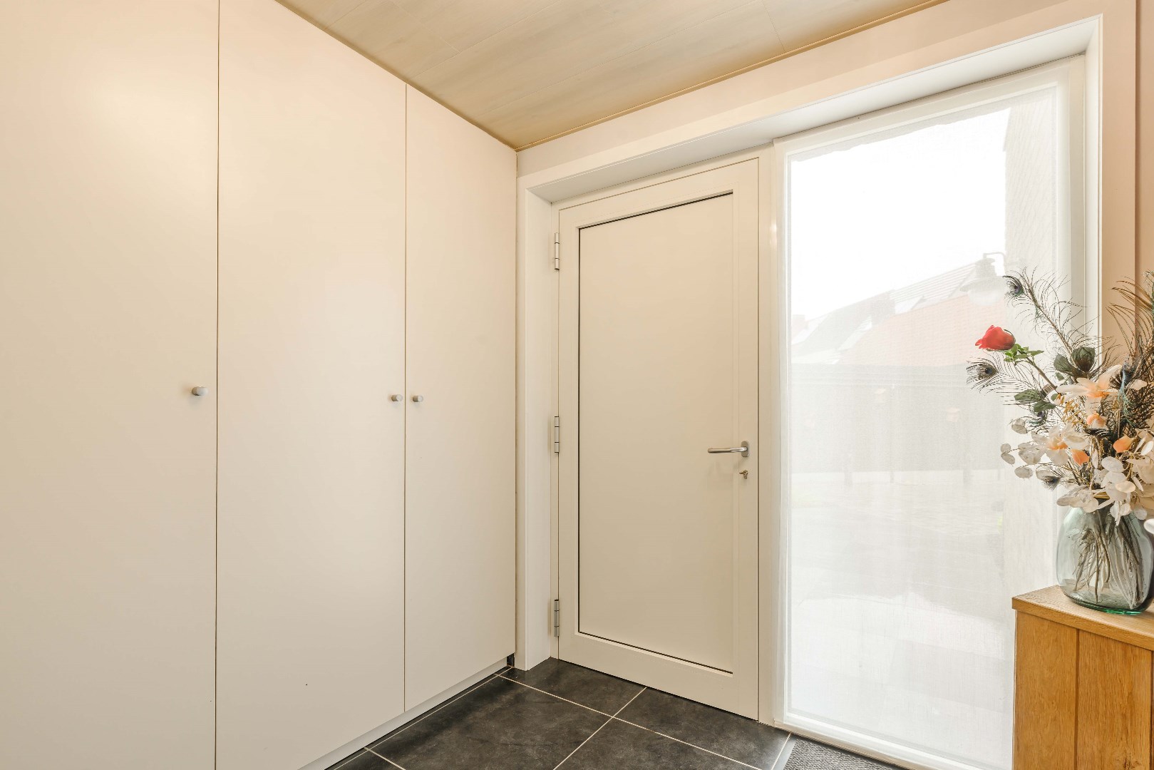 Direct naast de keuken is er toegang tot de droge kelder en de berging/wasplaats.