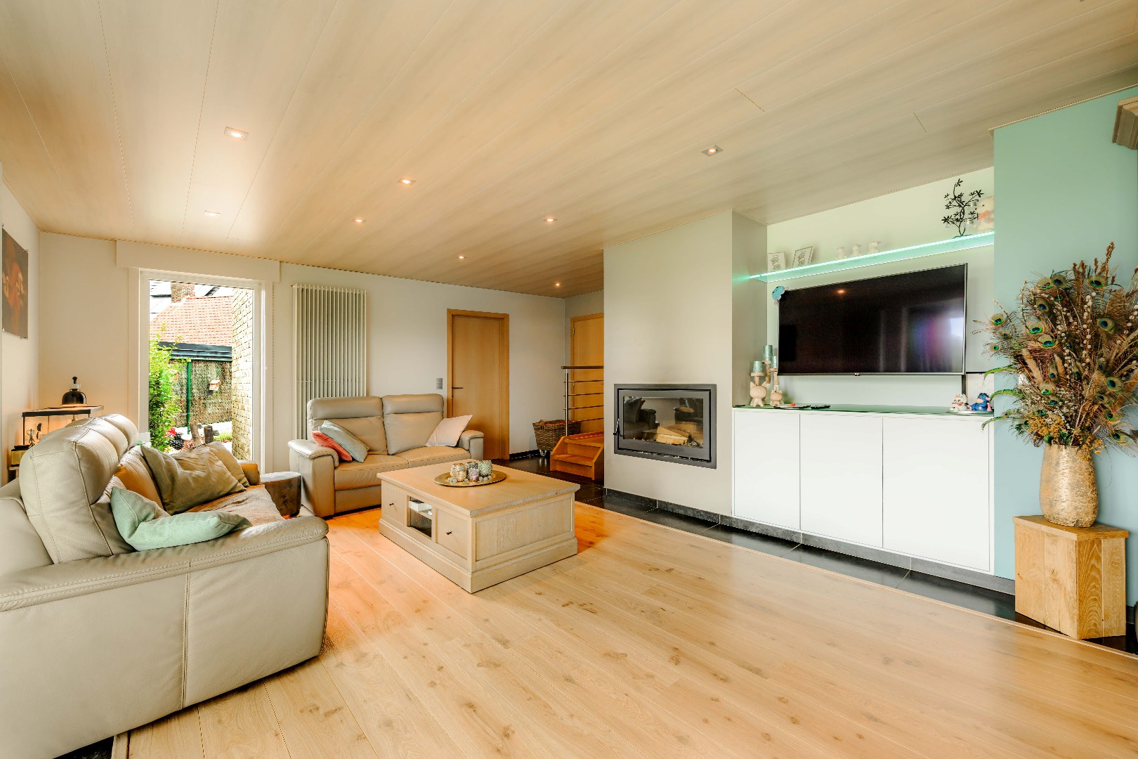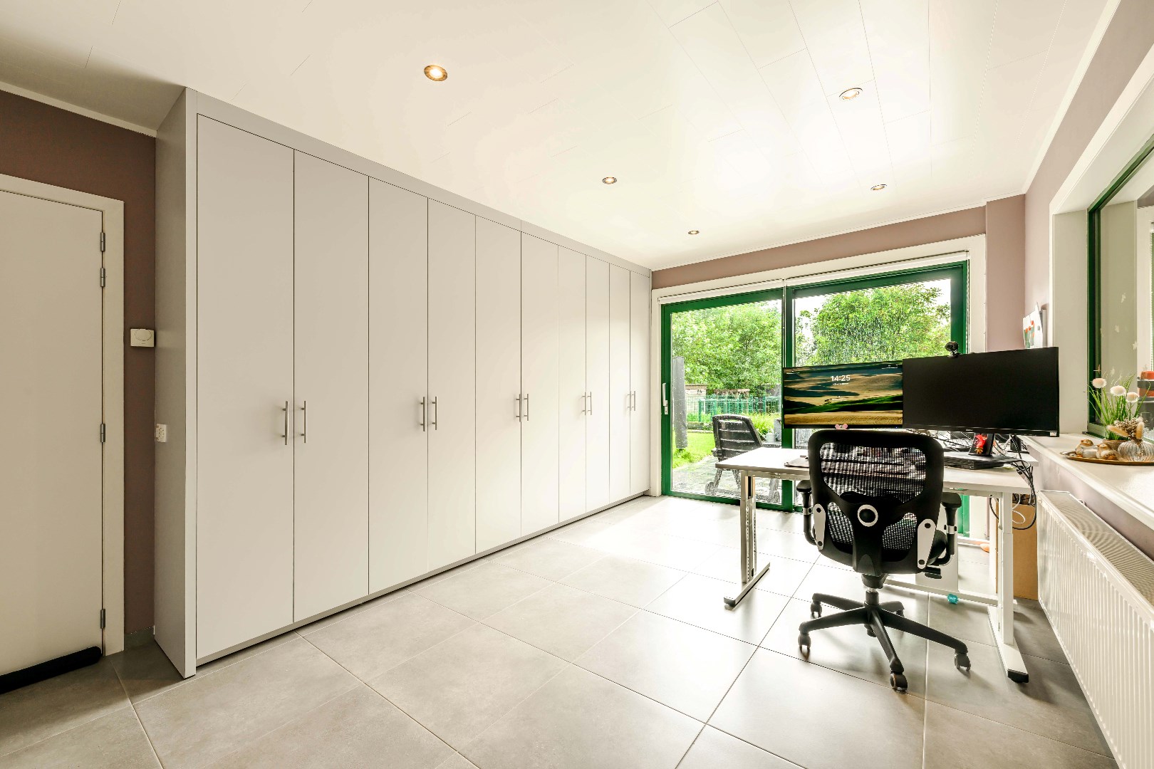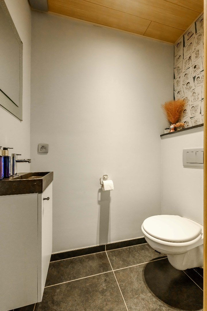 Tevens op het gelijkvloers is er nog een ruime slaapkamer (met ingemaakte kastenwand), een badkamer (inloopdouche | lavabo met meubel) alsook een bijkeuken en volledig ingericht bureel!