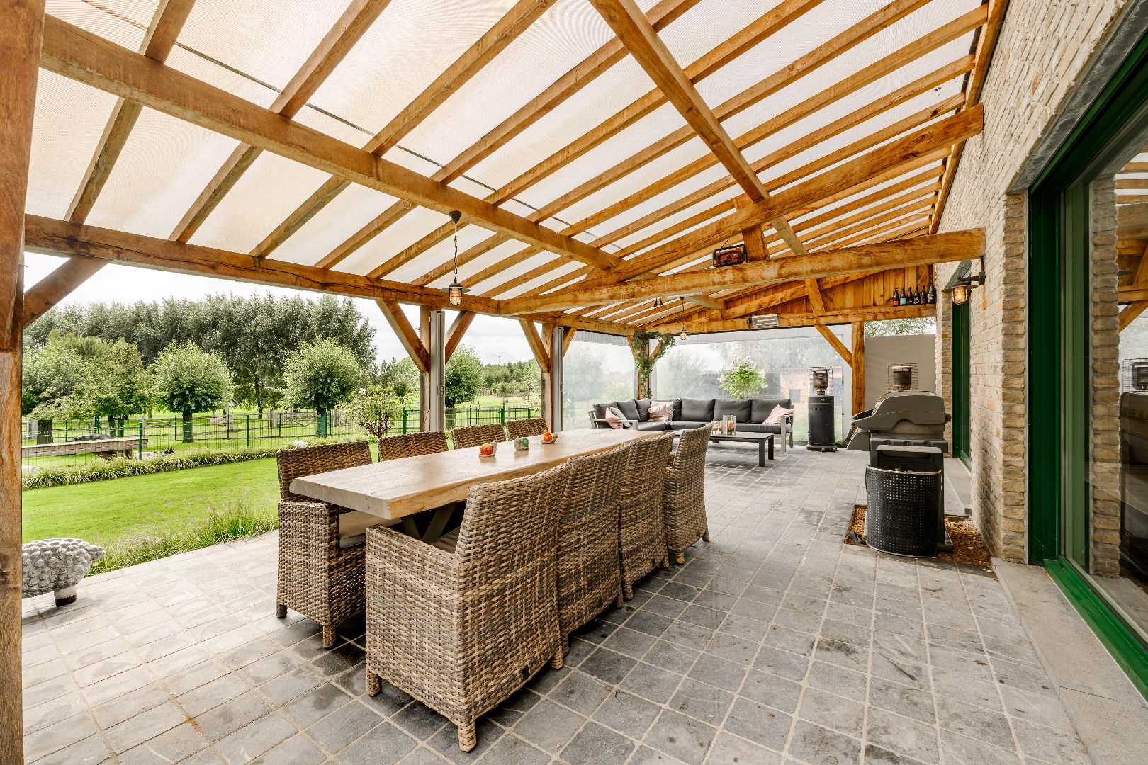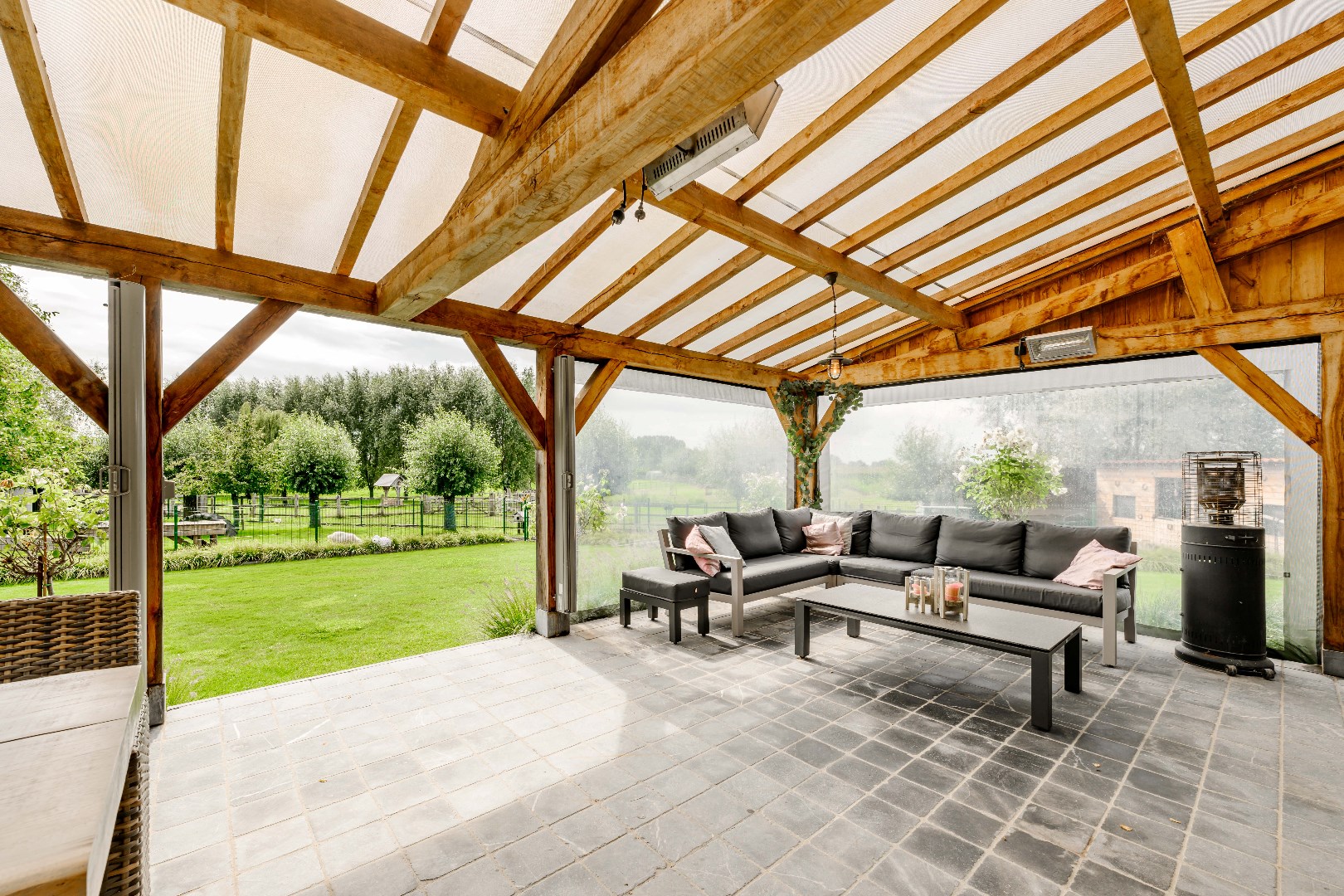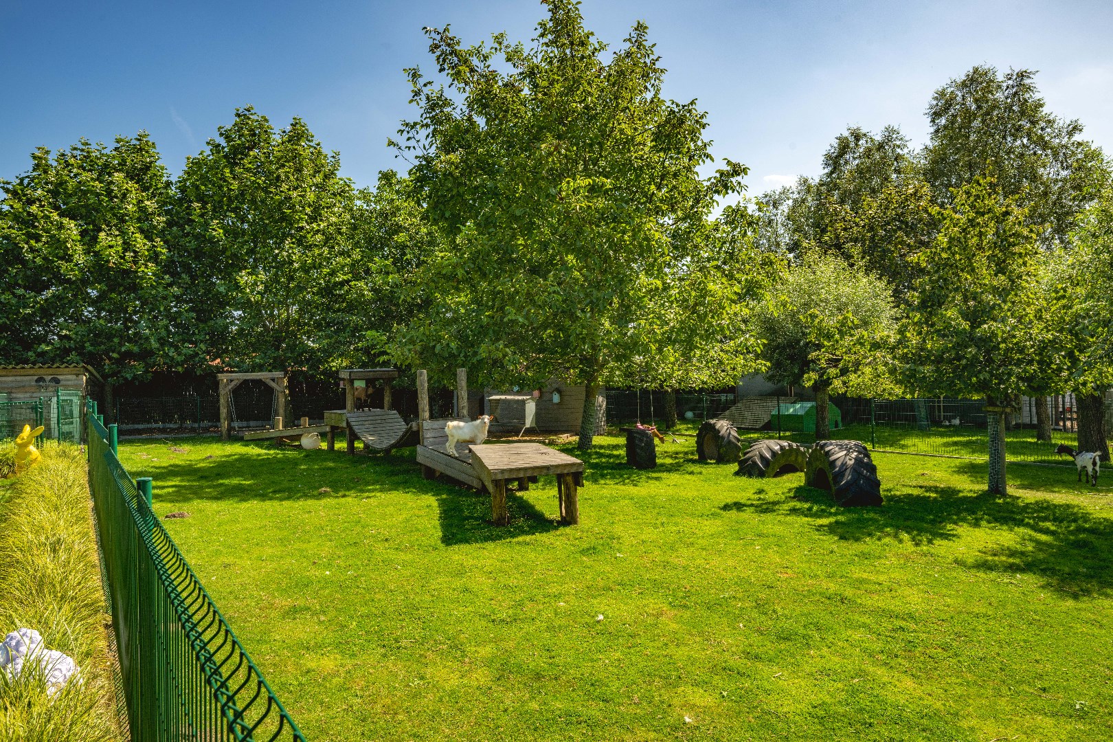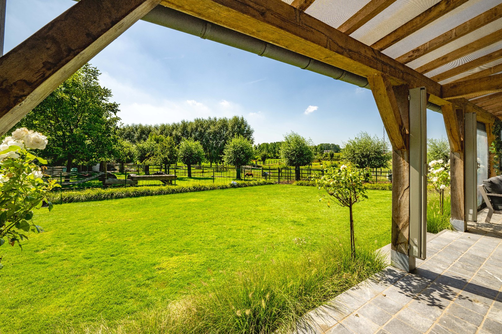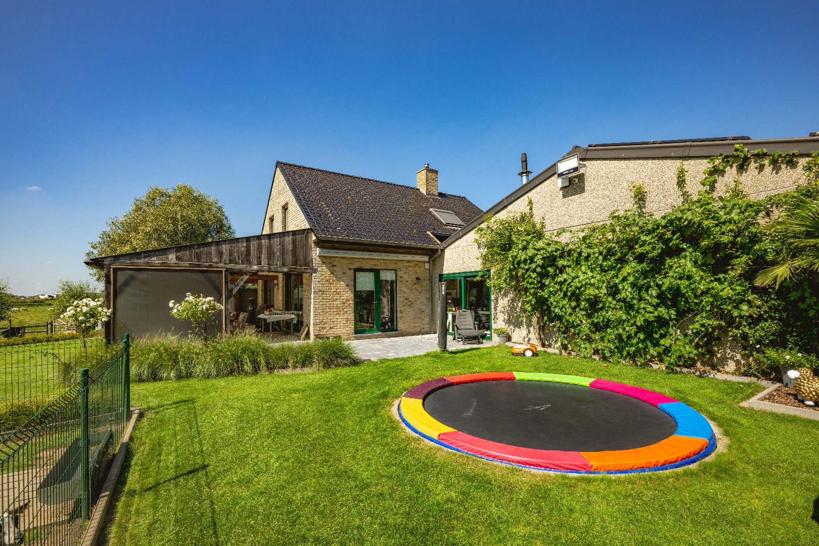 De achterliggende weiden zijn allen voorzien van een kwalitatieve afsluiting, elektriciteit en water. Over de eigendom zijn er diverse schuilstallingen voorzien alsook een serre en bloemenweide. Deze zijn via een afzonderlijke oprit ook bereikbaar!