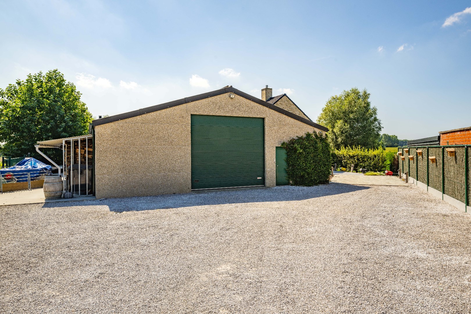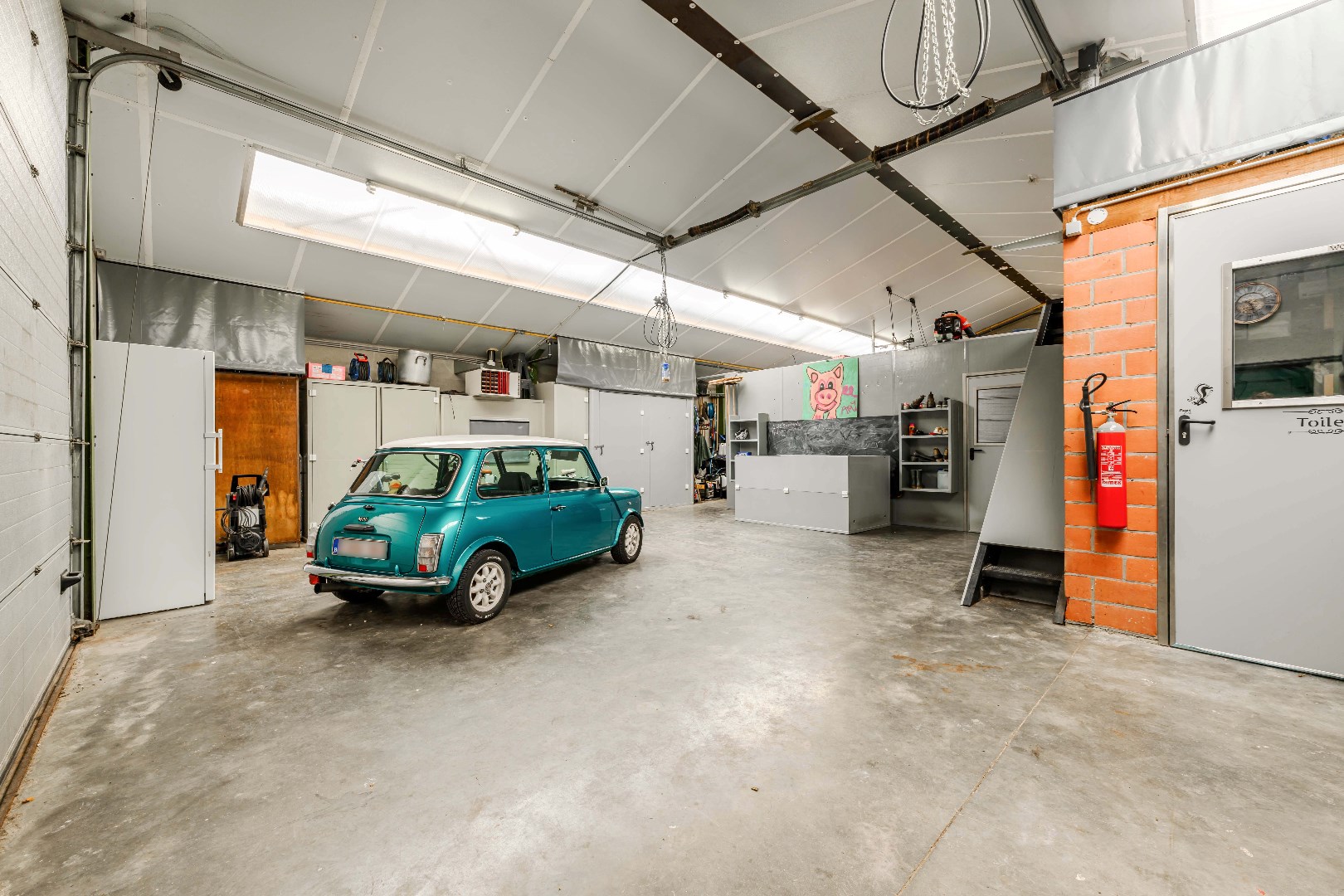 De geïsoleerde LOODS van 192 m² (BJ 2001) beschikt over 2 toegangspoorten, een apart toilet en een koelcel.
