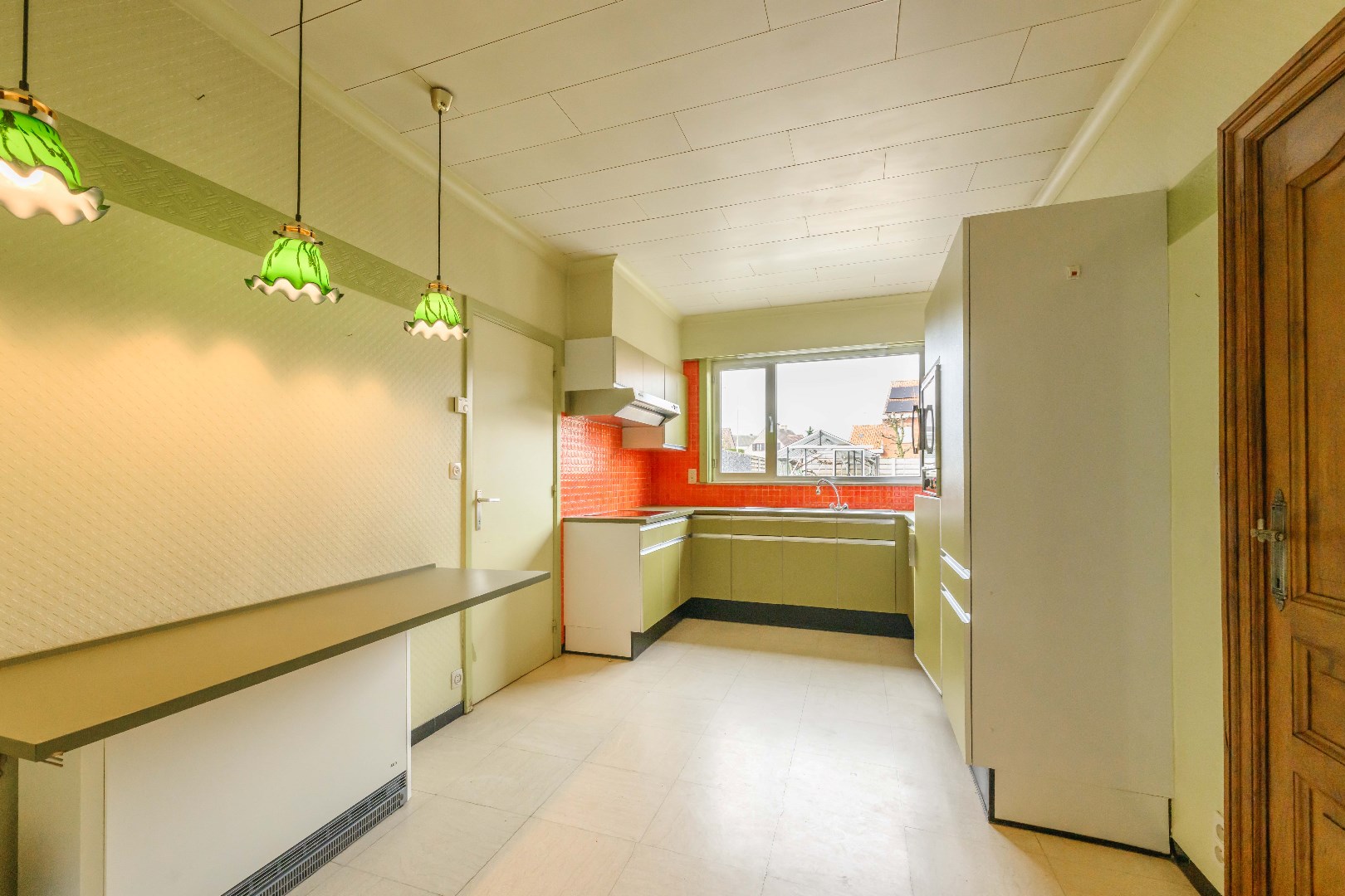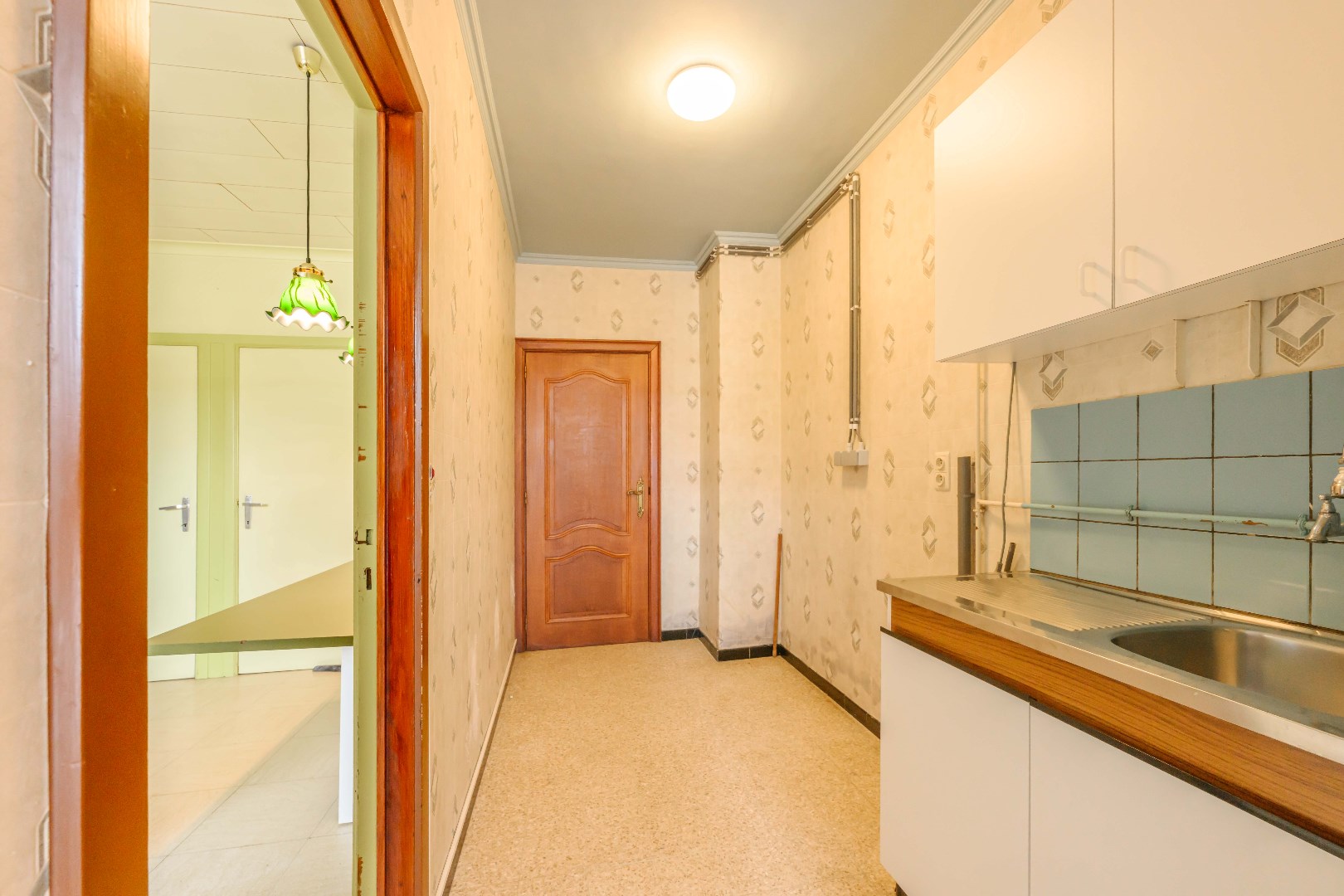 Verder is er de ingerichte keuken 14,50 m² (kookplaat | dampkap | spoelbak | frigo | oven) met toegang tot de kelder.
