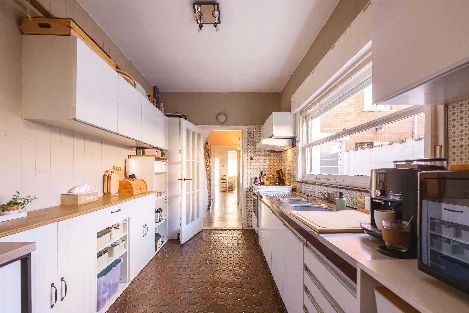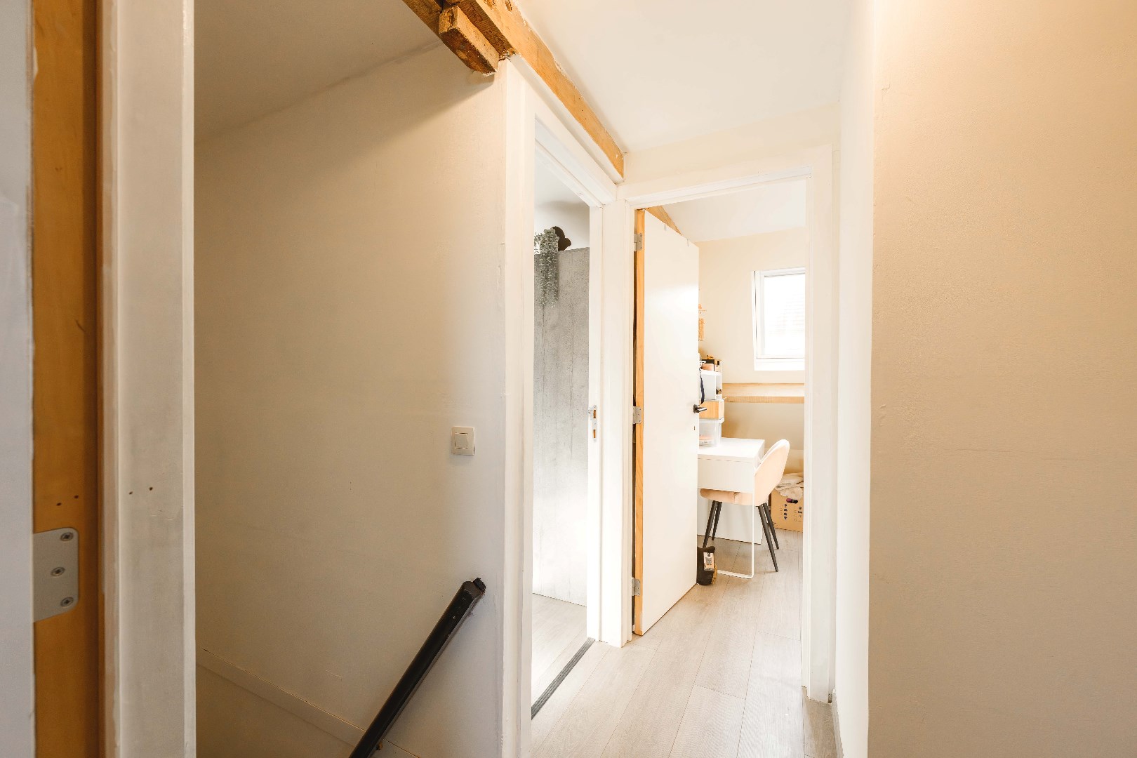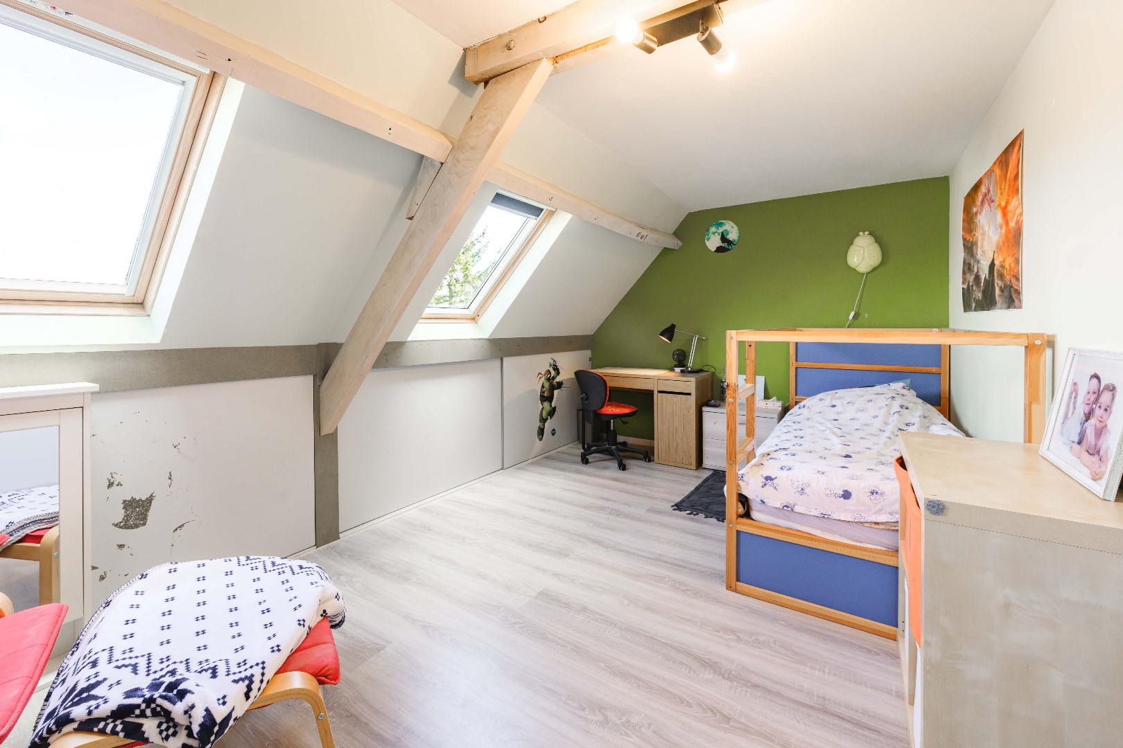 Via de achterinkom is er toegang tot de keuken (dient nog gerenoveerd te worden) met aansluitende wasplaats/berging en apart gastentoilet. Handig is de ruime en droge kelder ter stockage. Via de deur links van de woning is er een directe toegang tot de tuin! Zeer praktisch voor fietsen, tuinafval enz... Het verdiep omvat een volledig nieuwe badkamer (2025 | inloopdouche met thermostatische kraan, dubbele lavabo met meubel/spiegelkasten en toilet). Tevens op dit verdiep 2 zeer ruime slaapkamers (telkens twee persoons). Het tweede verdiep omvat maar liefst 3 kinderkamers. In totaal beschikt U dus over 5 slaapkamer. Verder is er nog de zolder toegankelijk via vouwtrap voor stockage. Kortom een ZEER verrassende ruime woonst!