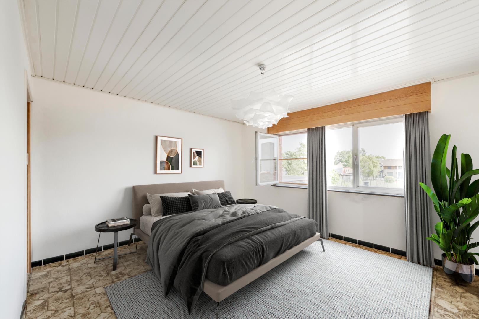 Verder op het gelijkvloers is er nog de badkamer (lavabo | ligbad | toilet) en een praktische ruime berging met directe toegang tot terras en de tuin.