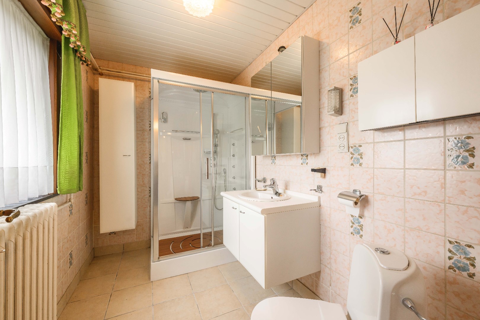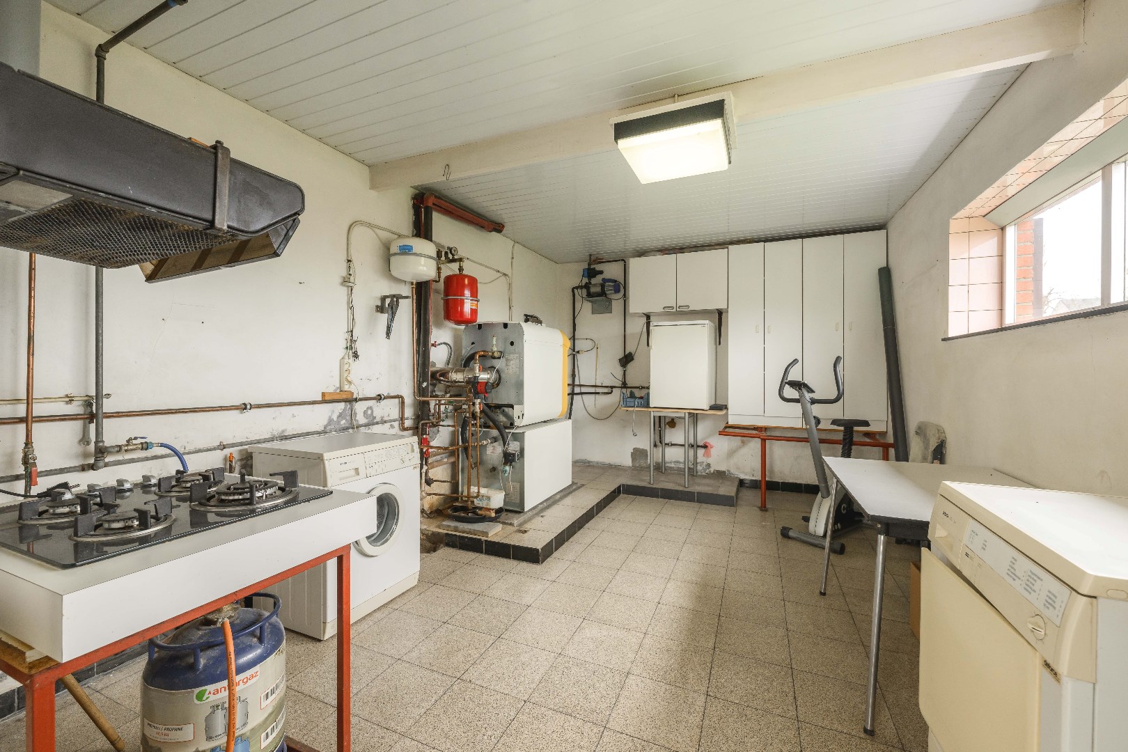 Verder biedt het gelijkvloers een ingerichte badkamer met douche, lavabo met meubel, en toilet alsook een wasplaats/technische ruimte (22,60 m²) met uitgietbak, apart toilet alsook de brander (BJ 2006 | Merk De Dietrich)