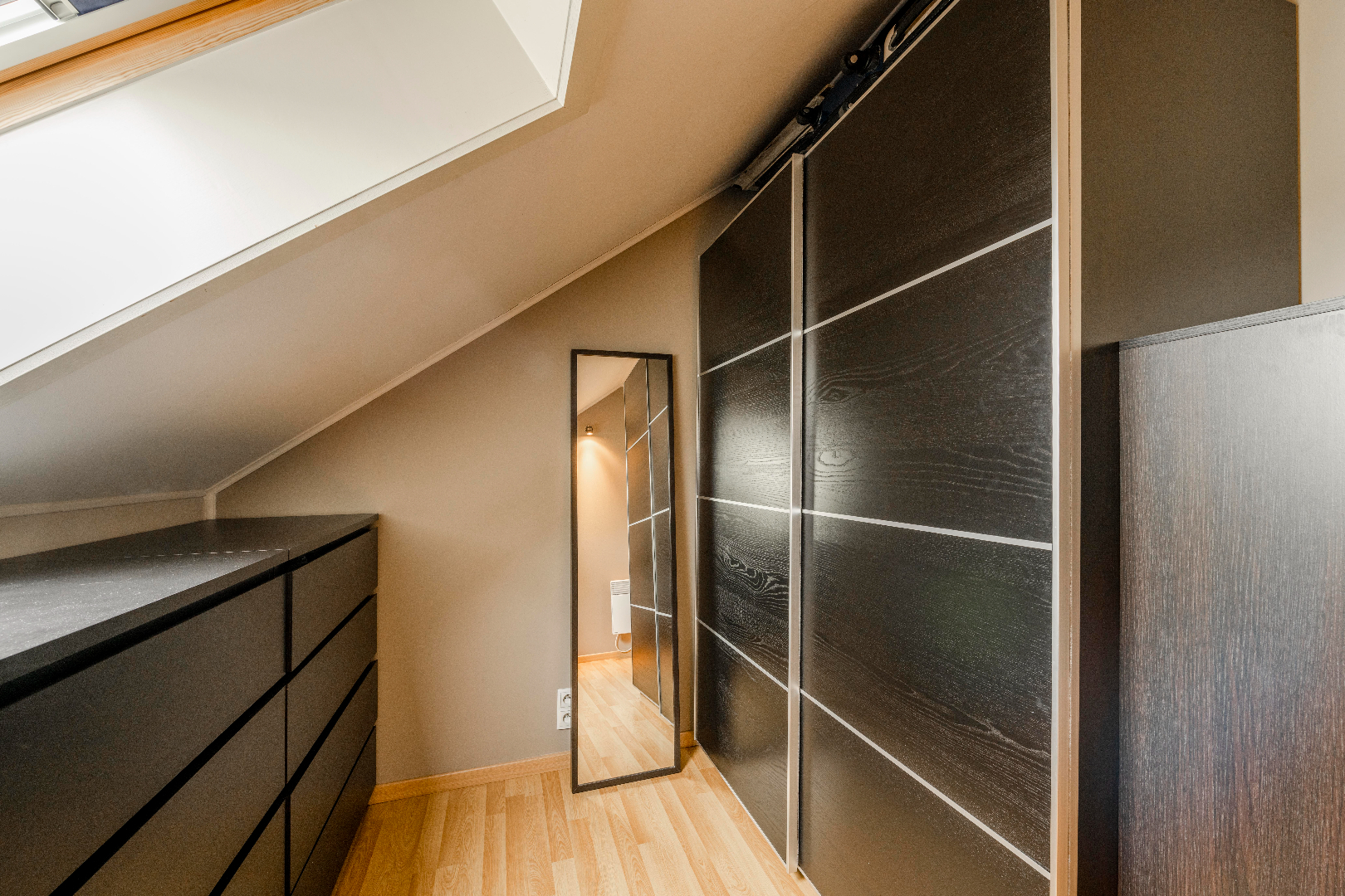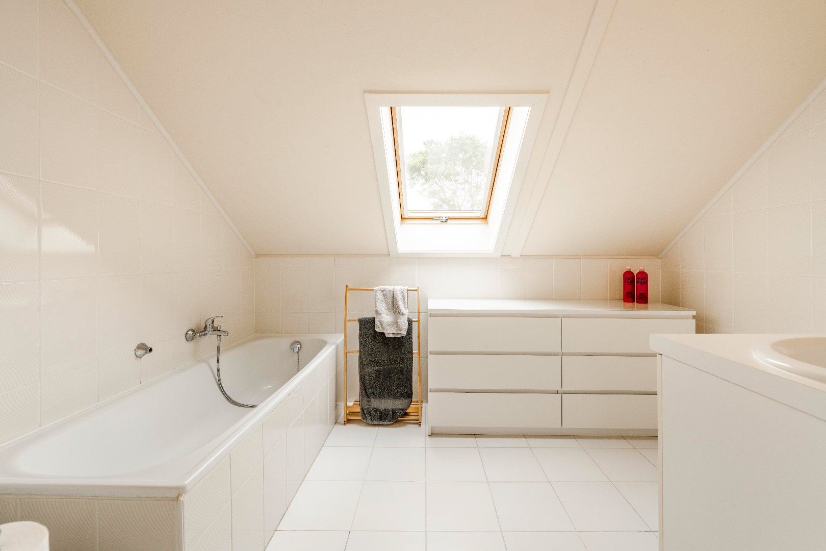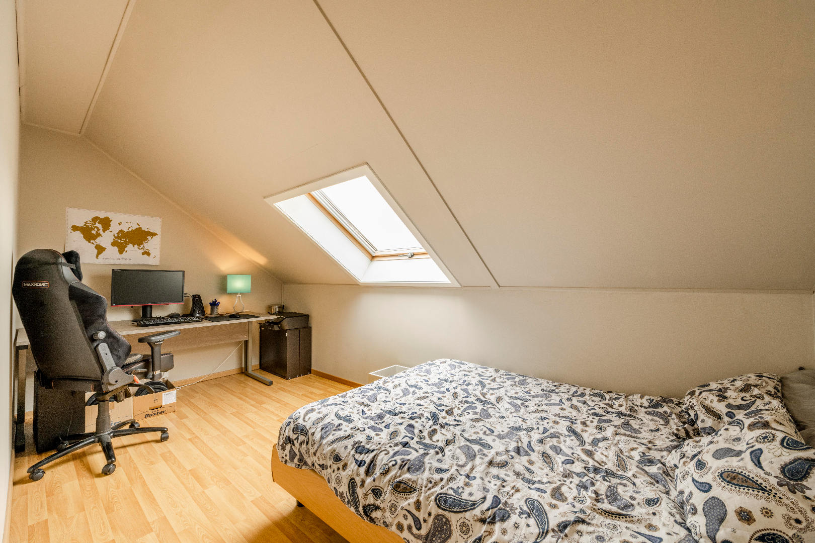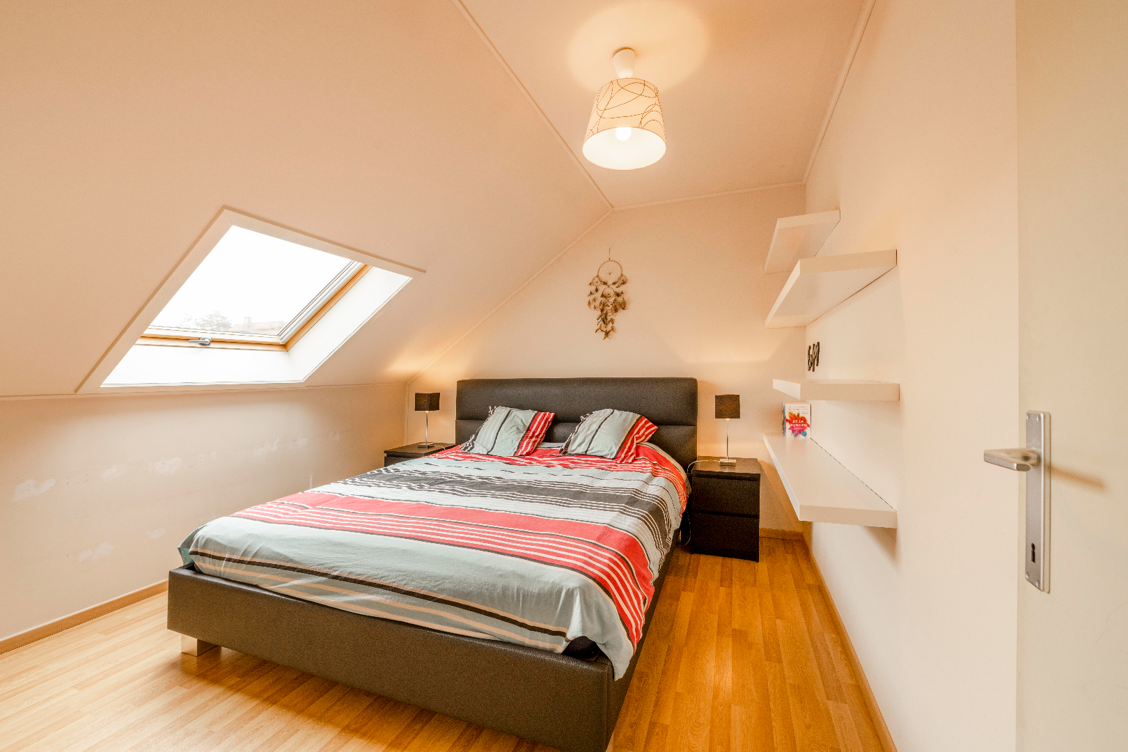 De verdieping is voorzien van 3 slaapkamers alsook een ingerichte badkamer. Deze is voorzien van een toilet | ligbad en lavabo met meubel. De veluxen zijn voorzien van zonnewering.