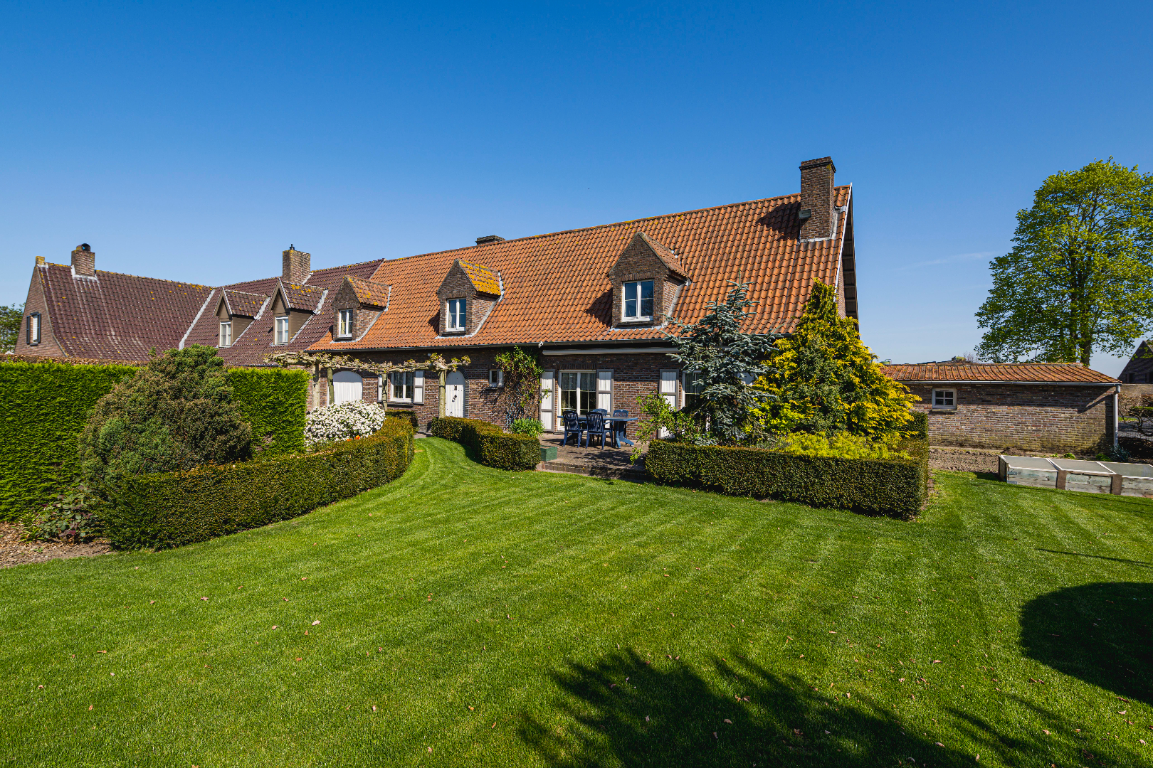 U geniet van een prachtige ruime zongerichte tuin met gezellige terras (toegankelijk via de leefruimte). U beschikt tevens over een bijgebouw/stockageruimte (60 m²), een stapelplaats (18m²) en een dubbele garage met 2 kantelpoorten (36 m²). Op de eigendom zelf is ook voldoende parkeergelegenheid.