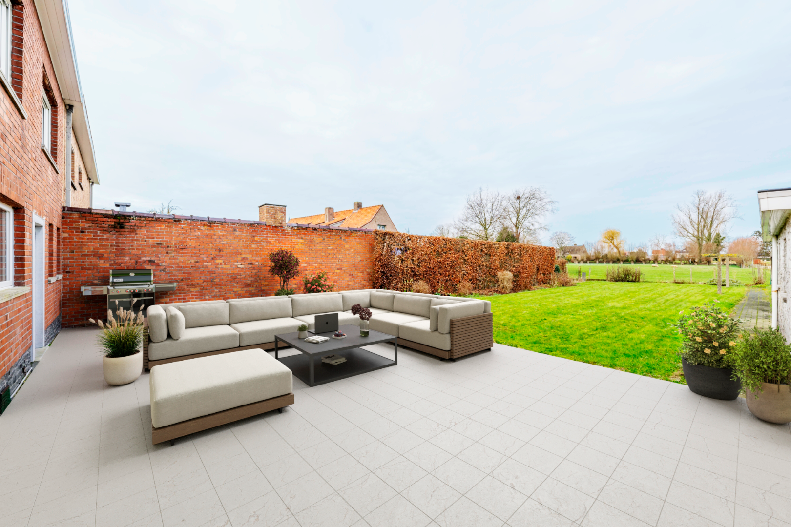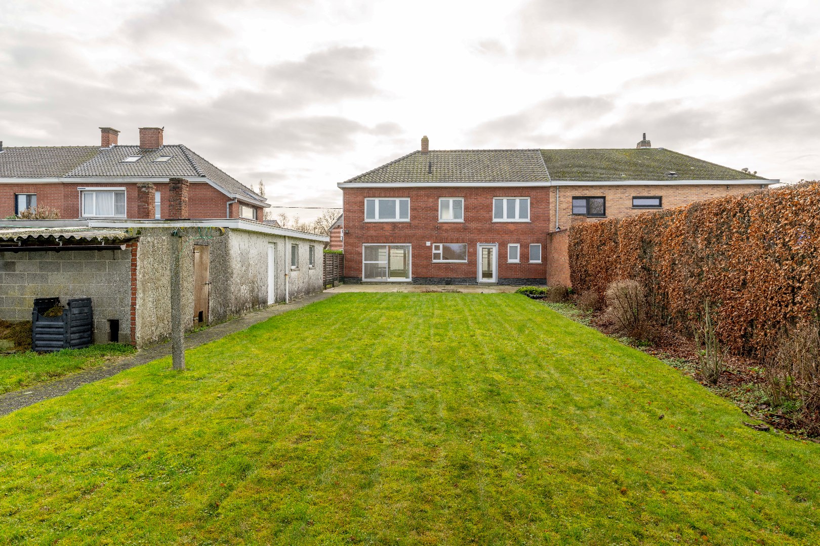 De eigendom is voorzien van een goed onderhouden, afgesloten en ingevolge kindvriendelijke tuin. U kan volop genieten op het ruime terras van de rust en verzichten. Tevens beschikt U over een aparte garage 18 m², tuinberging en voldoende private parkeergelegenheid.
