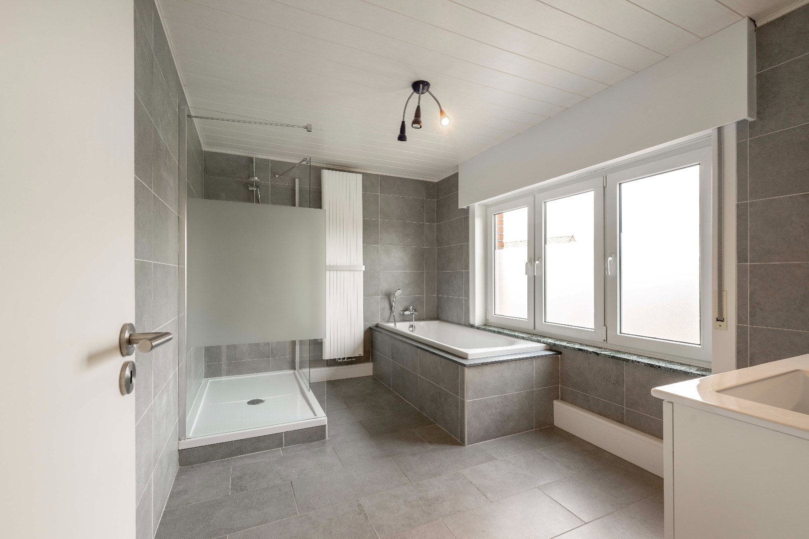 Op het eerste verdiep is er de vernieuwde badkamer met inloopdouche | ligbad en lavabomeubel. Verder is er nog een apart toilet met lavabo en 3 ruime slaapkamers (17m² | 15,50 m² | 14 m²).