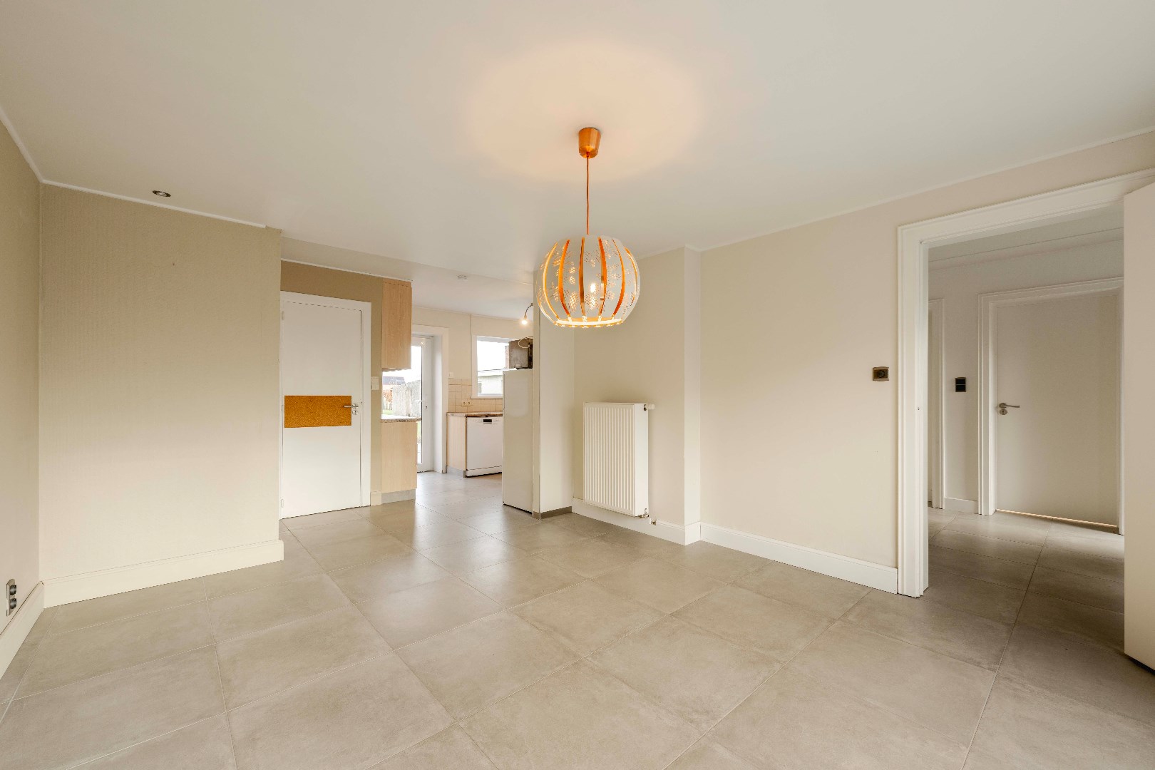 U komt binnen via de inkomhal met apart gastentoilet en vestiaireruimte. Rechts komt U terecht in de gezellige leefruimte (28m² | parketbevloering | gashaard) met ruimte voor zowel zit-en eethoek. Vanuit deze ruimte is er via het schuifraam directe toegang tot de tuin.